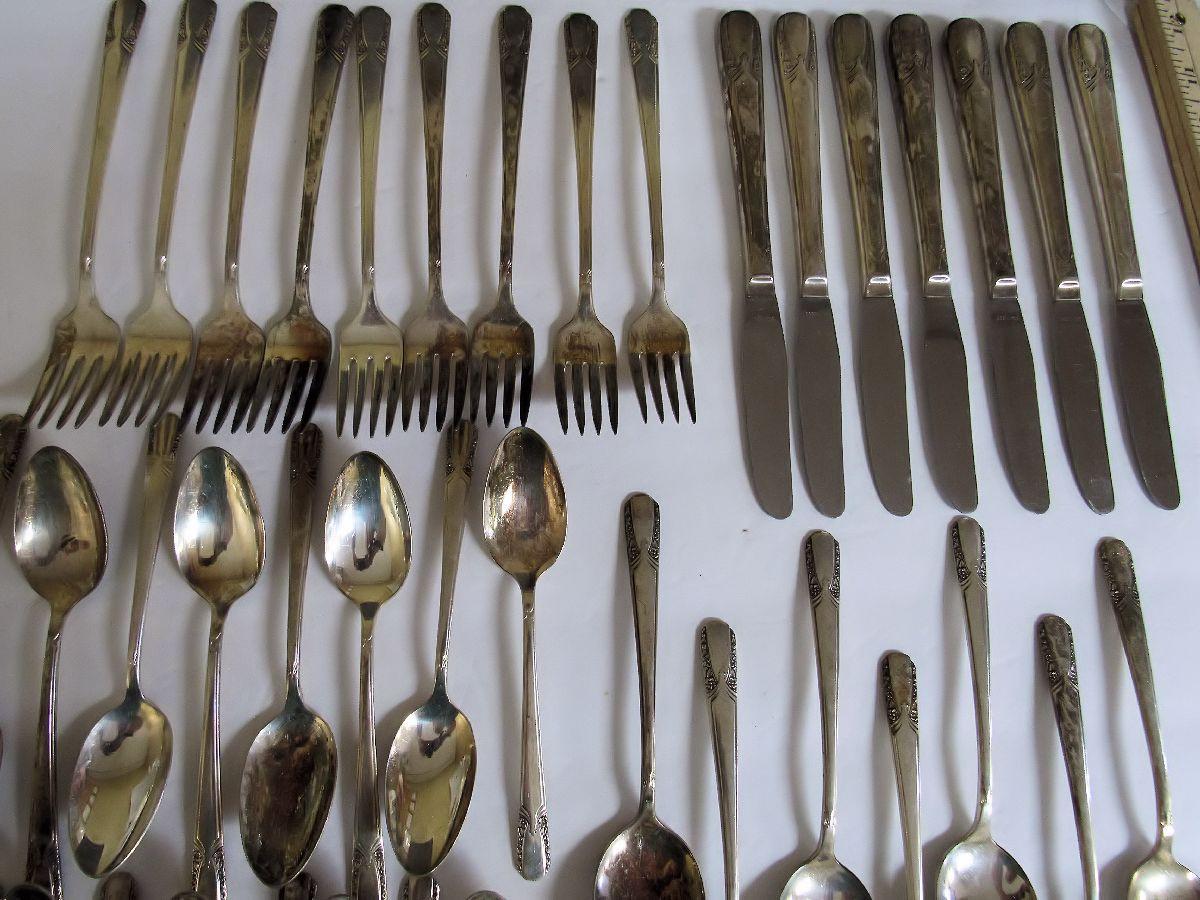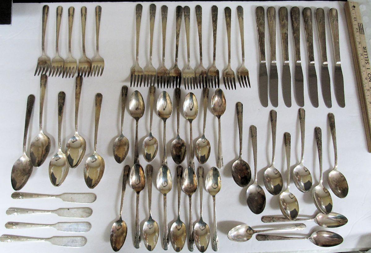 Large Lot of 56 Pieces Wm Rogers Silver Plate Flatware, Talisman Pattern