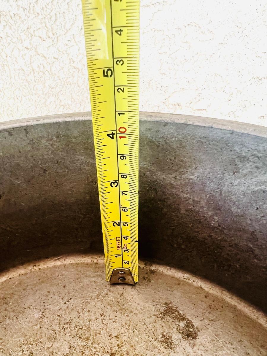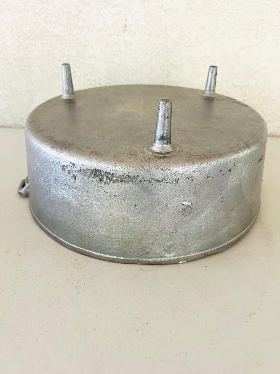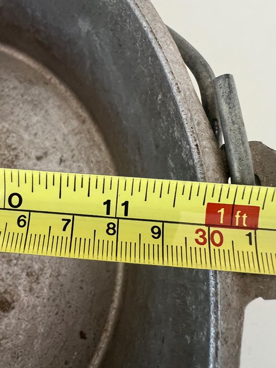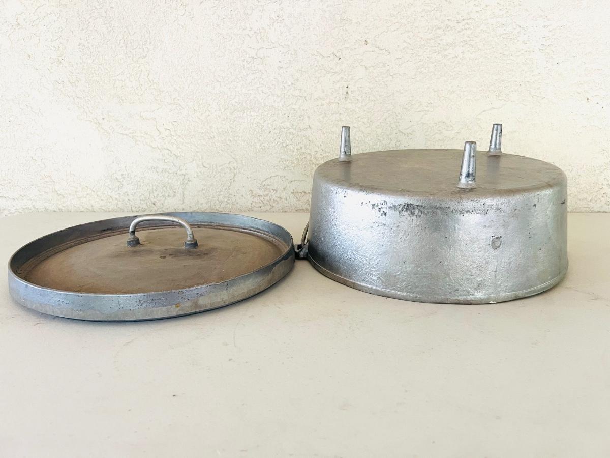 Heavy Aluminum Dutch Footed Oven With handle. See pictures for measurements on the Dutch oven.