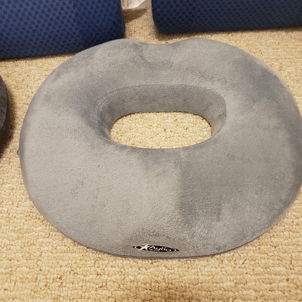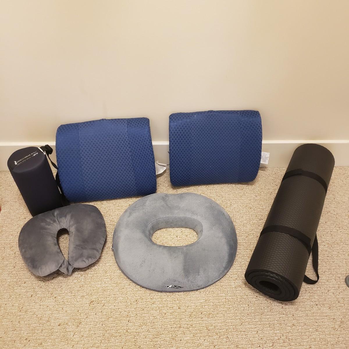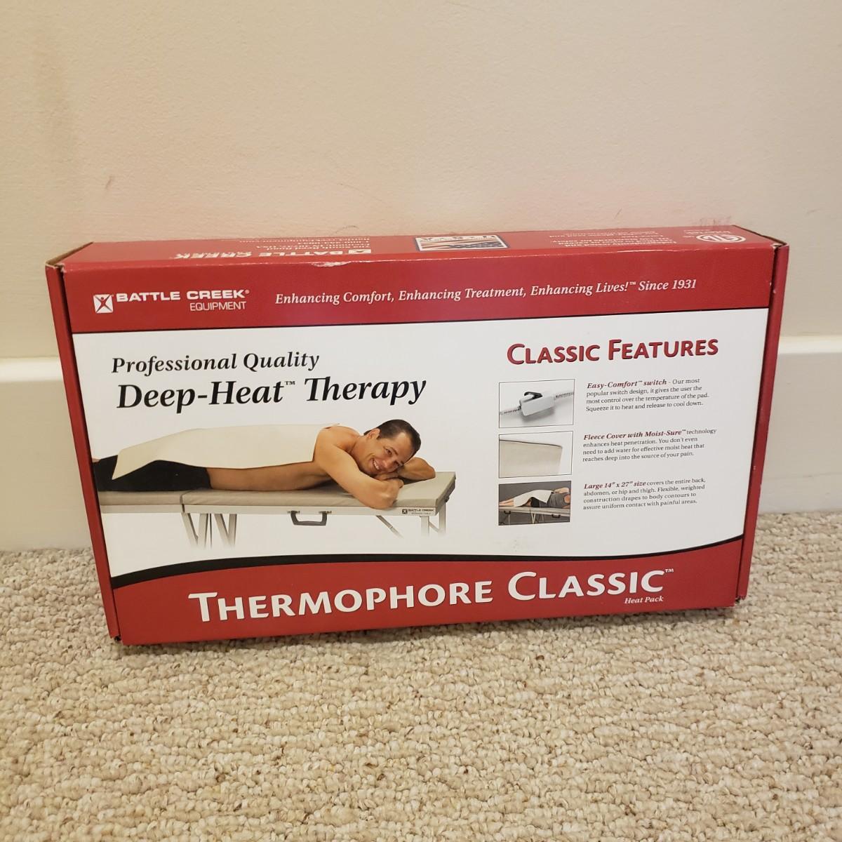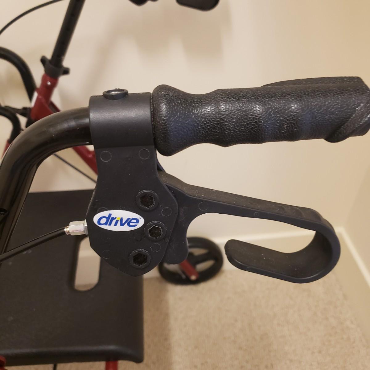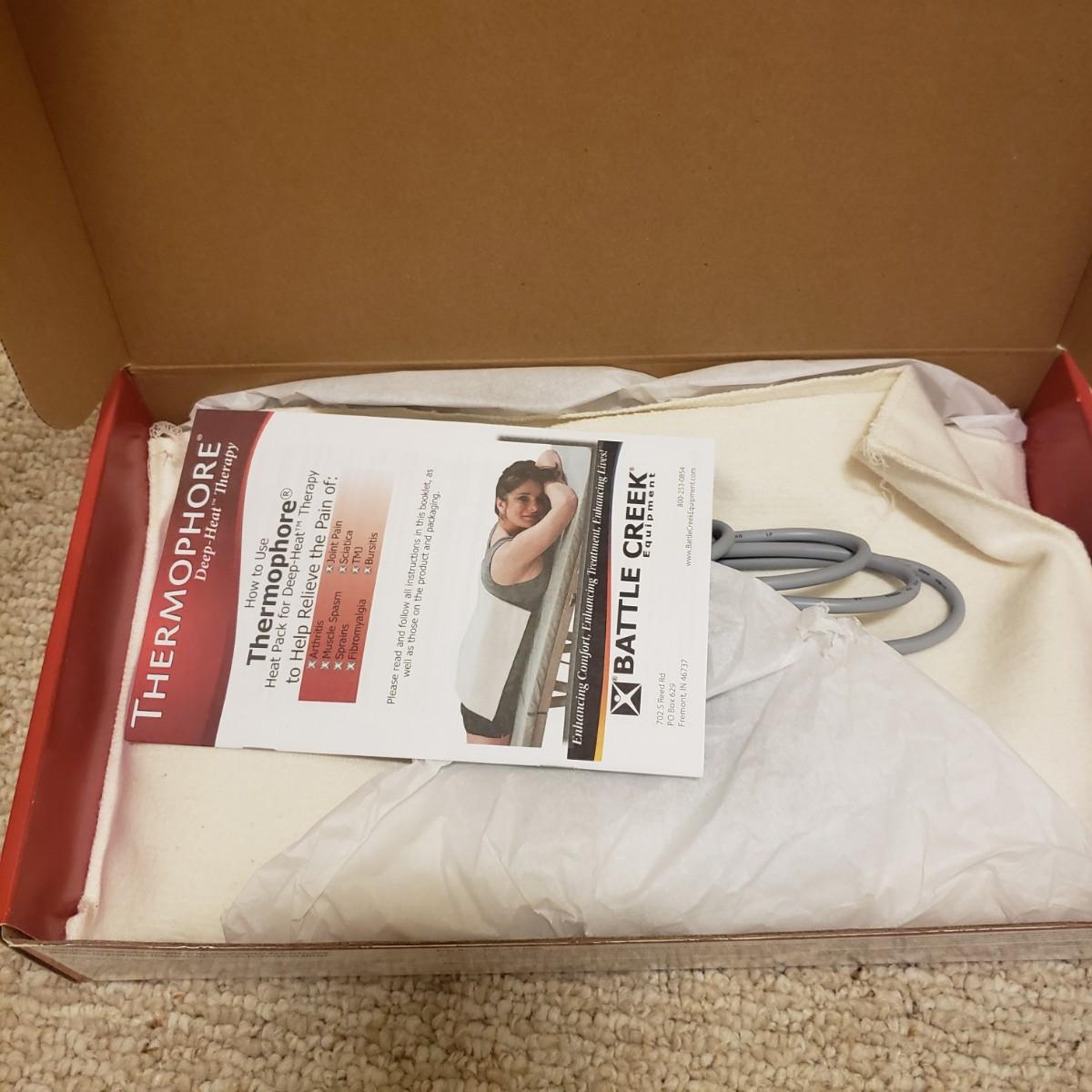 This large ambulatory lot contains two Drive rolling walkers. On has a bag under the seat, the other does not. The three identical canes are adjustable. One handle is more worn than the other two. There are four NIB items: Cow&Cow, CVS extra ling heating pad, Carex bed pan and a Thermophore Classic. See pictures for details.