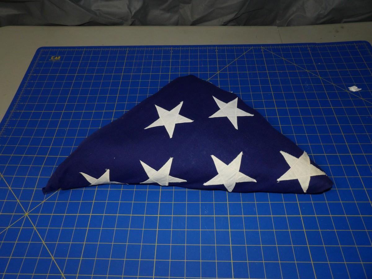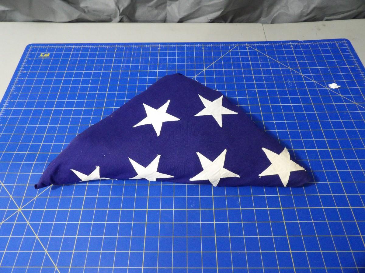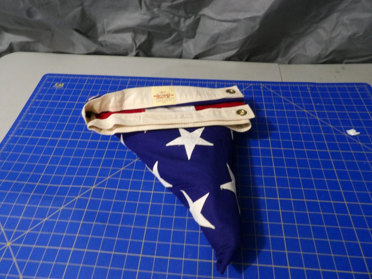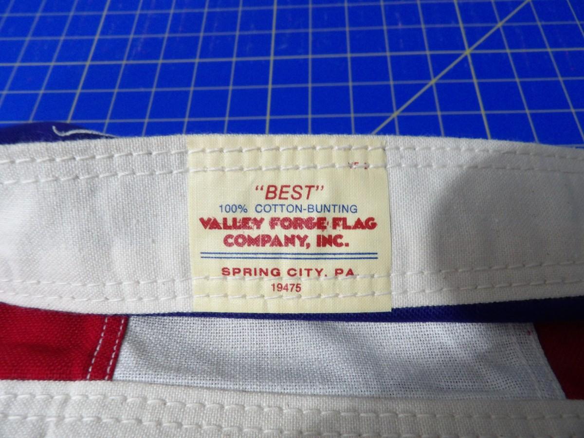 It was too big to photograph unfurled. It is in excellent condition. Made by the Valley Forge Flag Company.