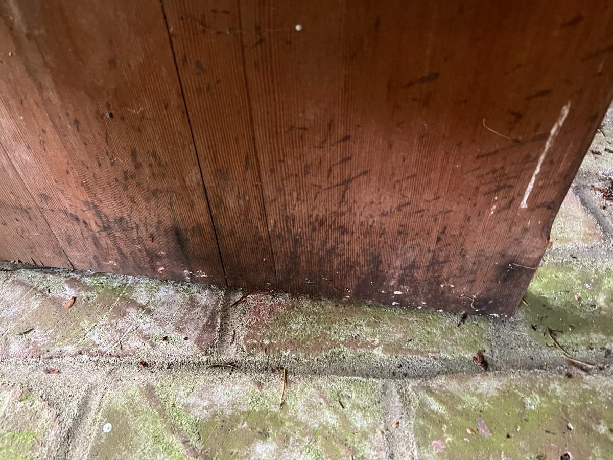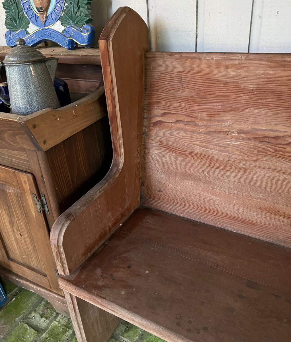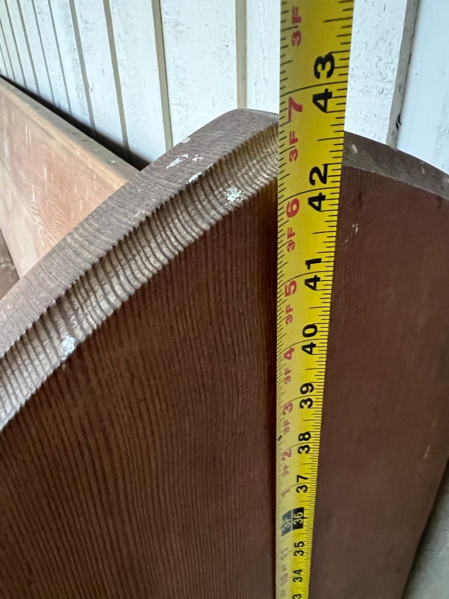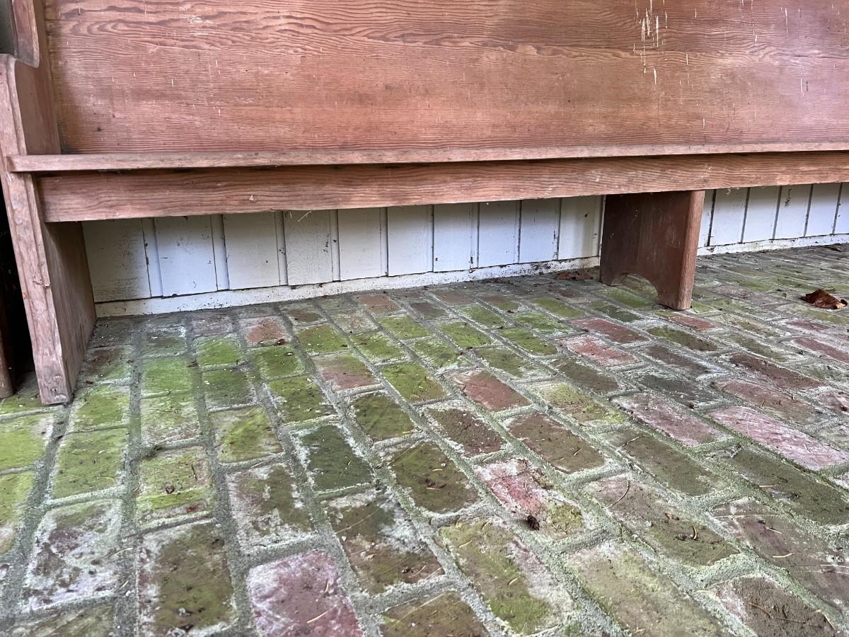 Large Antique 10 Foot Wooden Church Pew. From a Redmond estate, where it has been stored on a covered outdoor patio. In good condition, as shown.