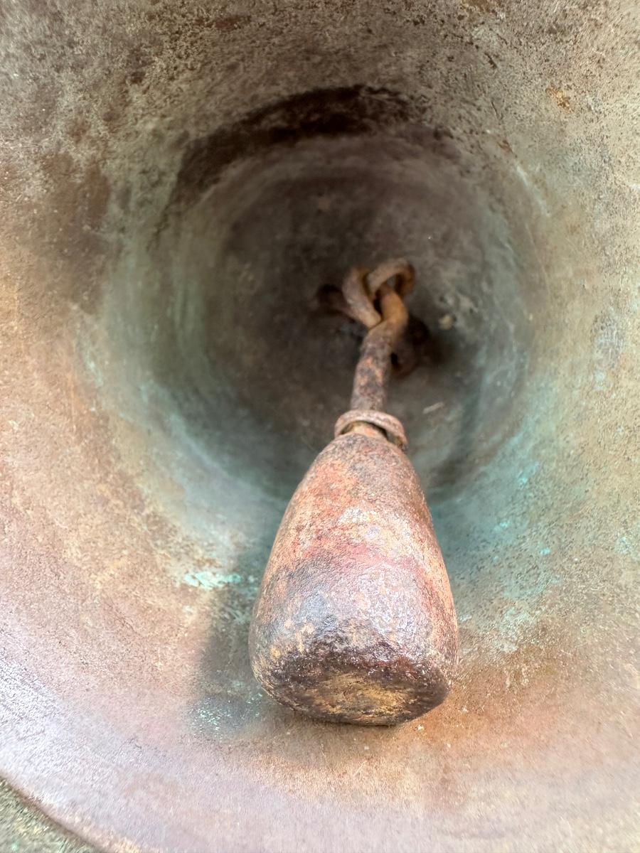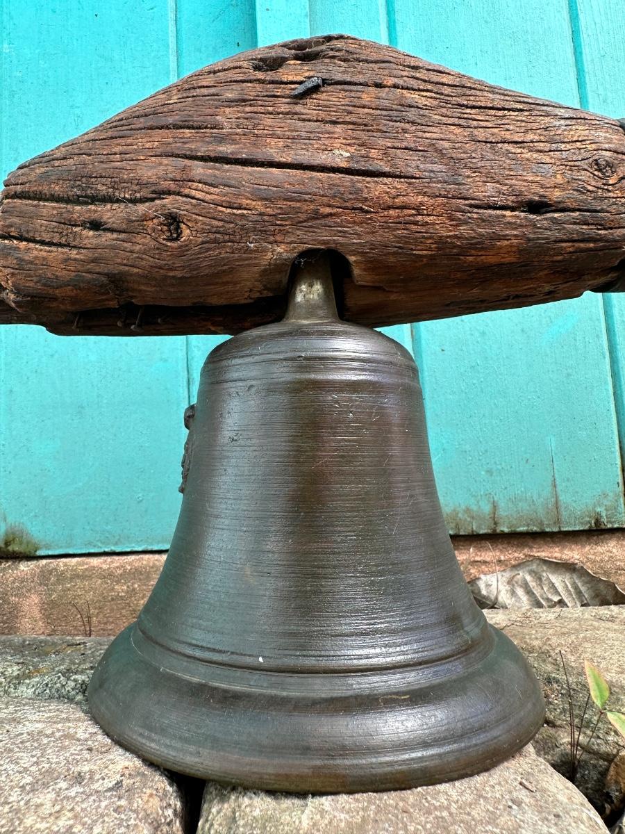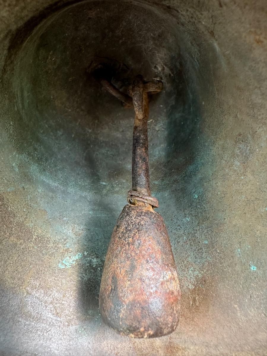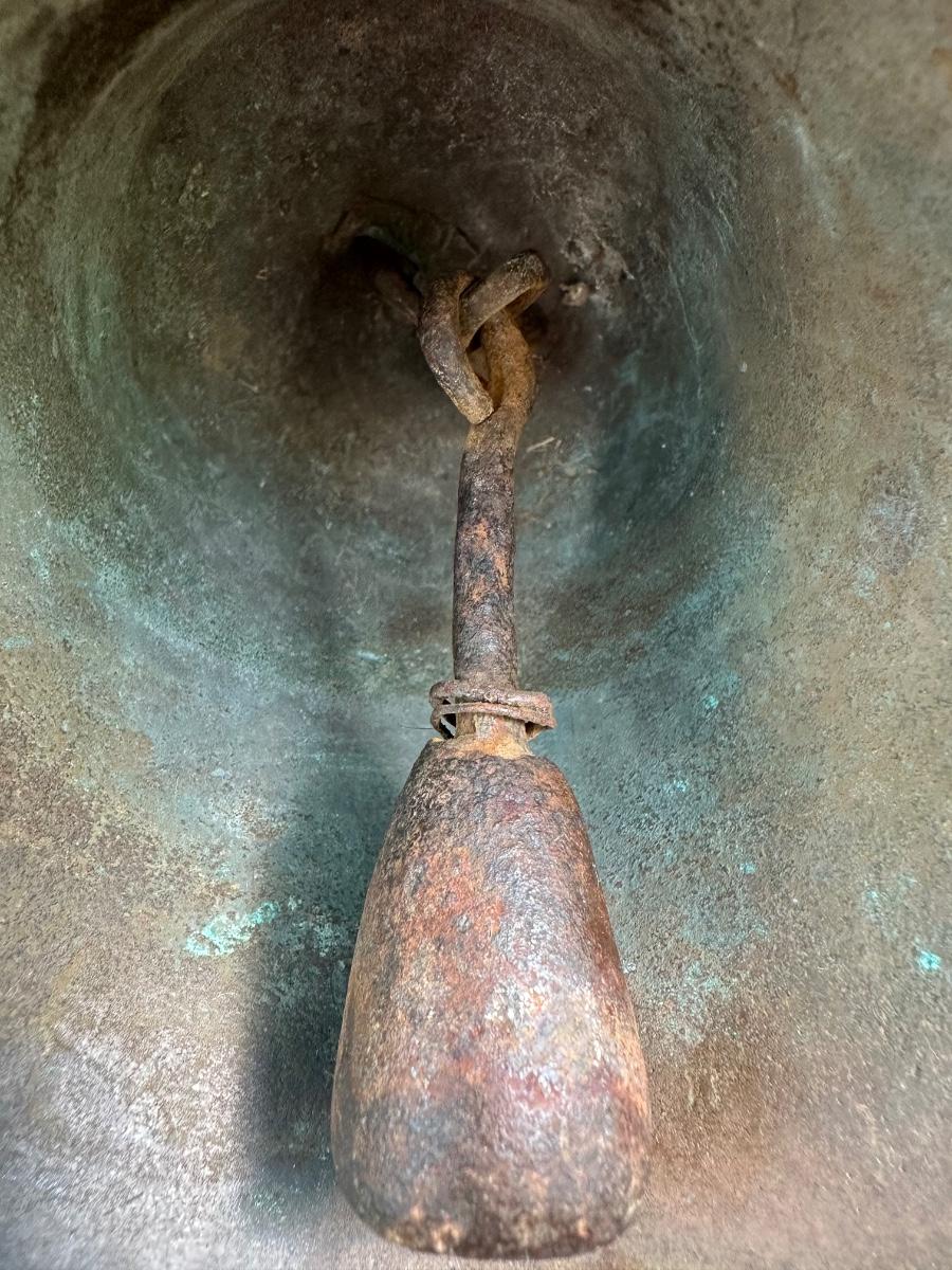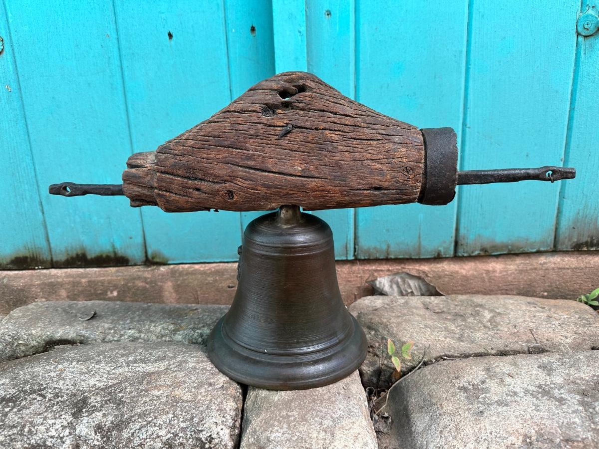 Missing left iron piece on wood and missing piece of wood on bottom left.
