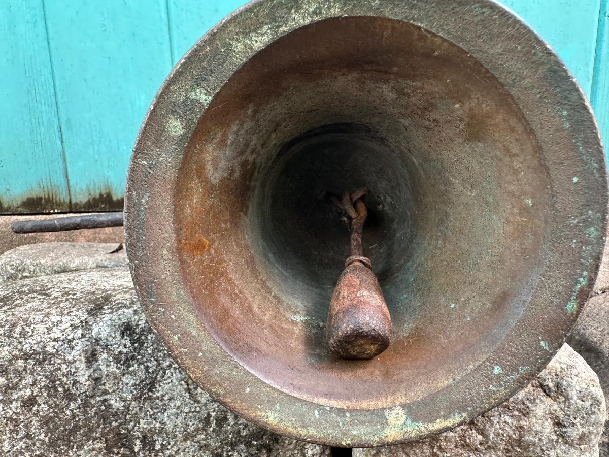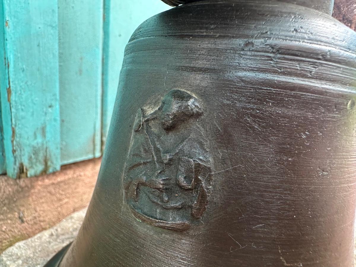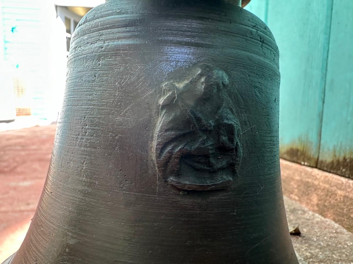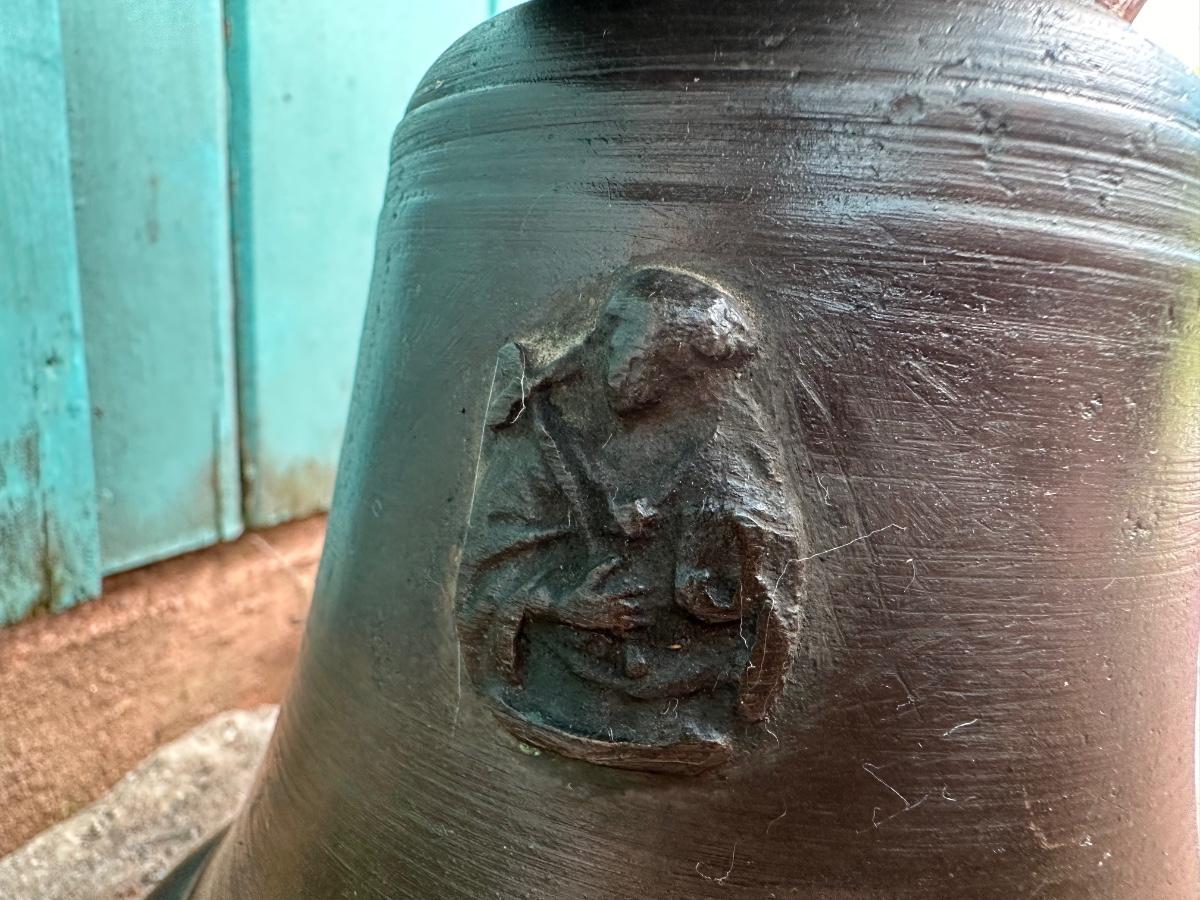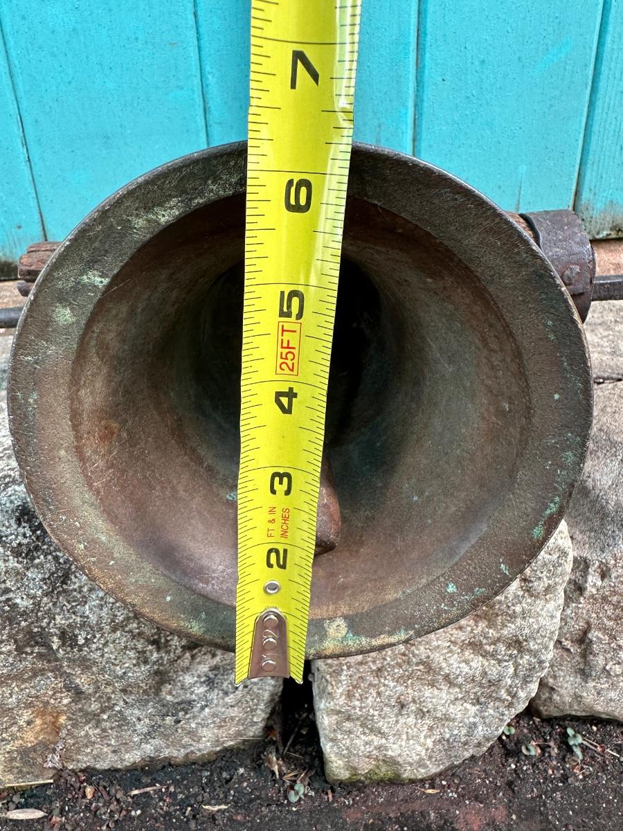 Missing left iron piece on wood and missing piece of wood on bottom left.