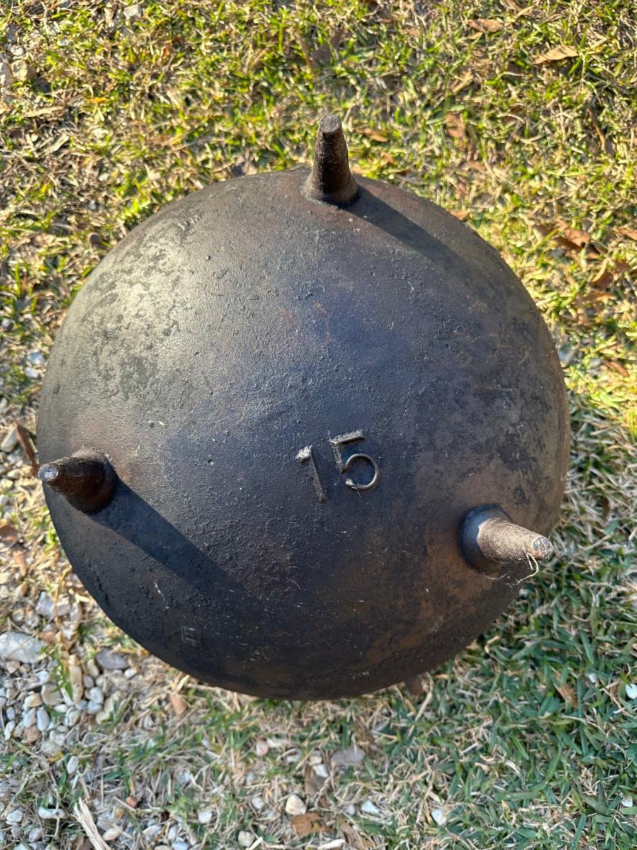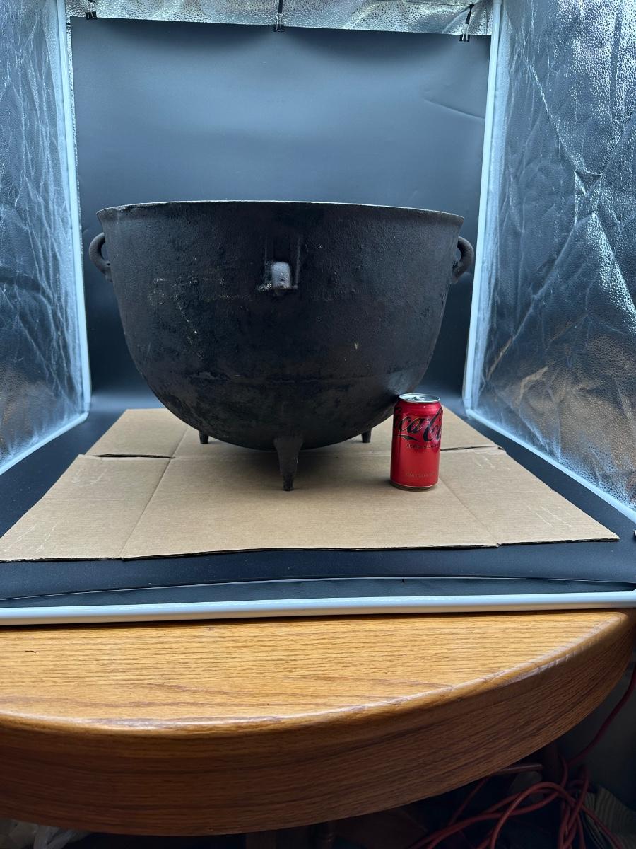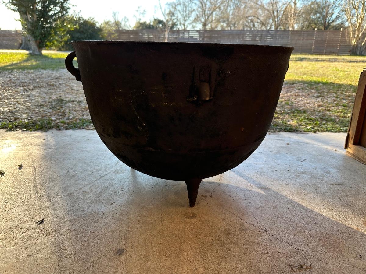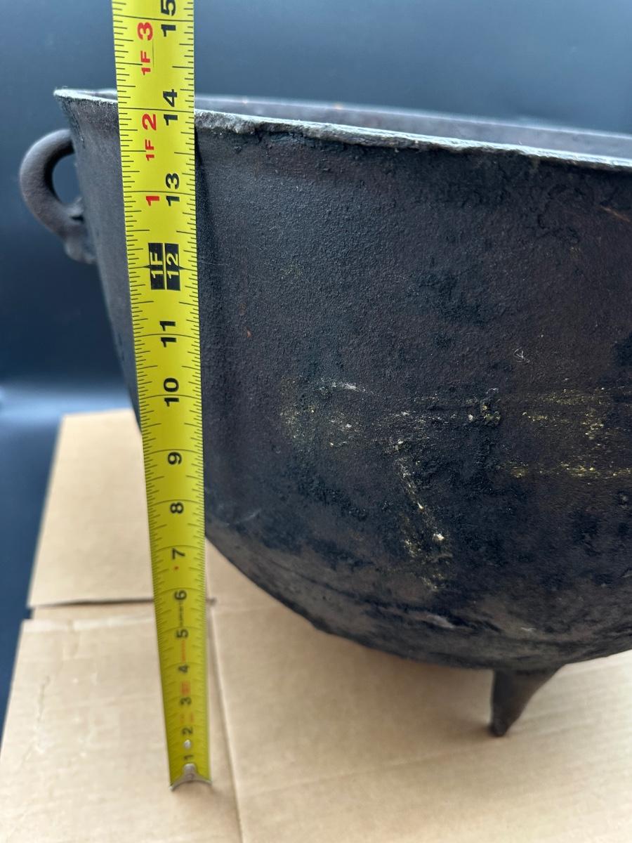Large Antique Cast Iron 3-Leg Kettle / Camp Cauldron – #15 Marked