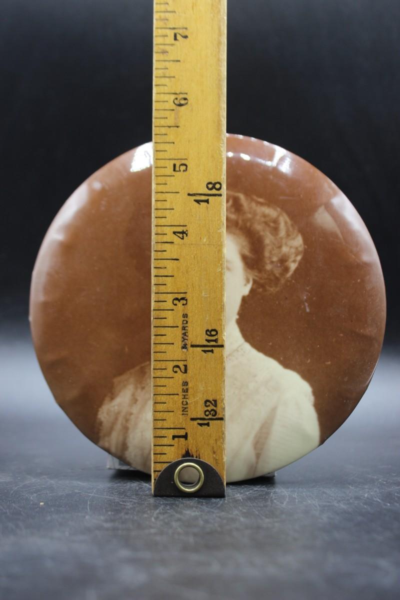 Large Antique Columbia Portrait Company Photograph of Prestigious Woman Button, there is no significant damage to the button and is in good vintage condition. Check pictures for more details and for sizing,