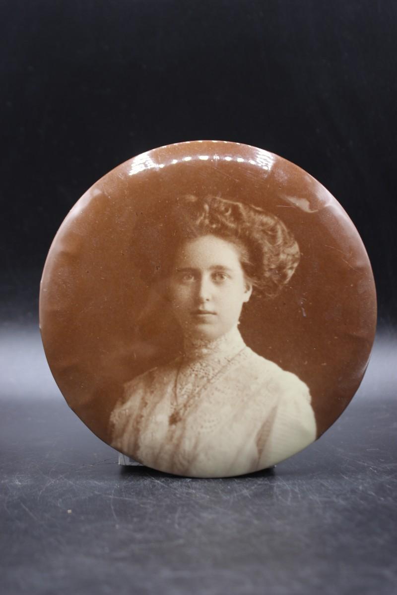 Large Antique Columbia Portrait Company Photograph of Prestigious Woman Button