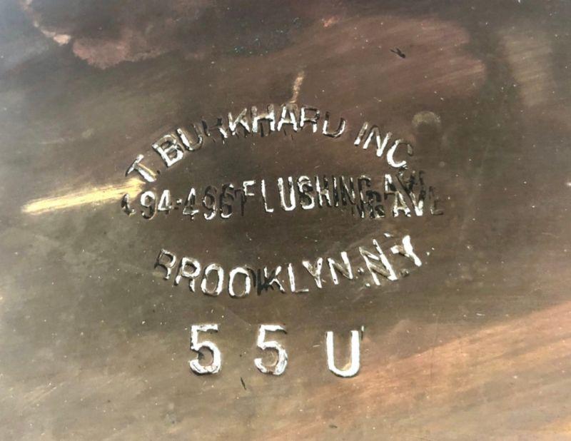 T. Burkhard Inc. Flushing Ave Brooklyn NY. This is 16" tall x 20" in diameter. It's in very good condition, but has some dents, please see photos for description. This is for commercial confectionary use, brass mounting collar is in excellent condition.