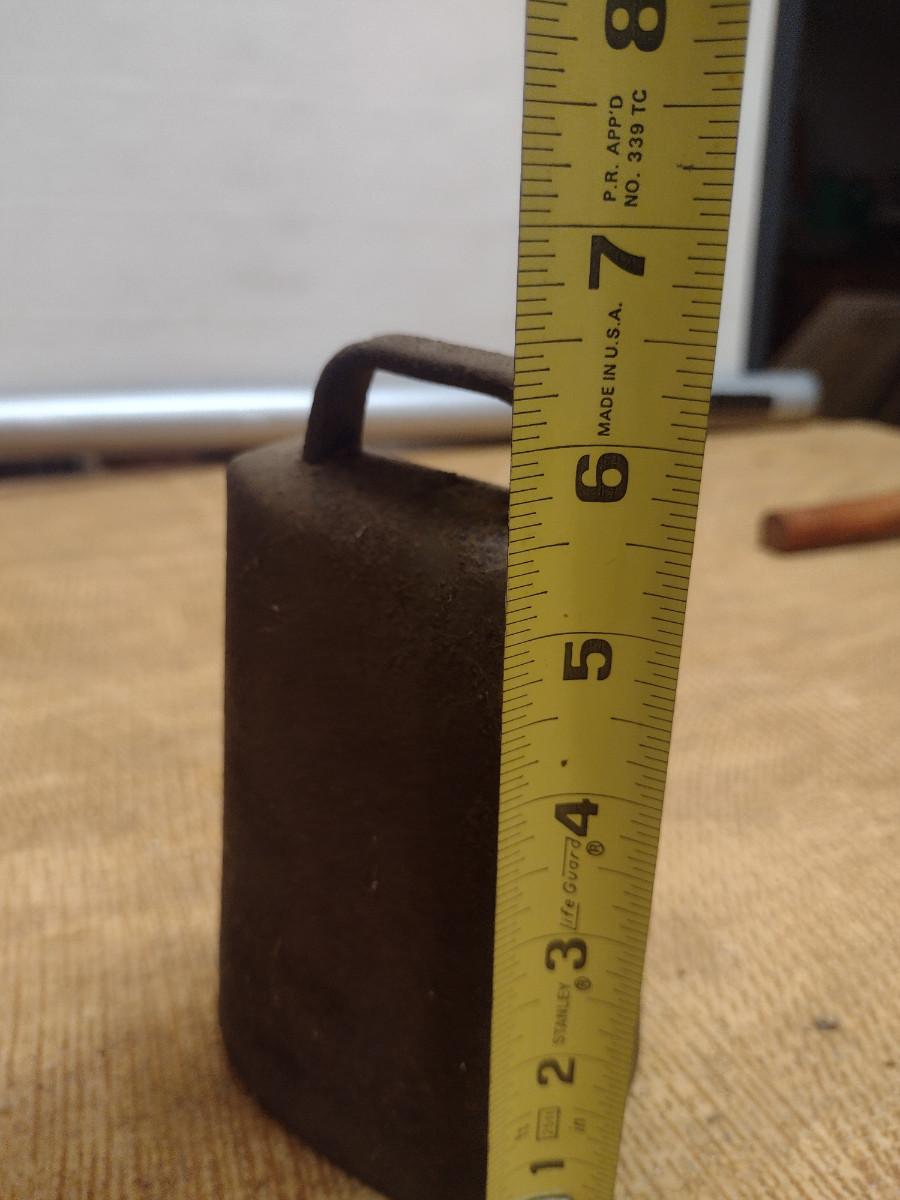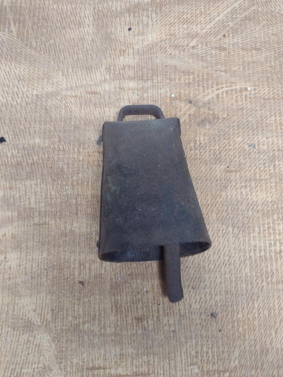 Large, Antique Cow Bell with Elongated Clapper- Approx 6 1/2" Tall. Stored in non-climatized basement so expect item may need to be cleaned from dust, insects, etc. Shipped in as is condition
