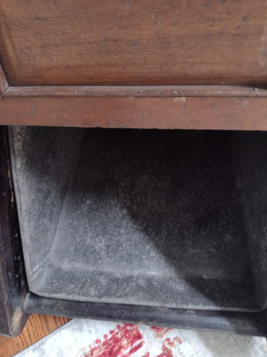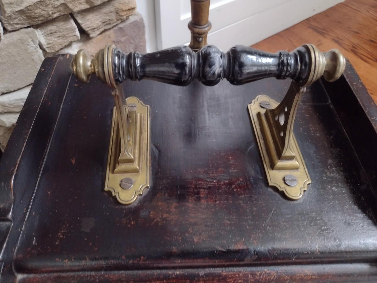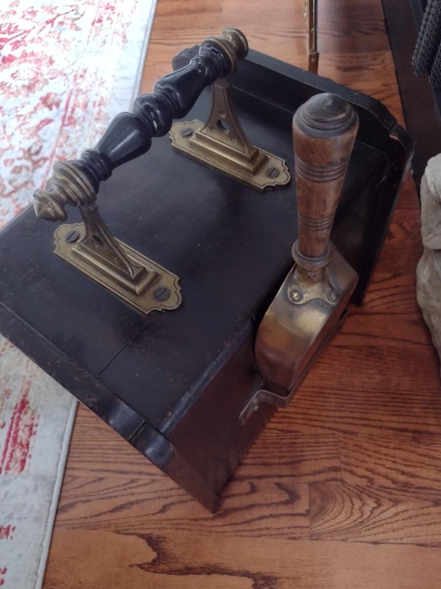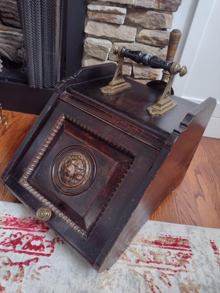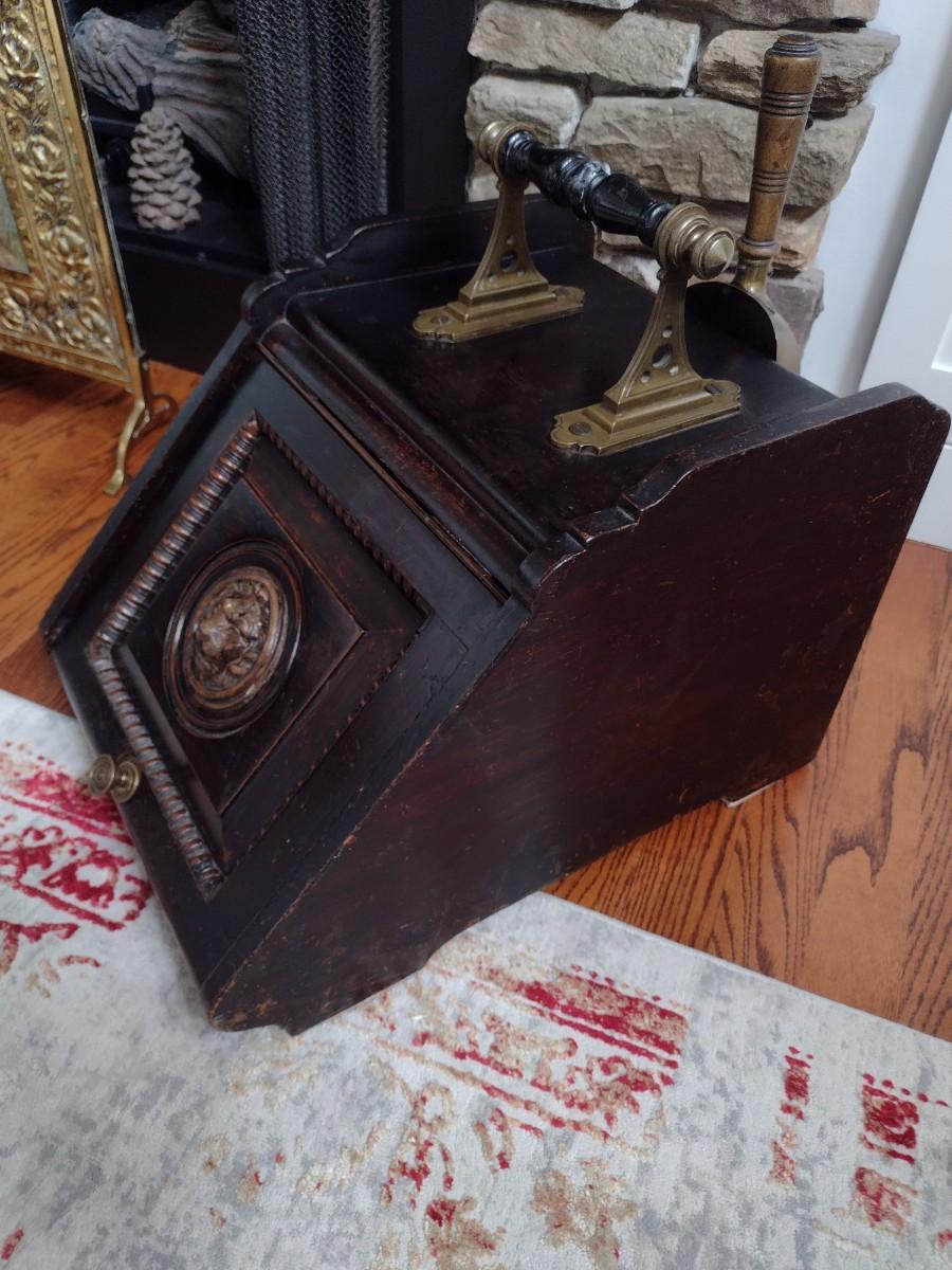 Large Antique Dark Walnut Ash Scuttle with Brass Fixtures