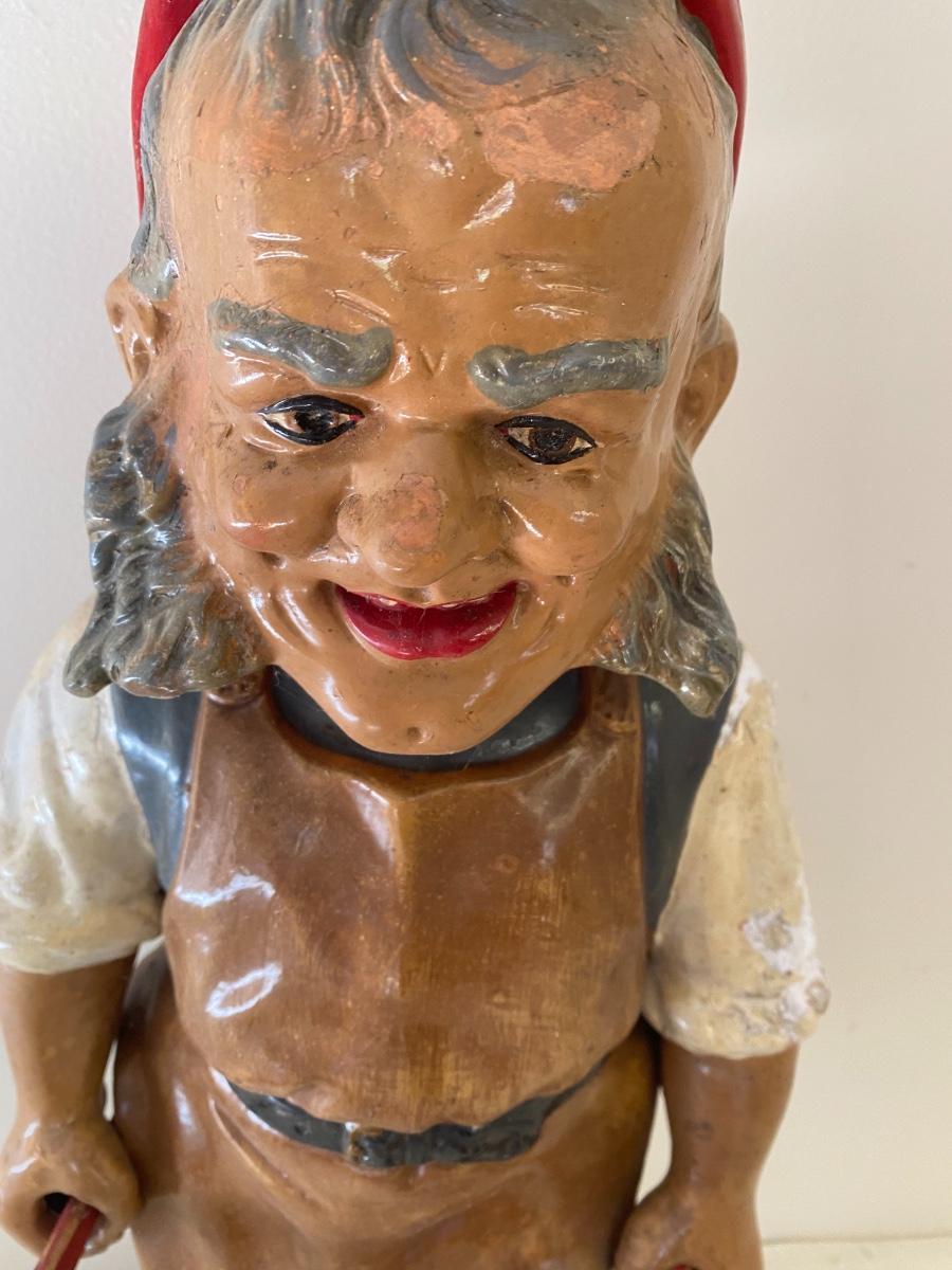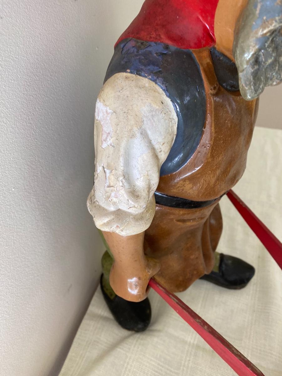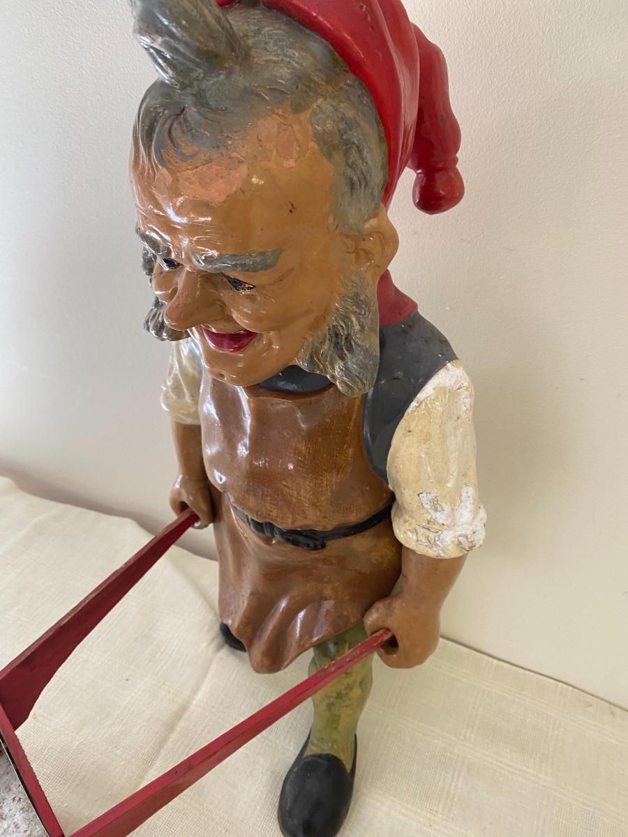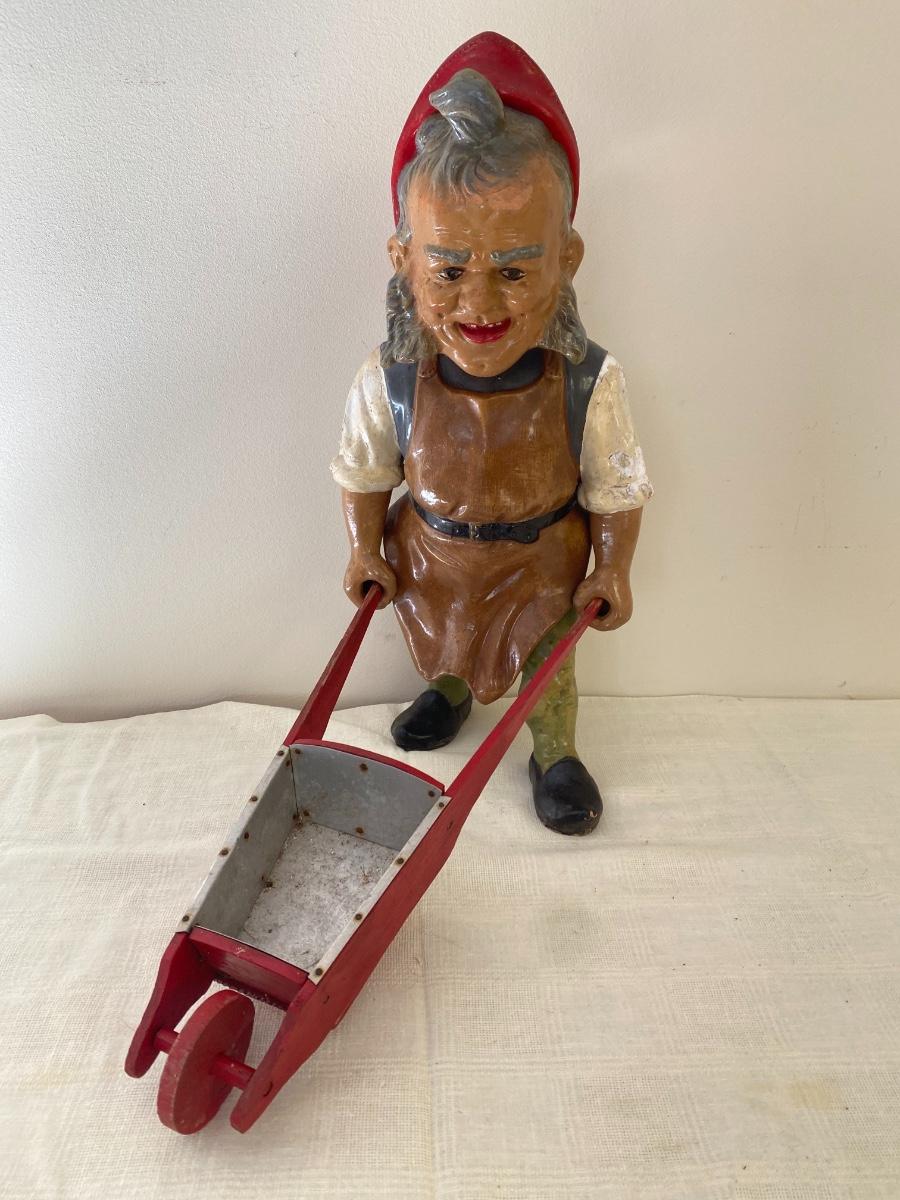 Large Antique German Gnome with wheelbarrow.