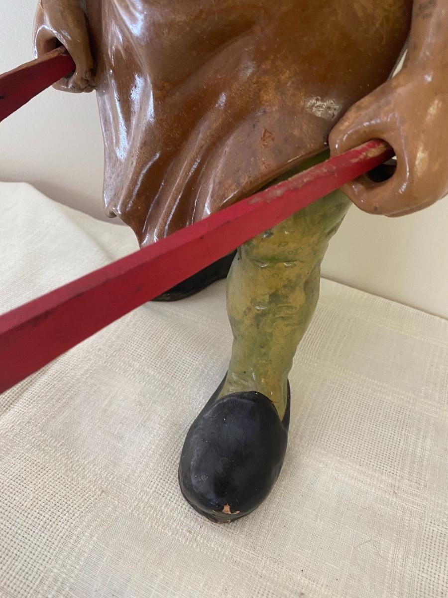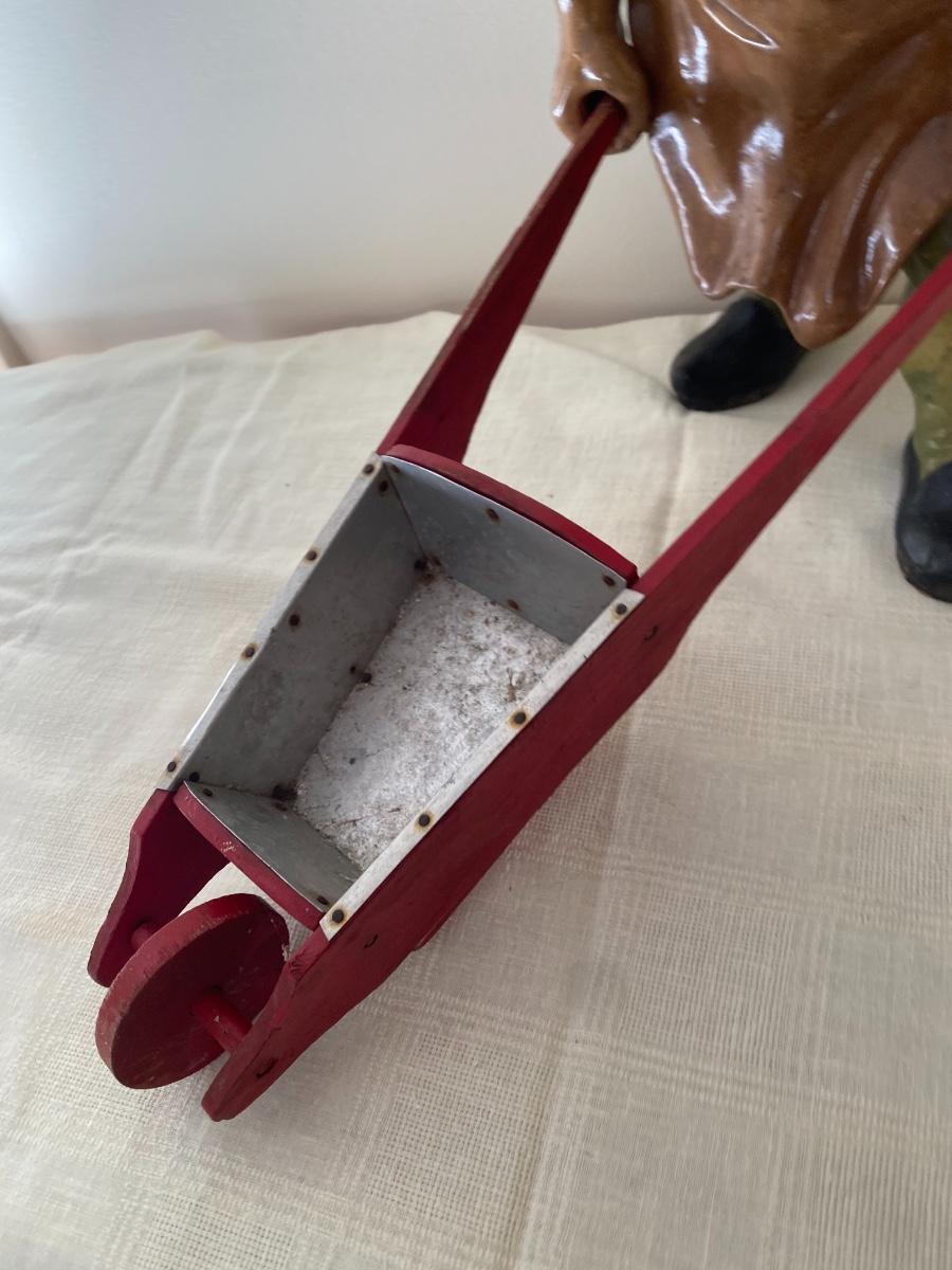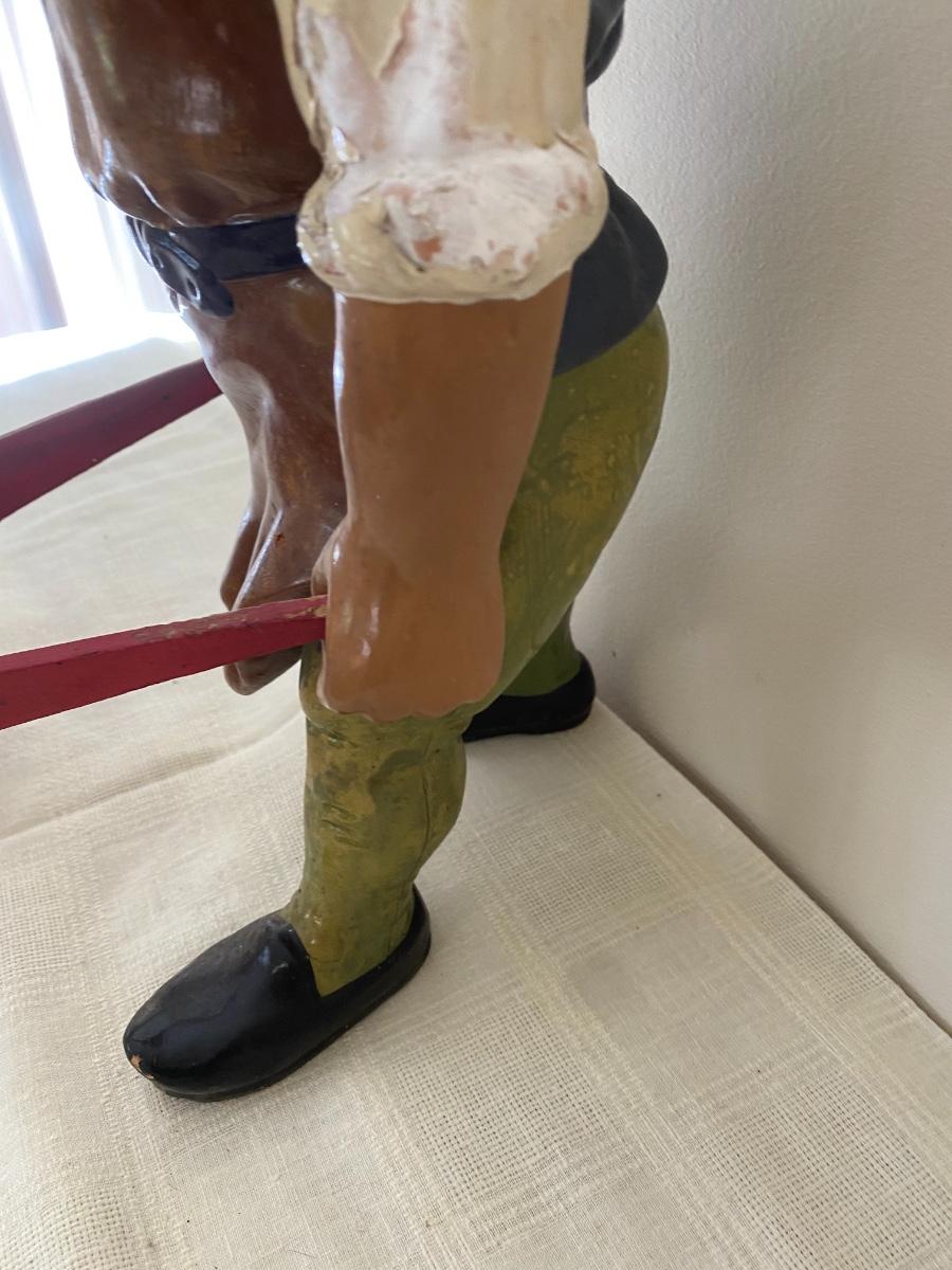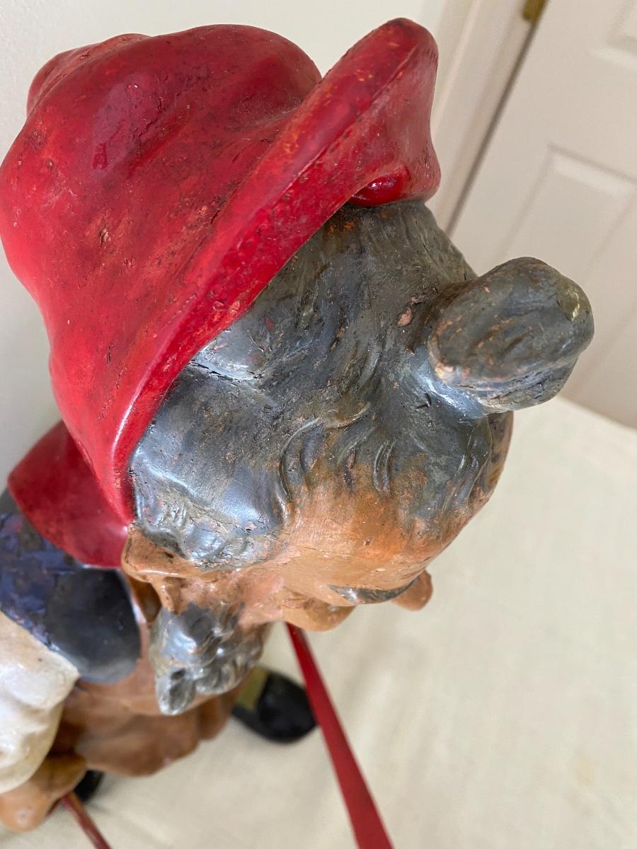 Large Antique German Gnome with wheelbarrow.