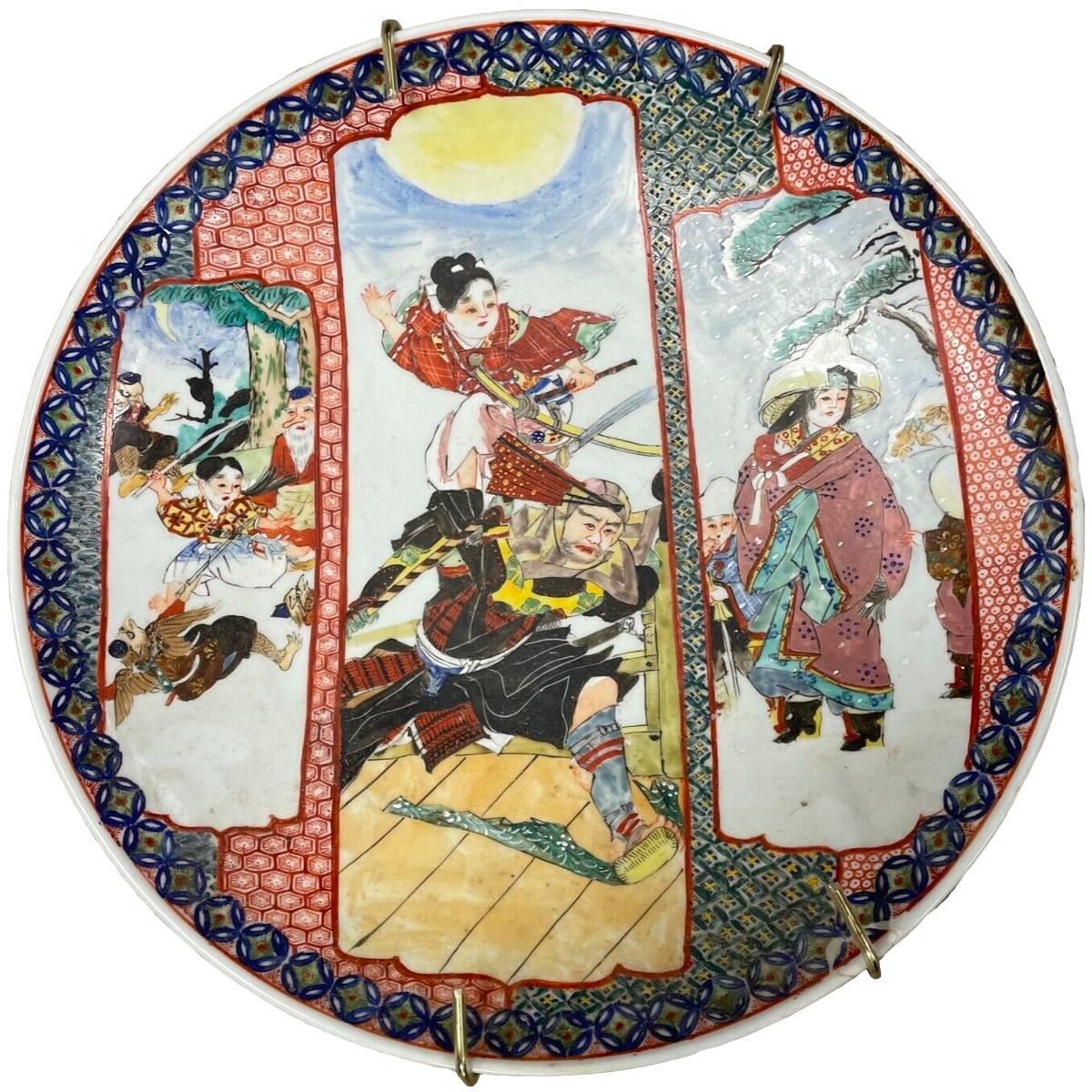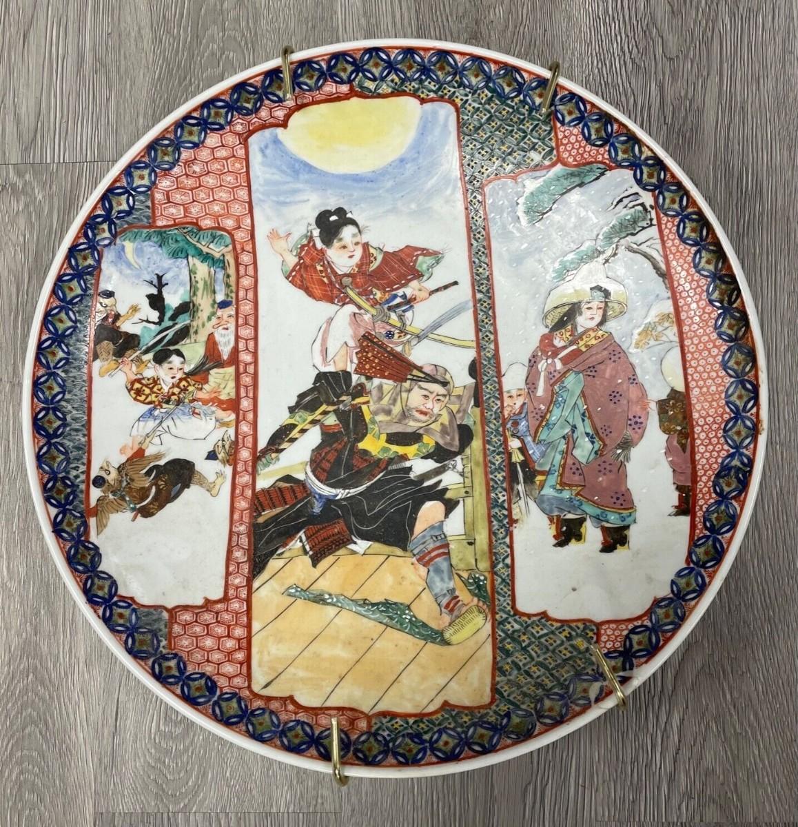 Description: Large antique Japanese hand Painted Porcelain Charger; Measurement approximate: 16 Inches in Diameter; Material: Porcelain; Condition: Good