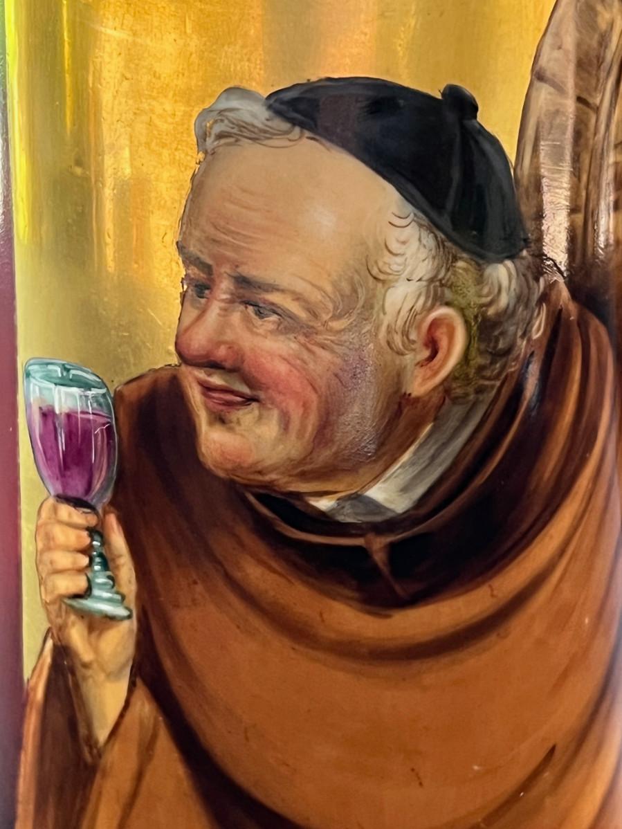 Large Antique Limoges Stein Smiling Monk Drinking Wine