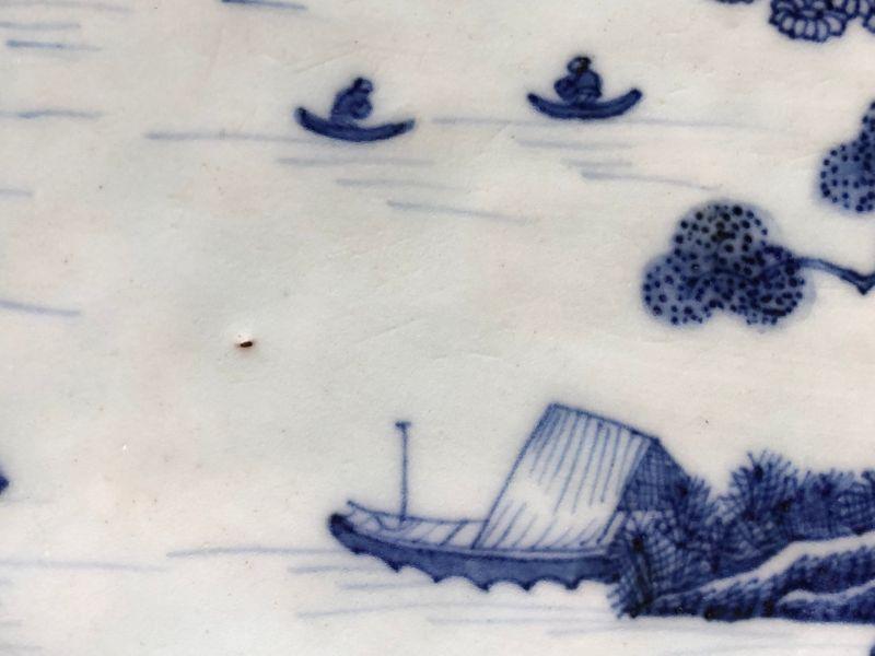 Large Antique Nanking Blue and White Porcelain Platter River Scene