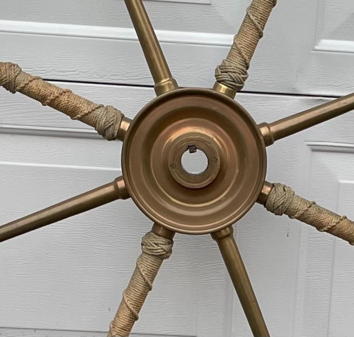 Description: Large antique Nautical Steering Wheel / HeavyMeasurement approximate: 48 W / 37 W without handle. InchesMaterial: Brass