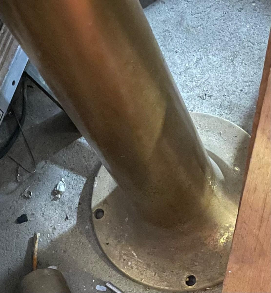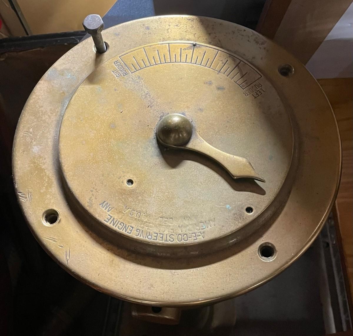 Description: Large antique Nautical Steering Wheel Pedestal/ HeavyMeasurement approximate: 38 x 11 InchesMaterial: Brass