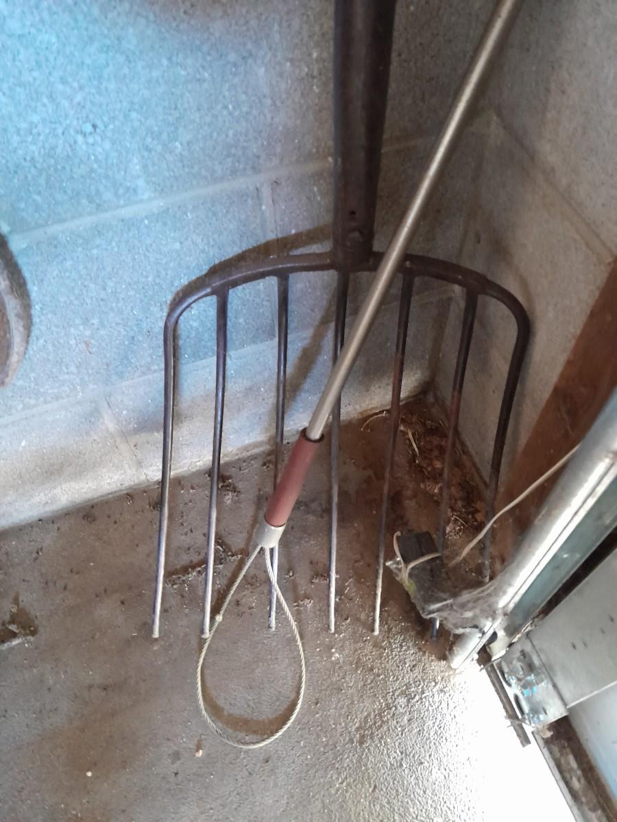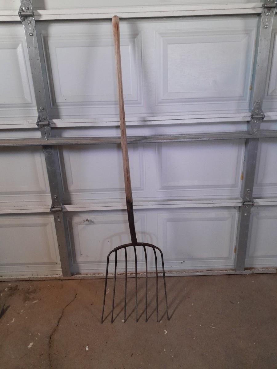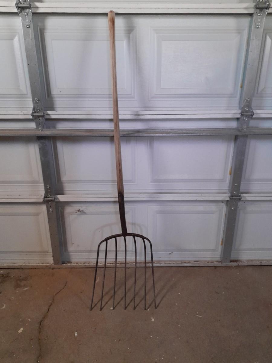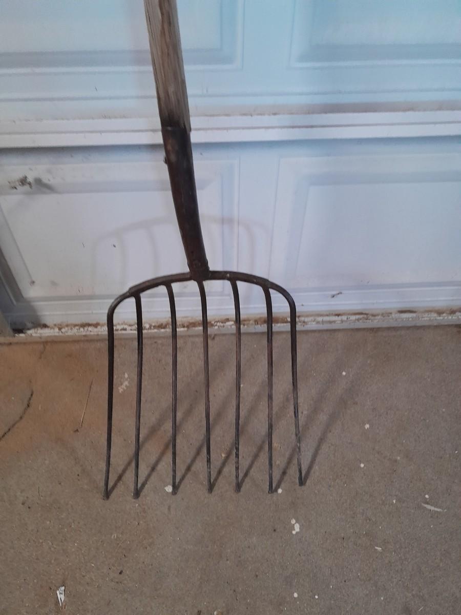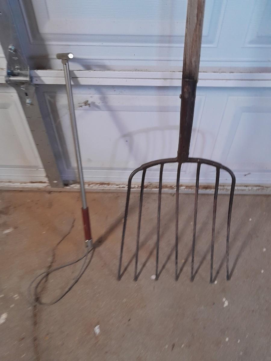 LARGE ANTIQUE PITCHFORK AND DOG CATCHING / SNAKE GRABBING STICK