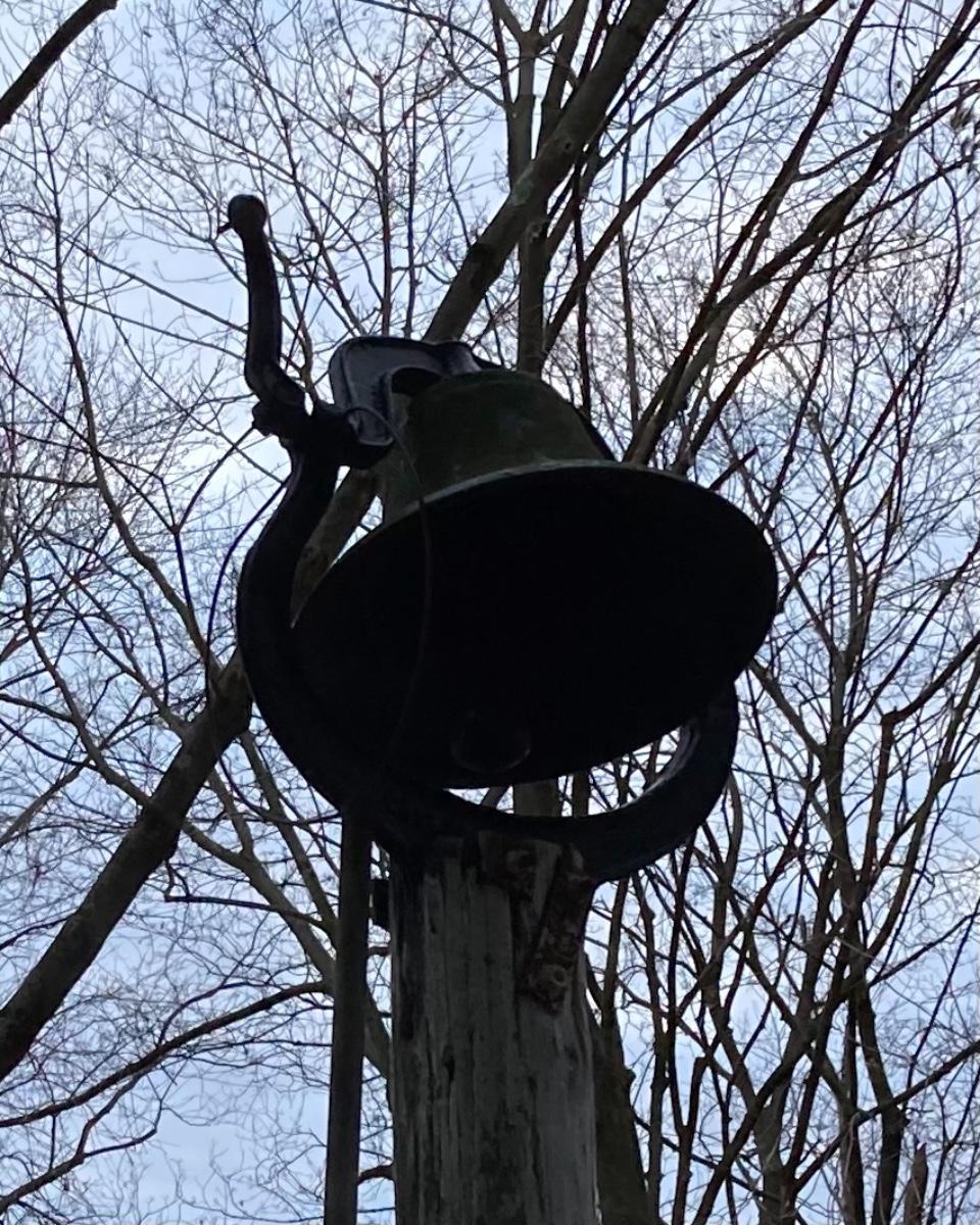 Large Antique School Bell and Post