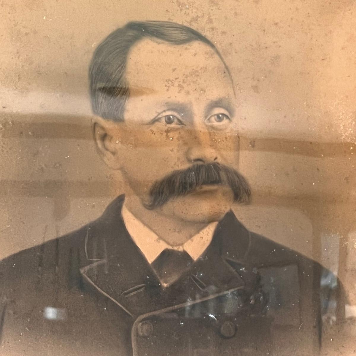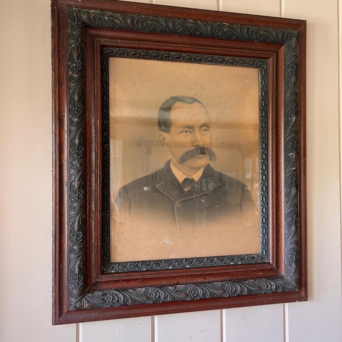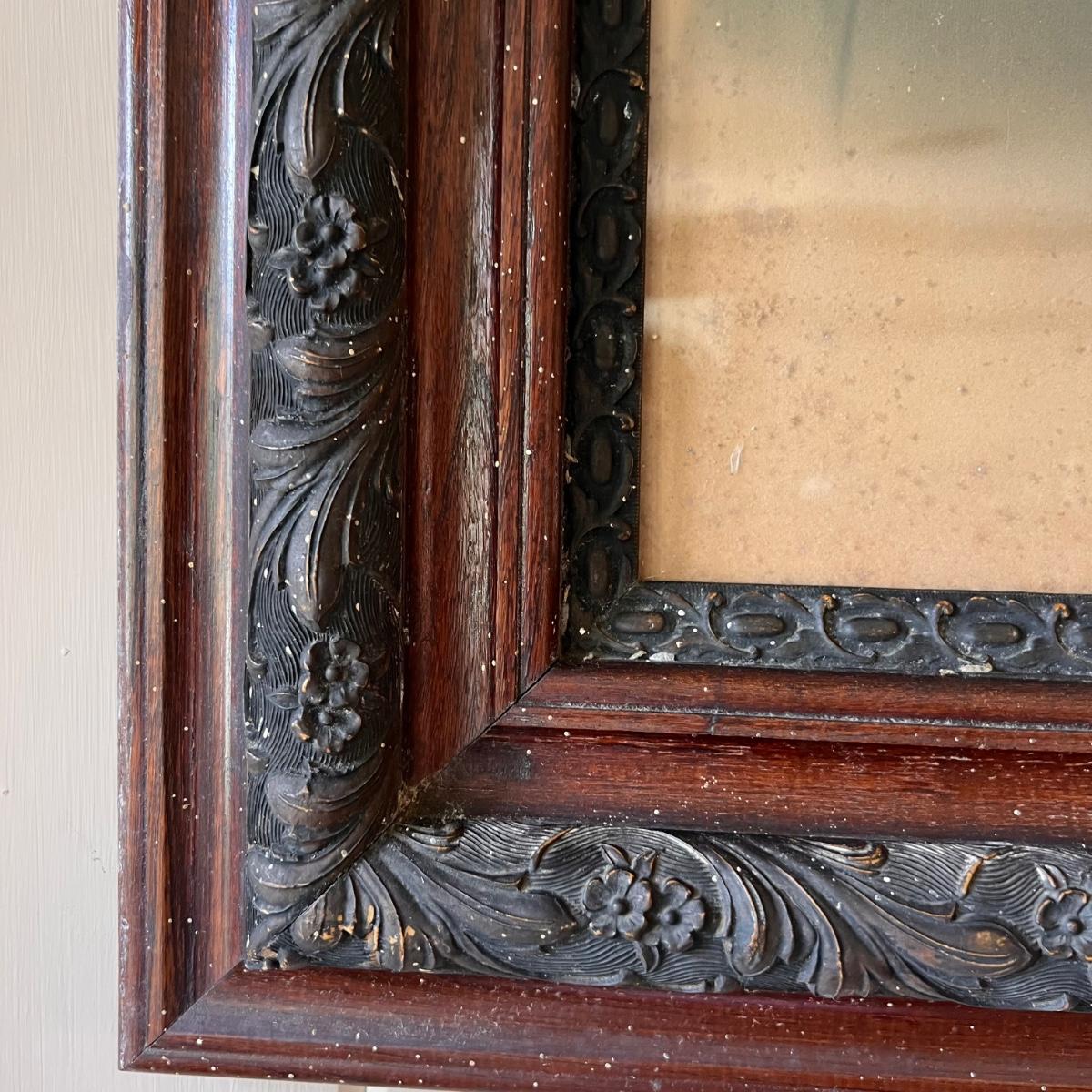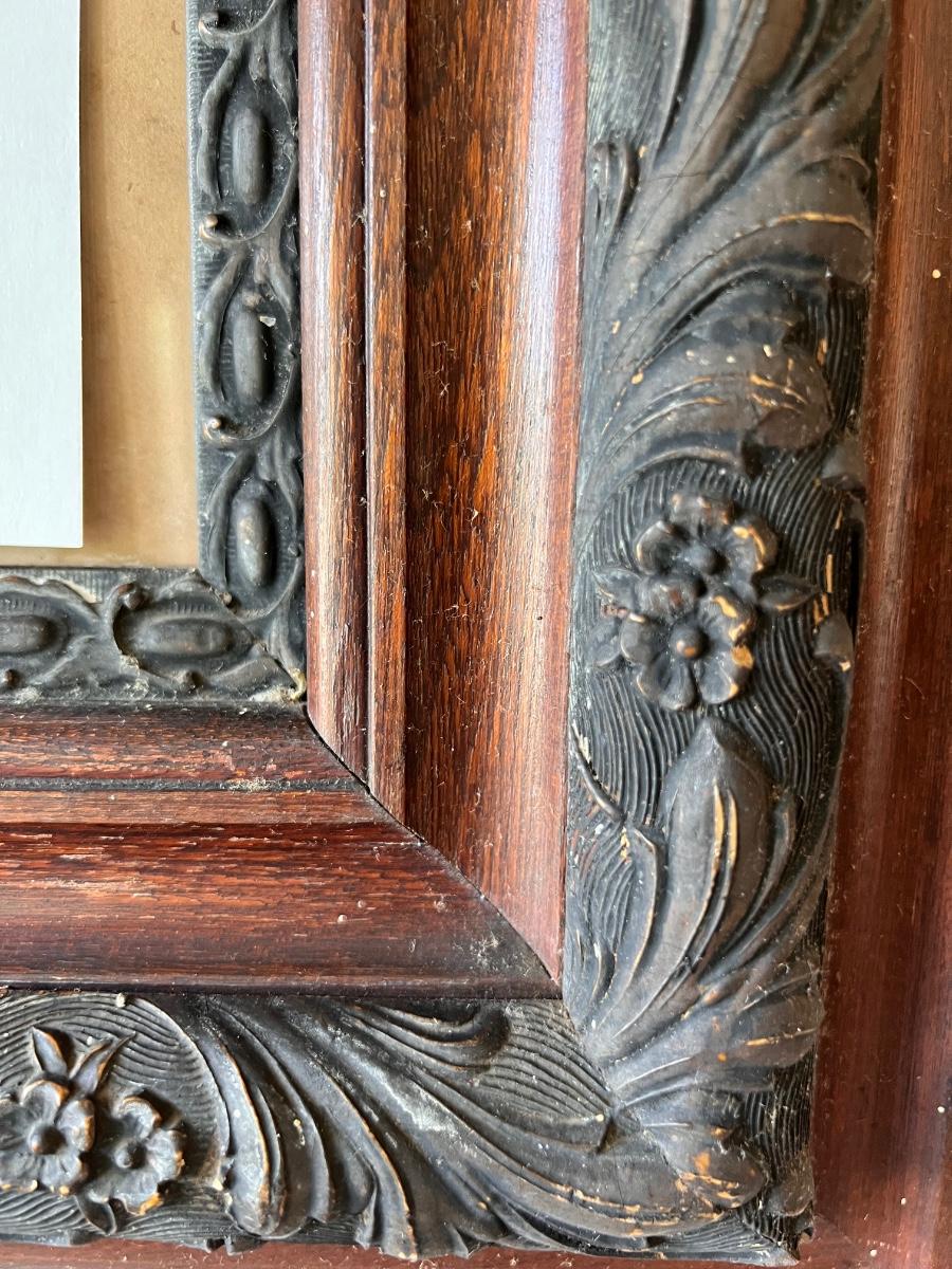 Carved wood frame with some slight chips, portrait paper has some spotting see all pics for details. 26" x 30"