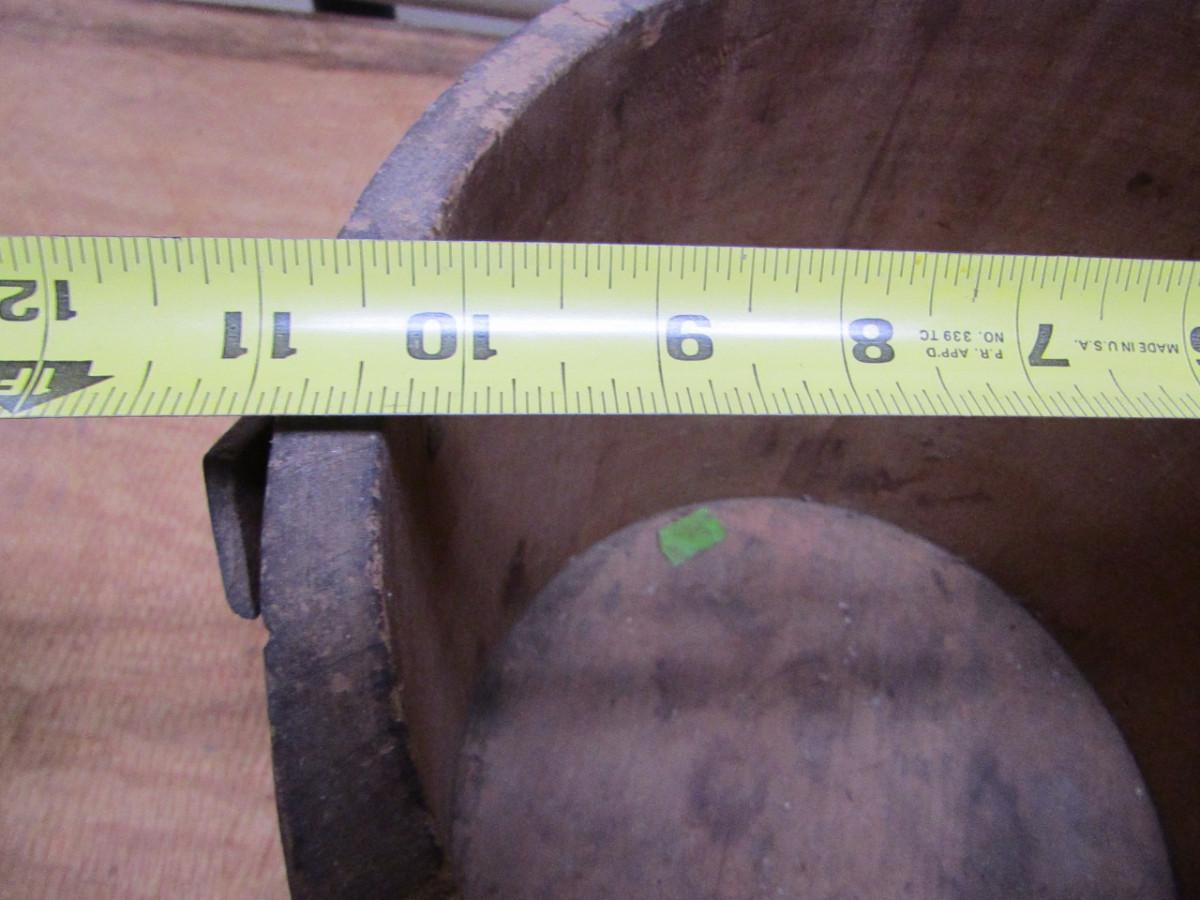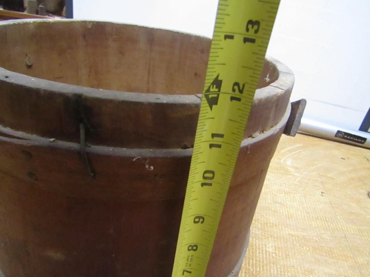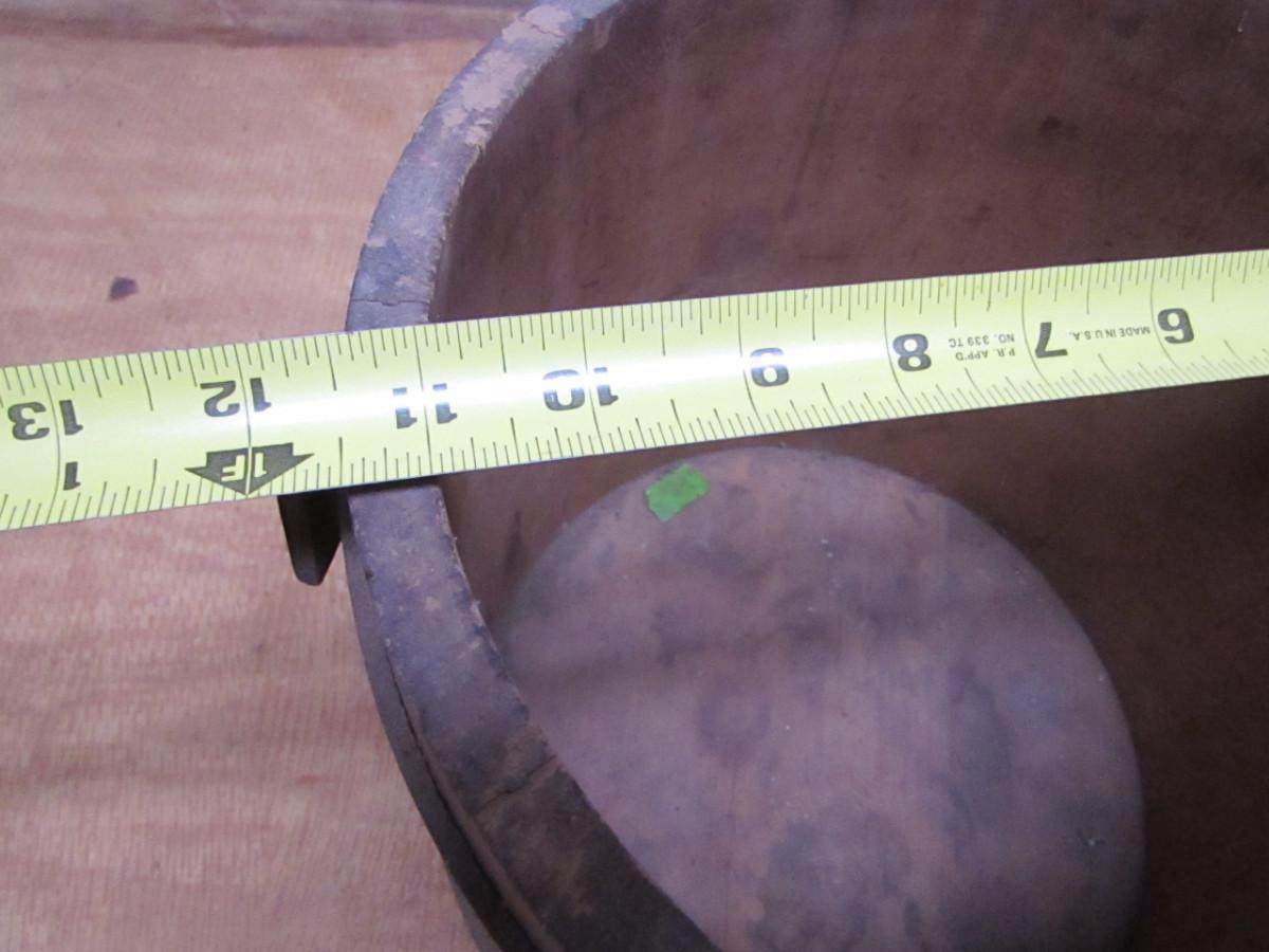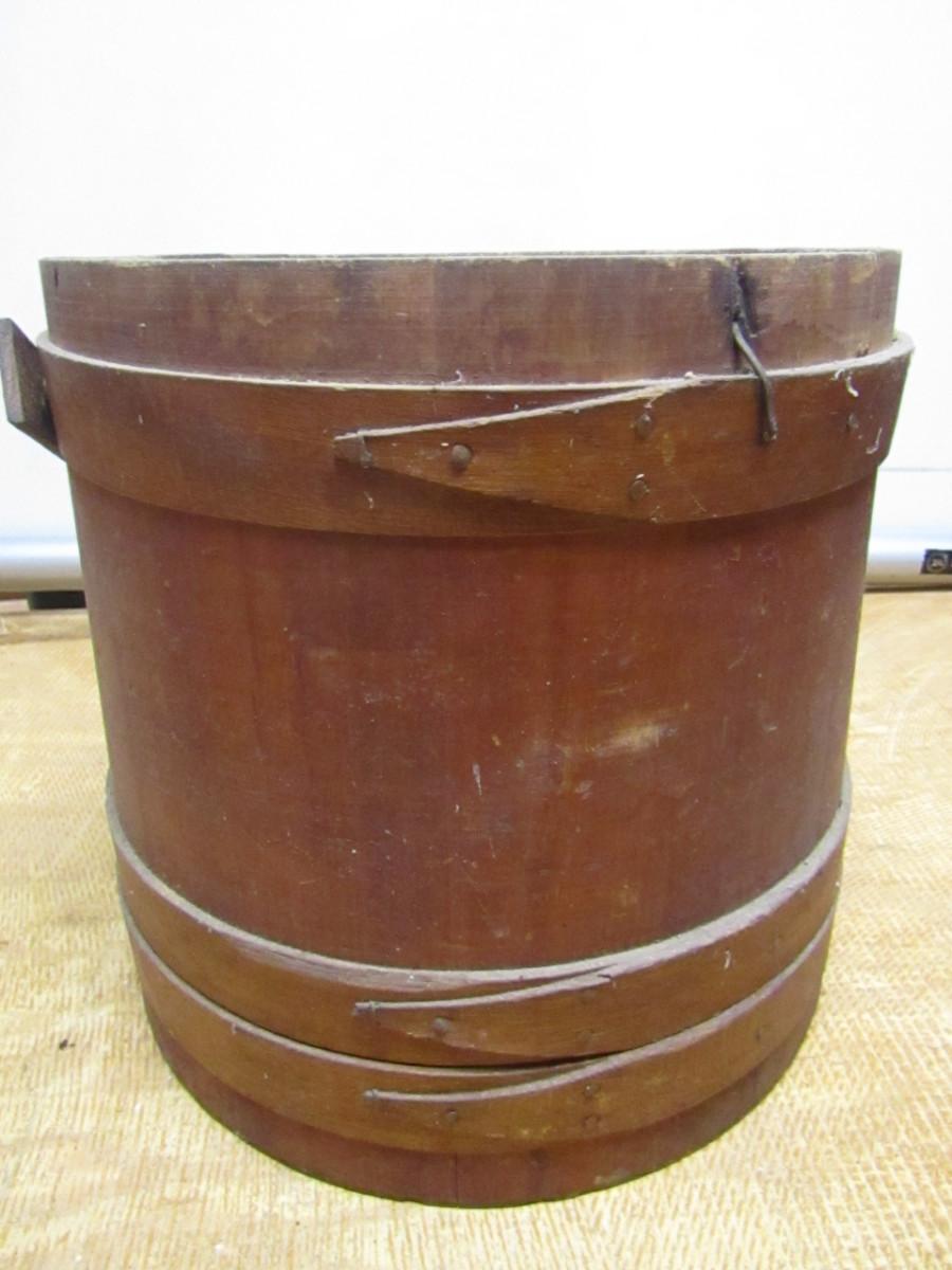 Large, Antique Wooden Mince Meat Pail- Approx 9 3/4" in Diameter, 12" Tall. Stored in non-climatized basement so expect item may need to be cleaned from dust, insects, etc.