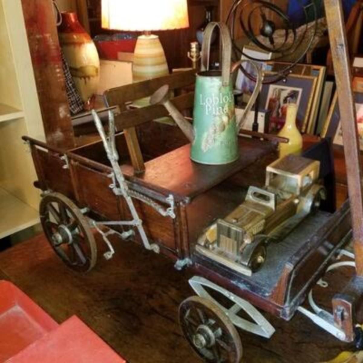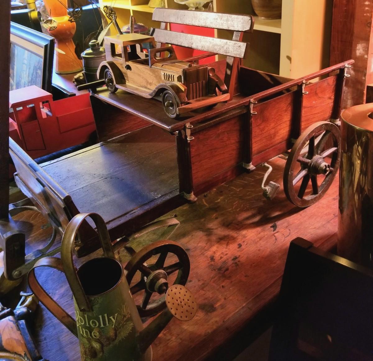 Large antique wooden toy wagon