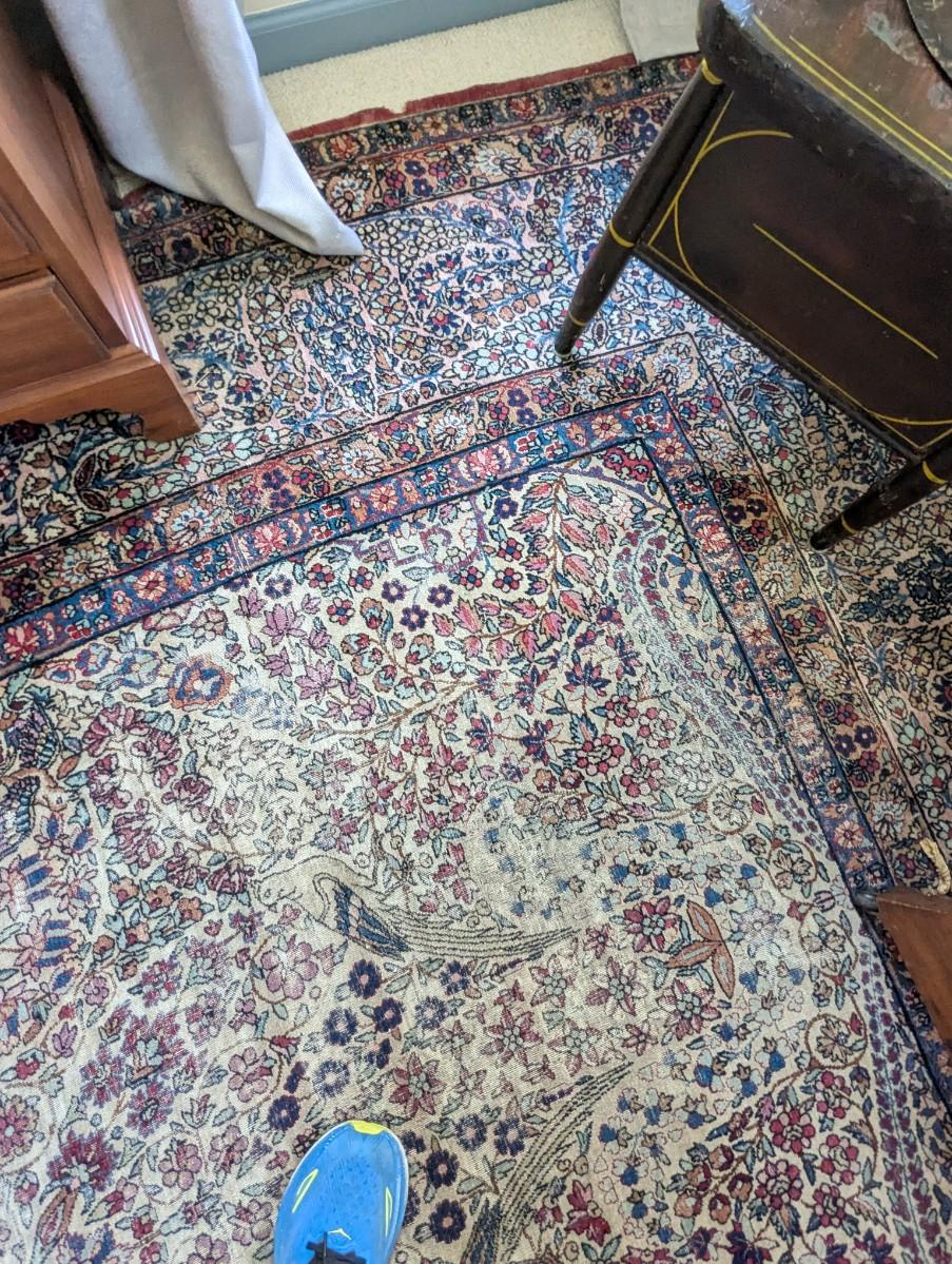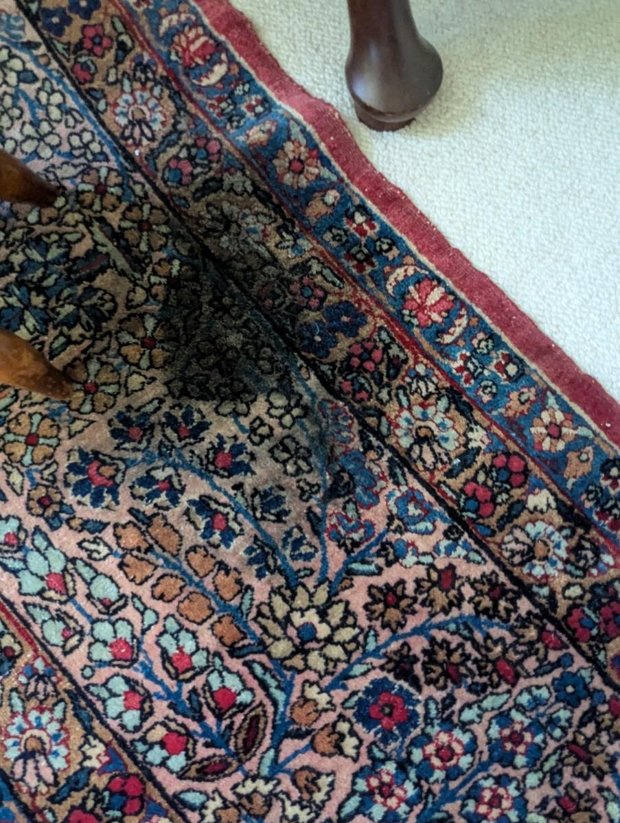 Please wait until the second day of pickup to get the rug. Rug does have some damage
