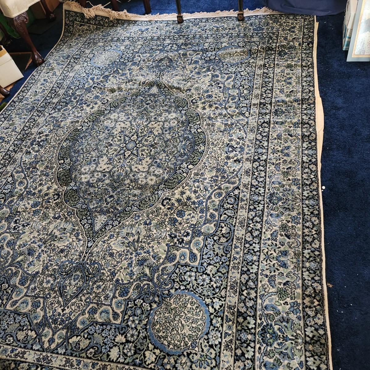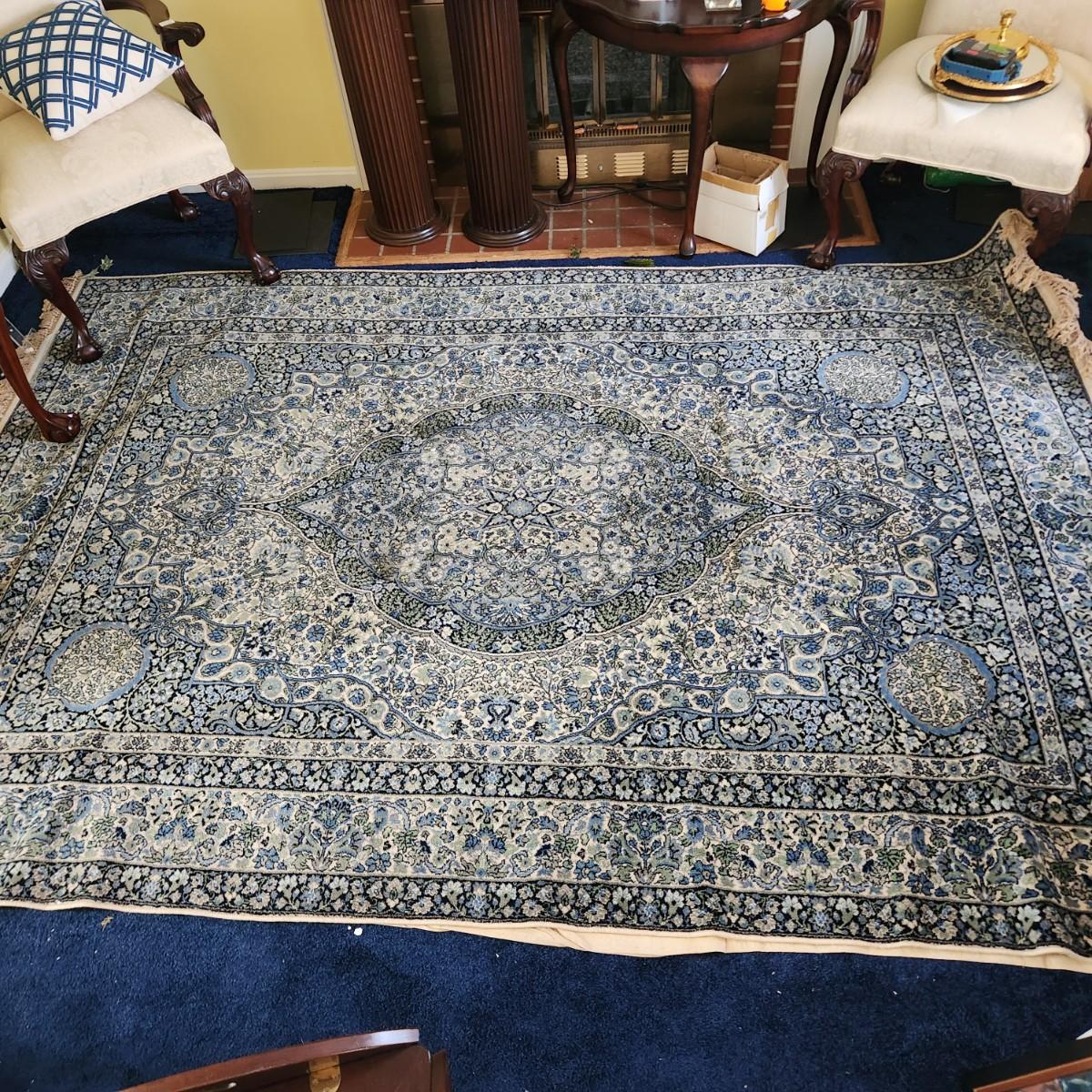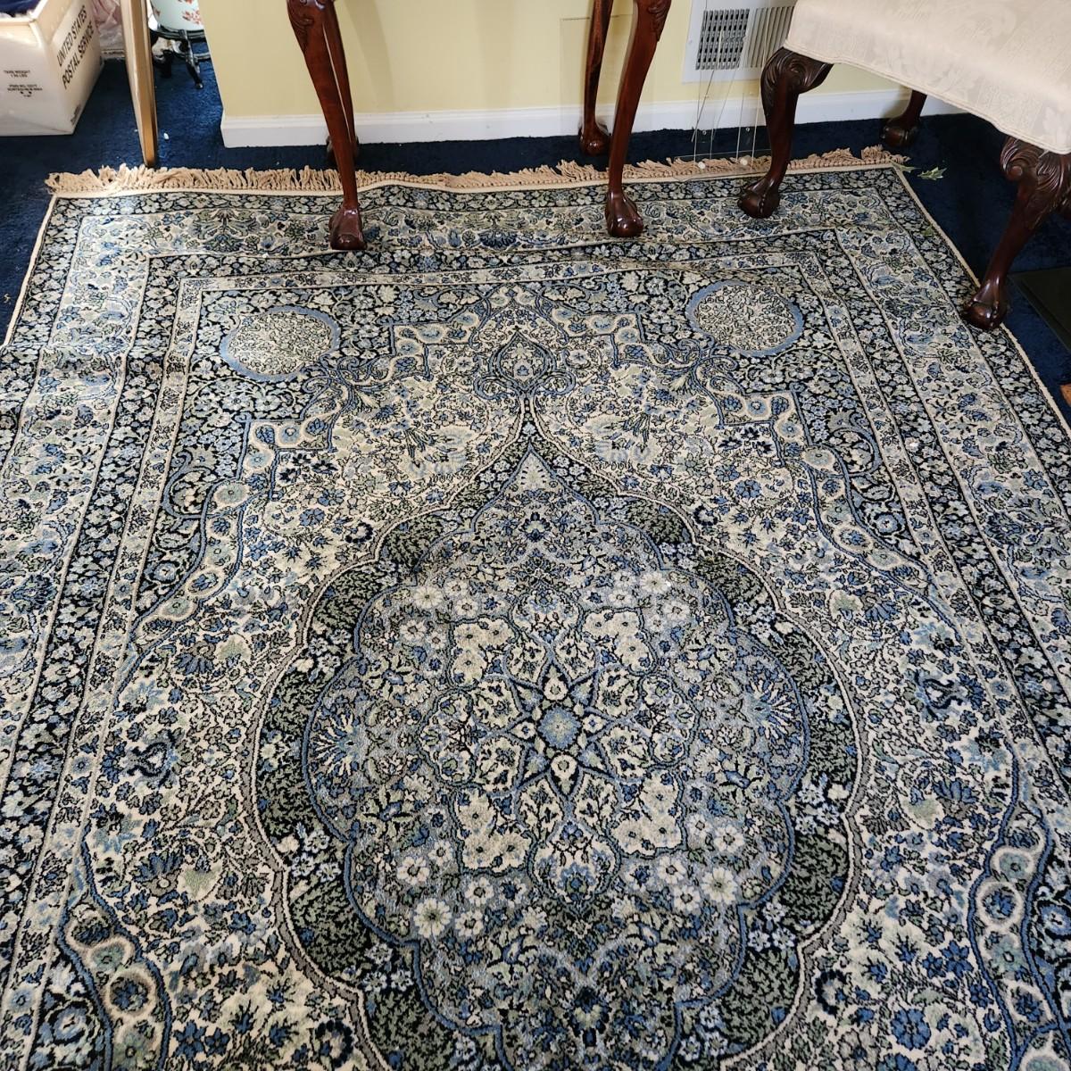 Large Area Rug Blue Green White Black 10' x 6.5'