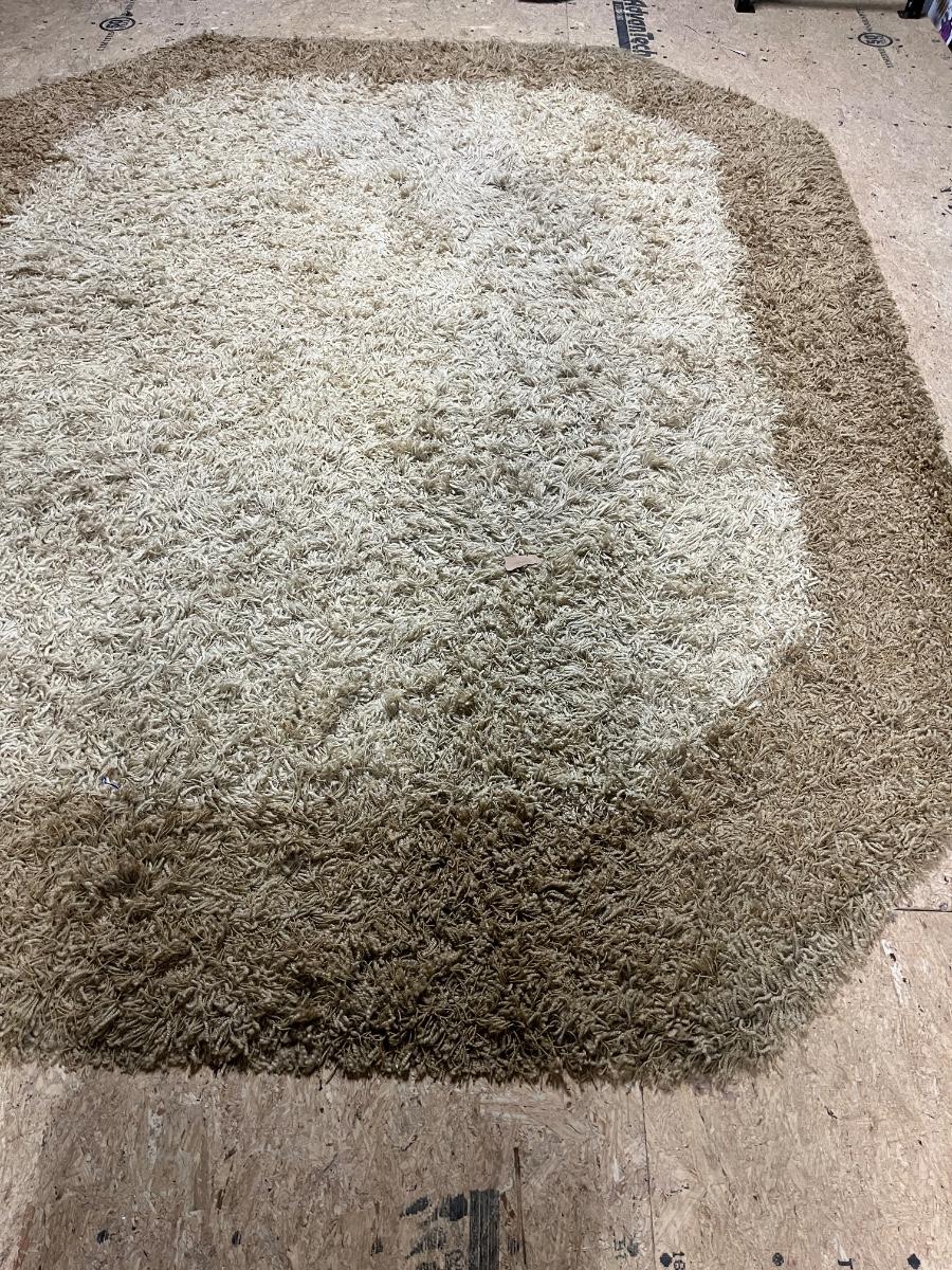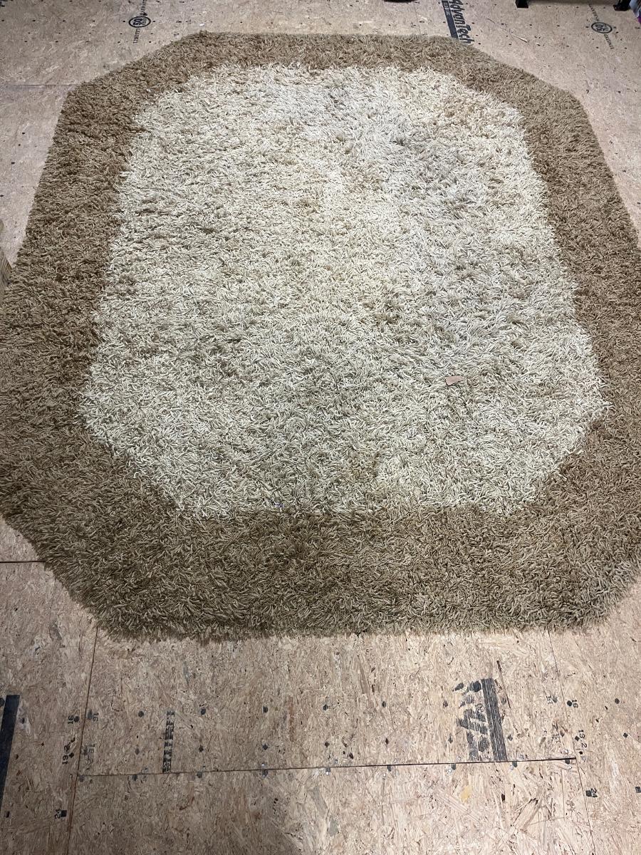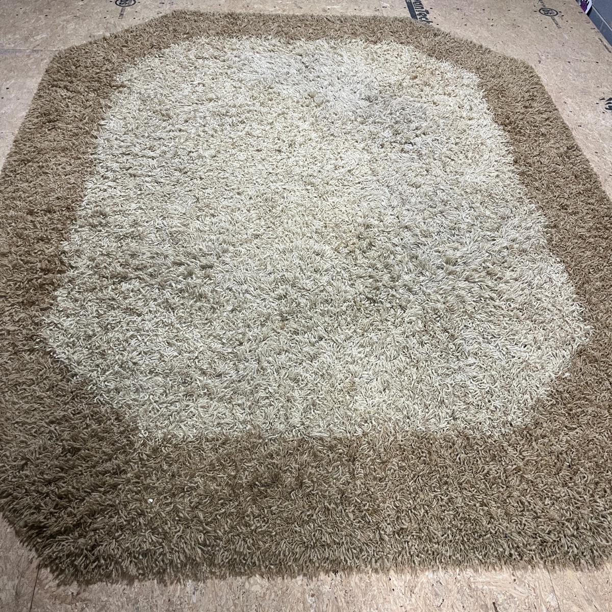 Lot includes a large area rug that is a shag pile with a border. Rug measures 9’8” x 7’6”.