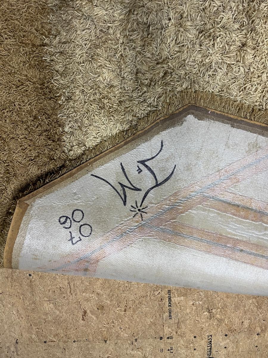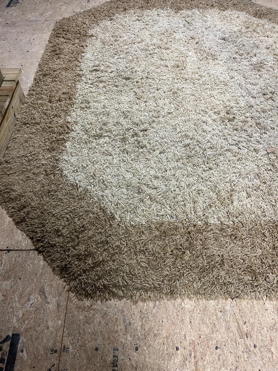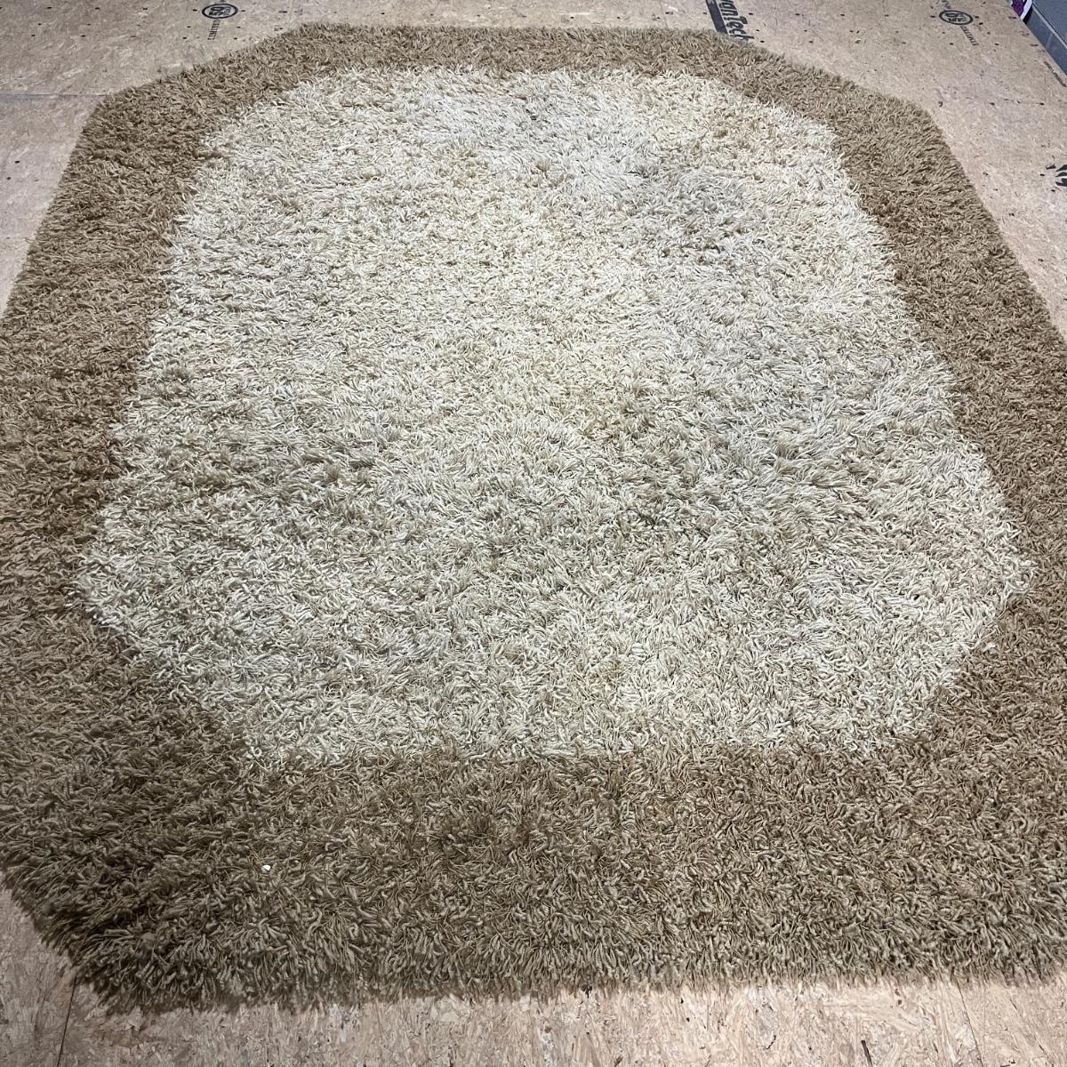 Lot includes a large area rug that is a shag pile with a border. Rug measures 9’8” x 7’6”.