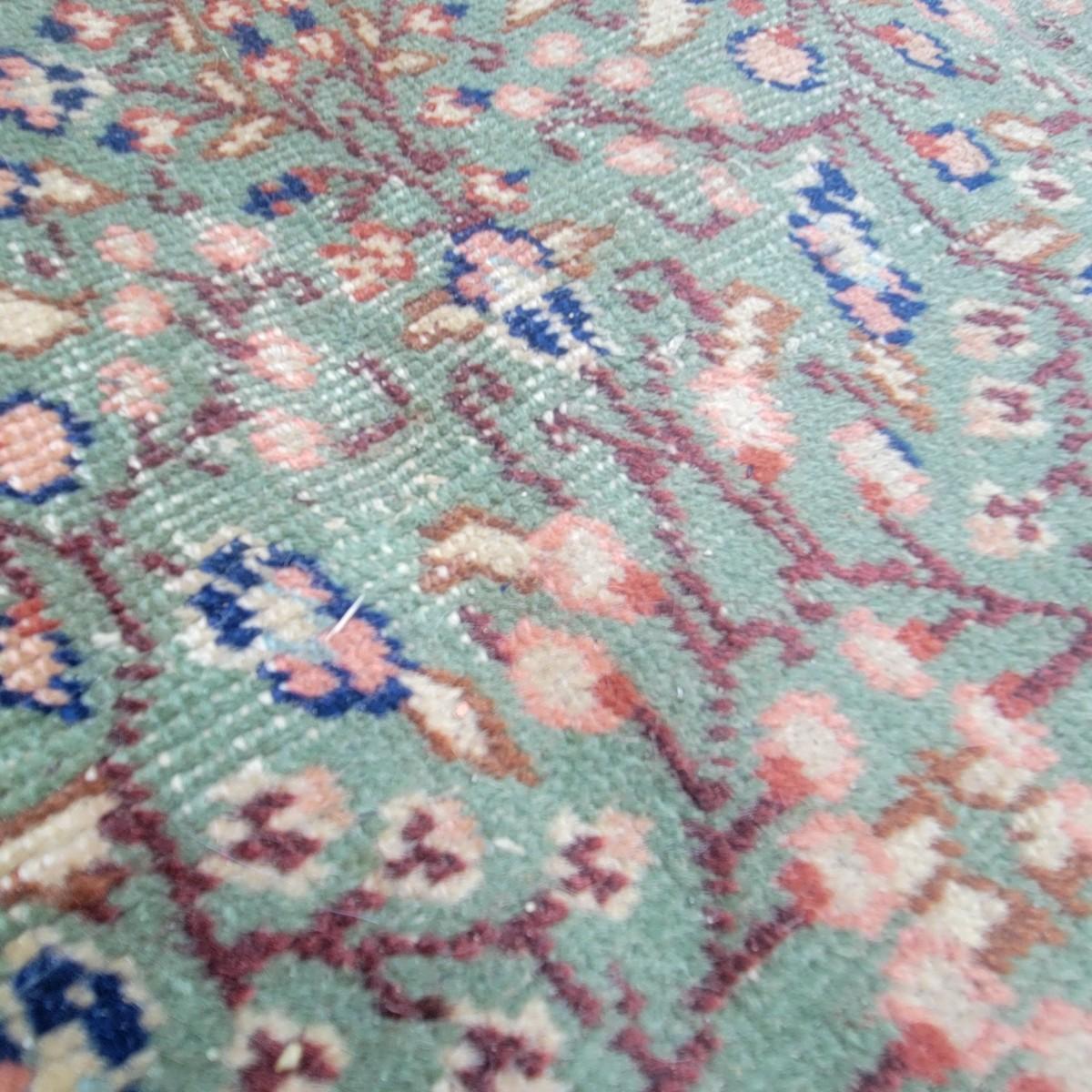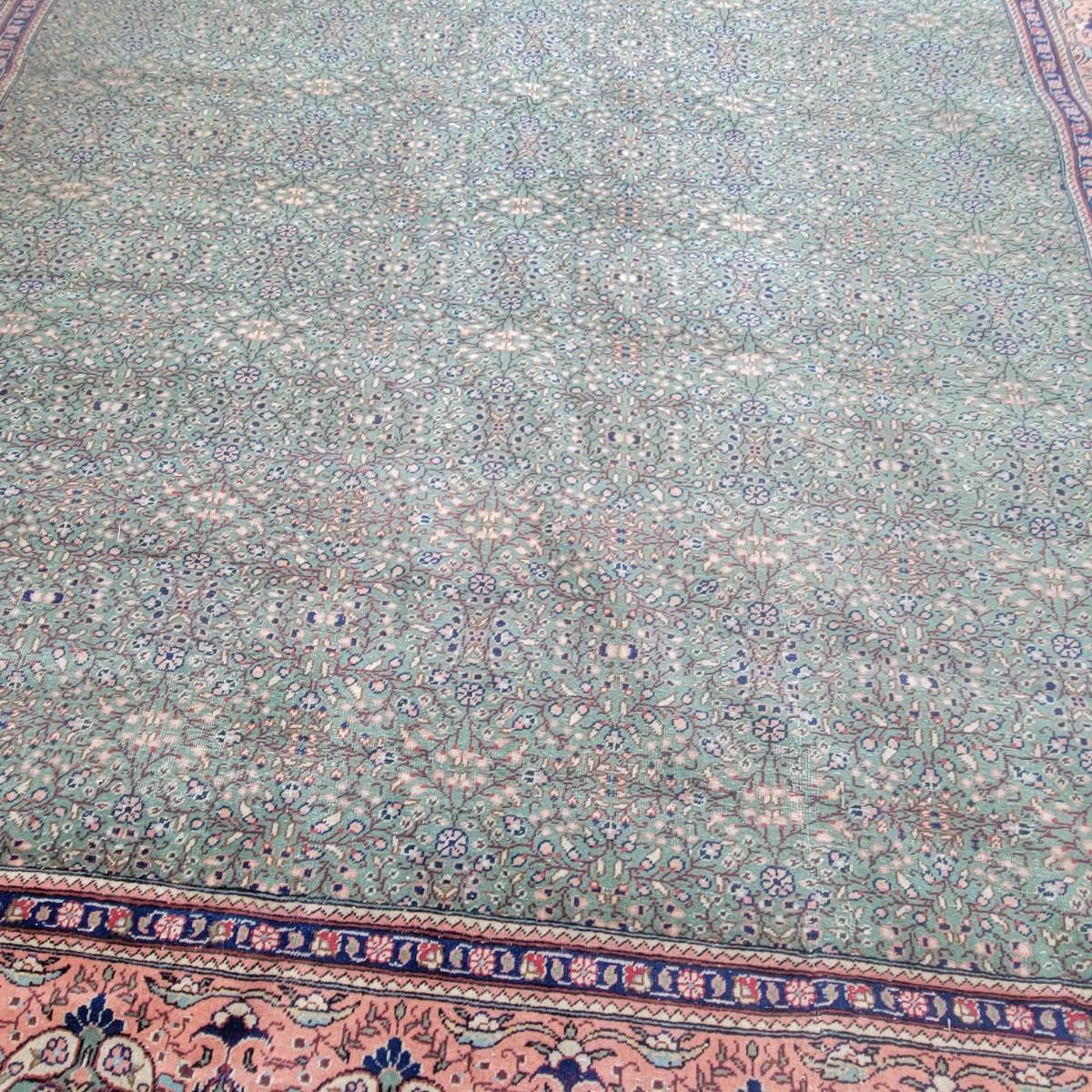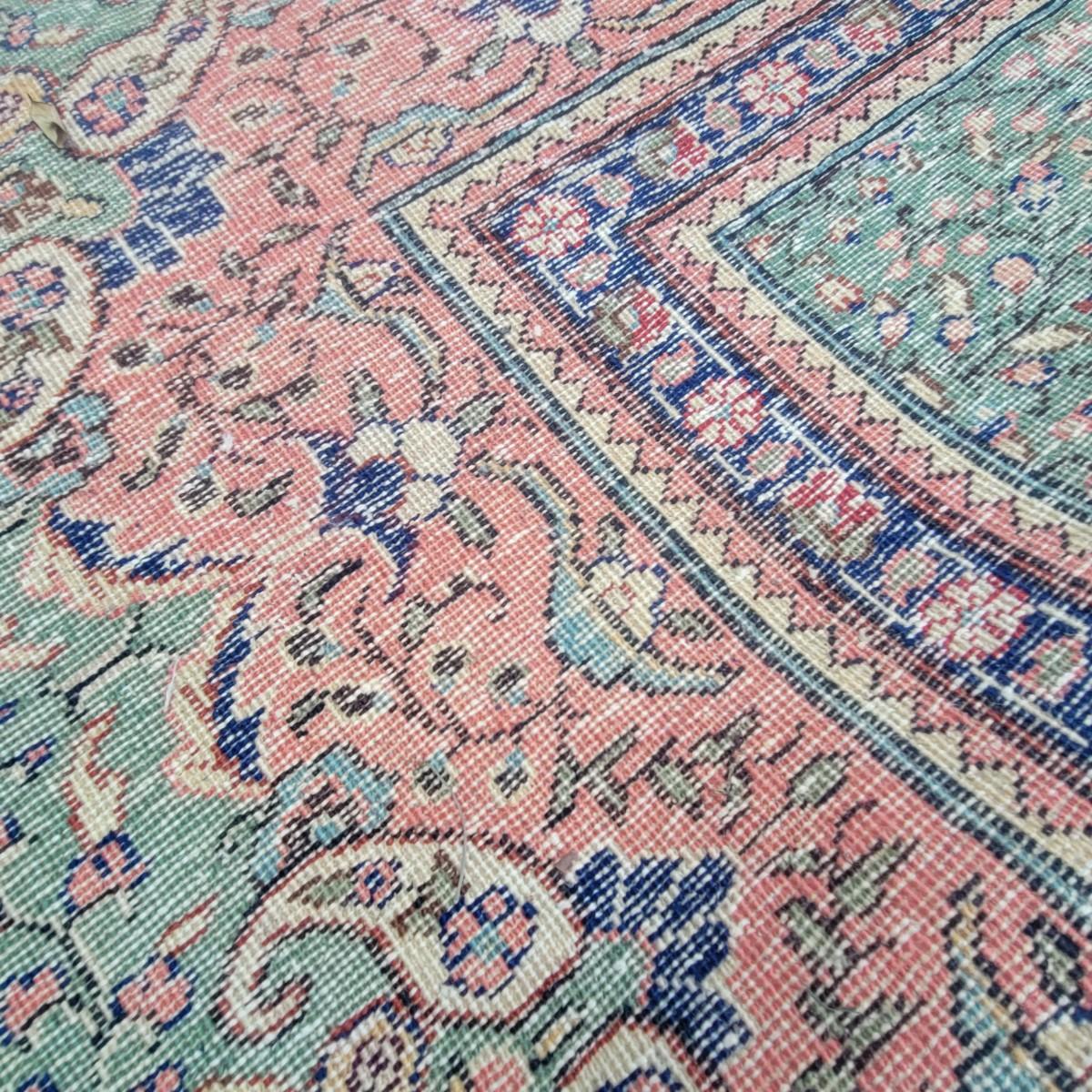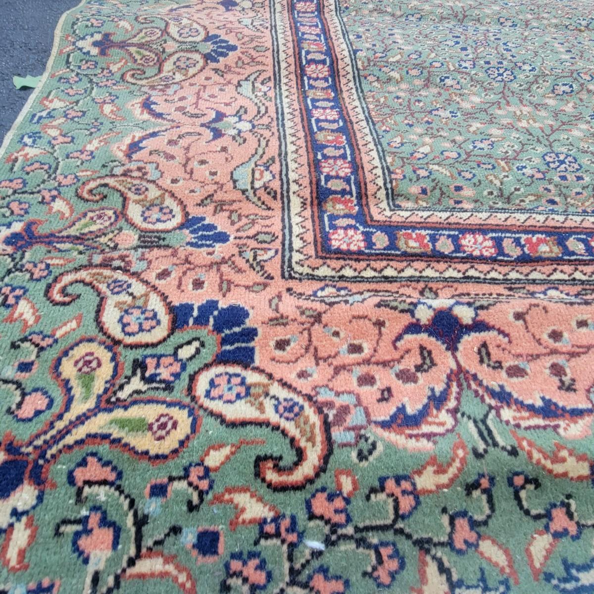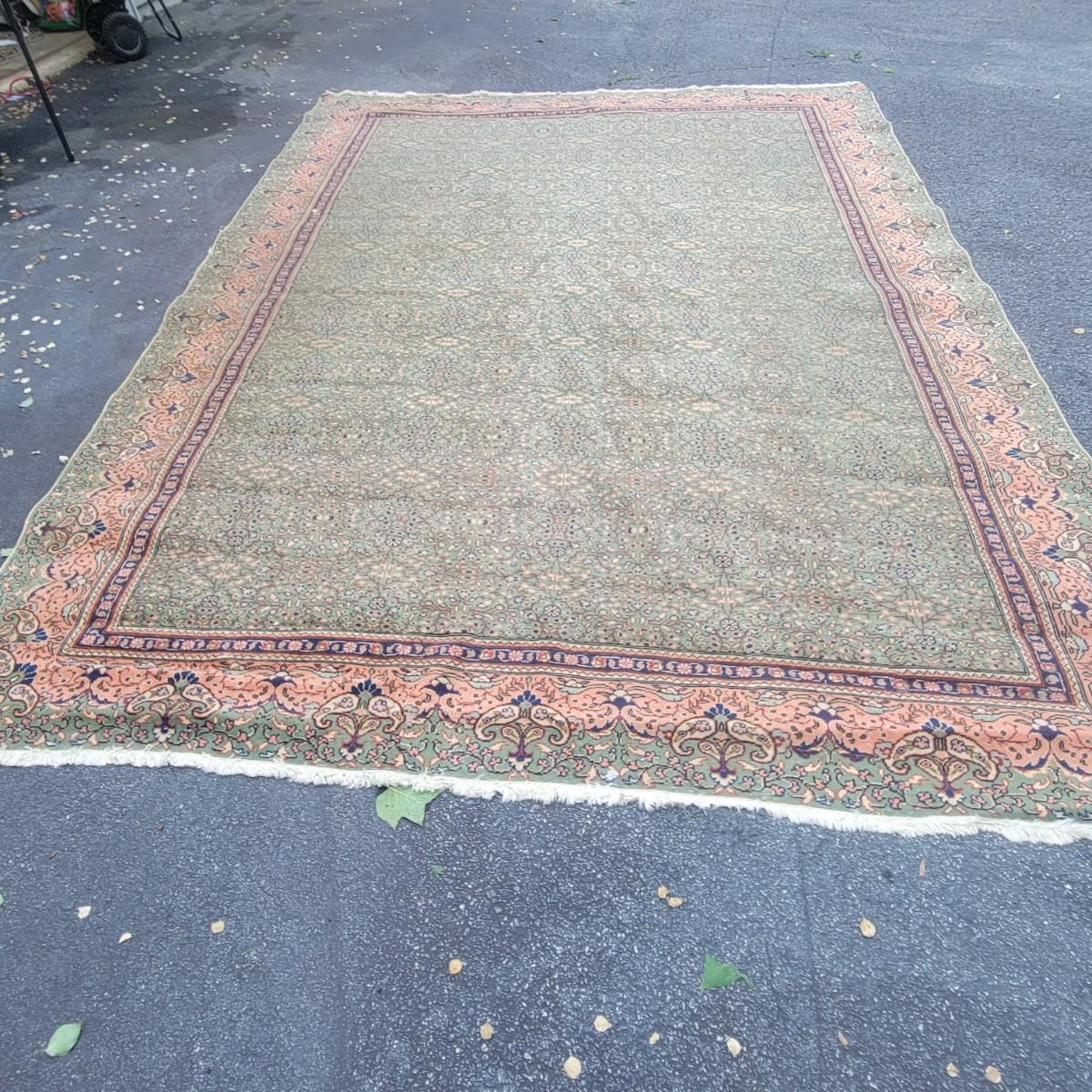 Very large rug of unknown manufacturer. Measures approximately 138" x 104". Rug is in decent condition. Tassels are intact, but the rug itself is threadbare in a few areas. Local pickup only