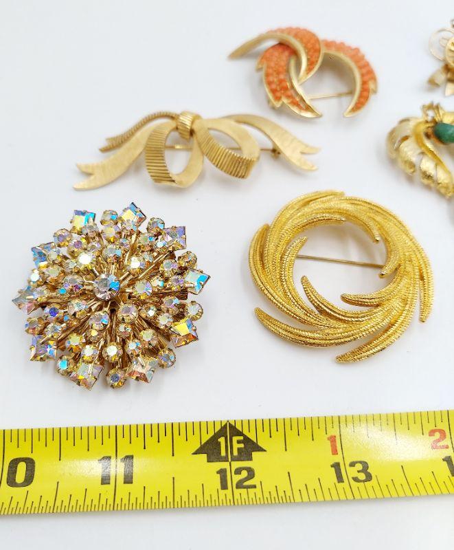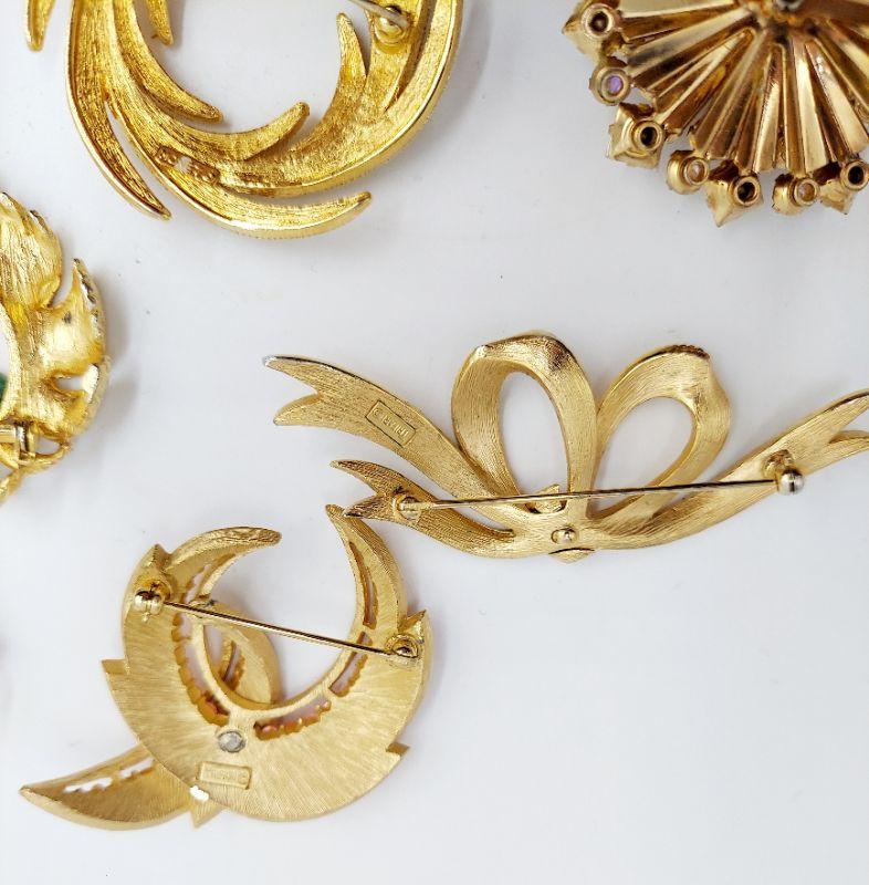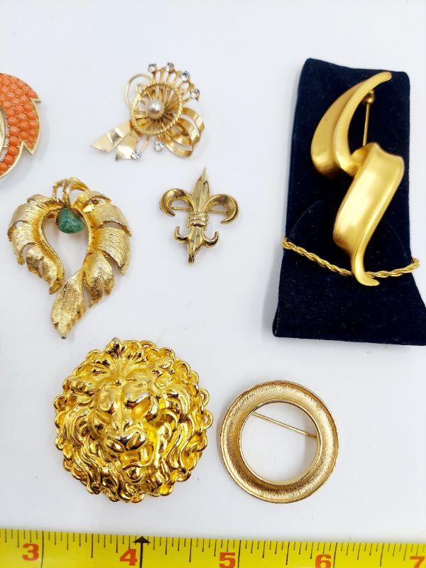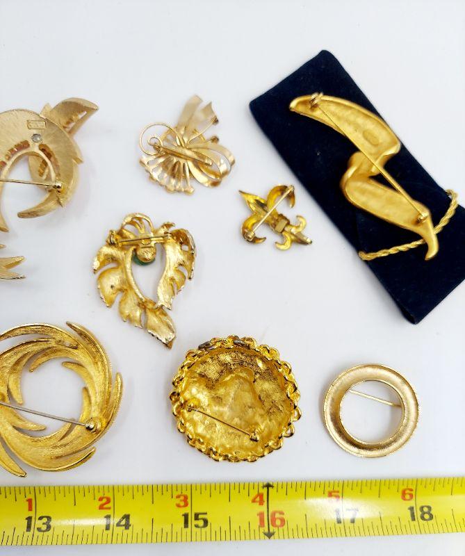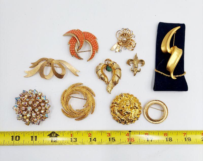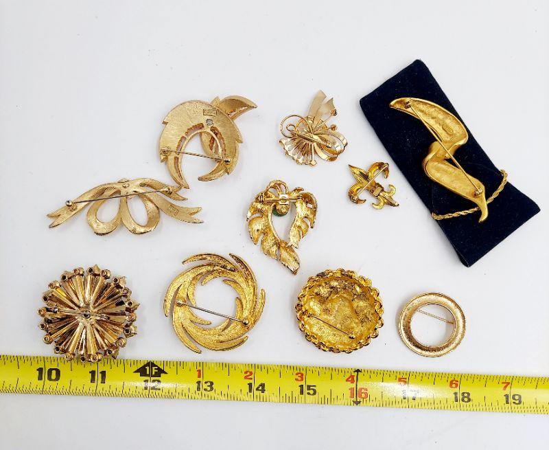 LARGE ARRAY OF GOLD TONED BROOCHES / PINS 10 PC