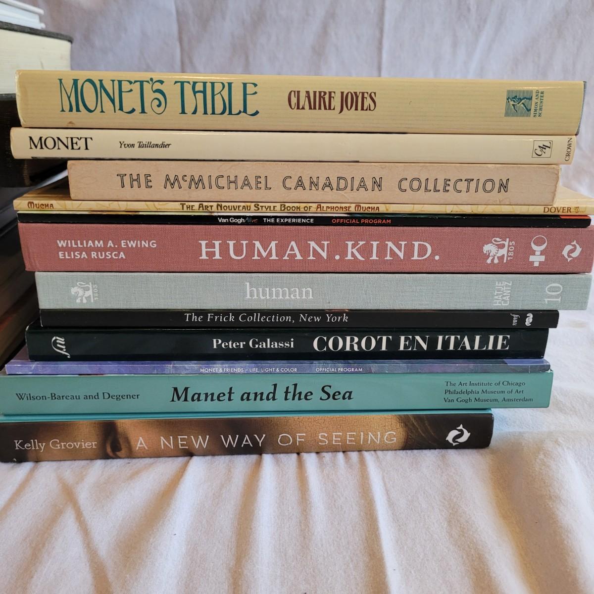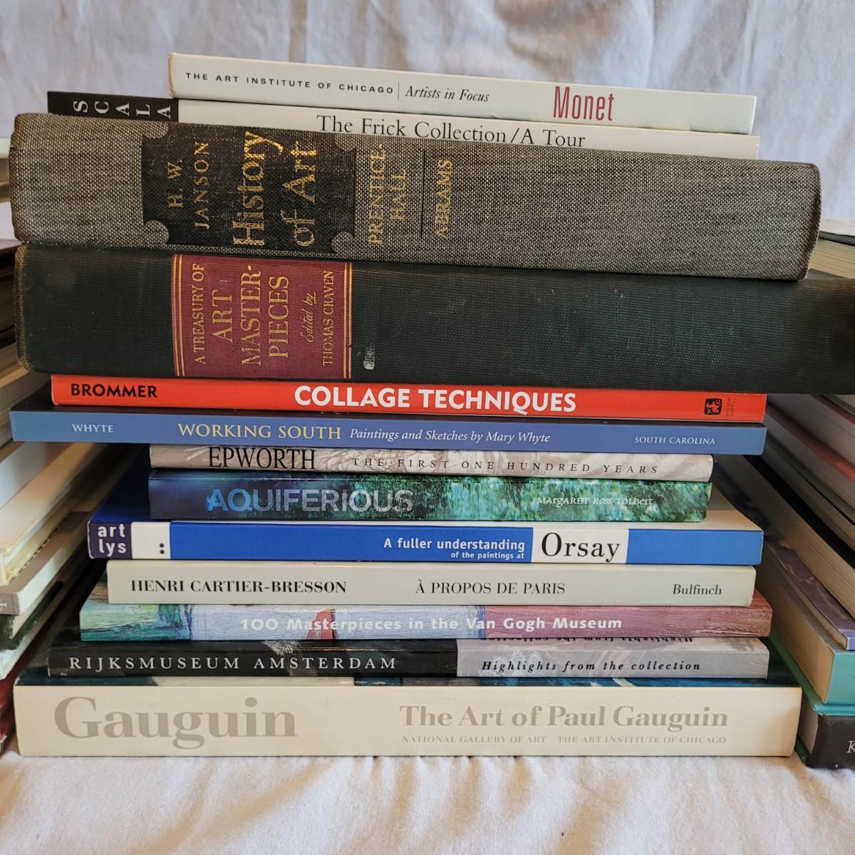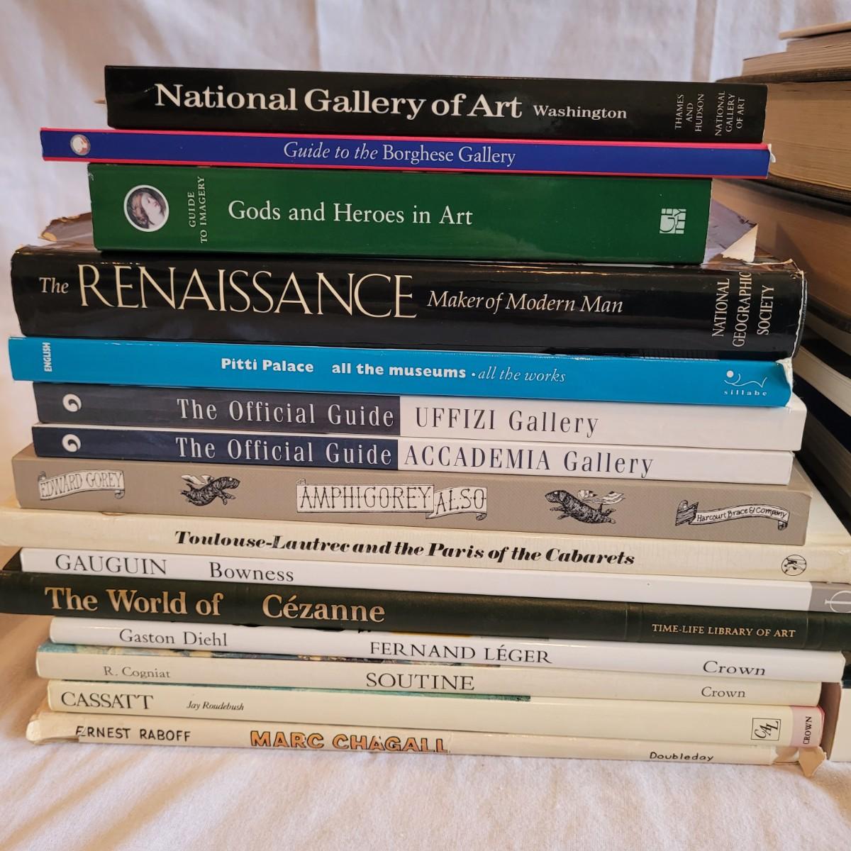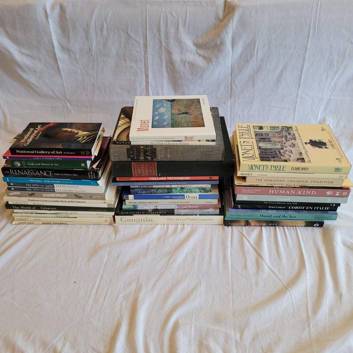 Large lot of books on various subjects of art. Titles include "The Renaissance", "History of Art", "Art Masterpieces", "Collage Techniques", "Aquiferious" "Human. Kind.", "Manet and the Sea", "A New Way of Seeing", and many more. 40 books in total. Mix of hardback and paperback copies.
