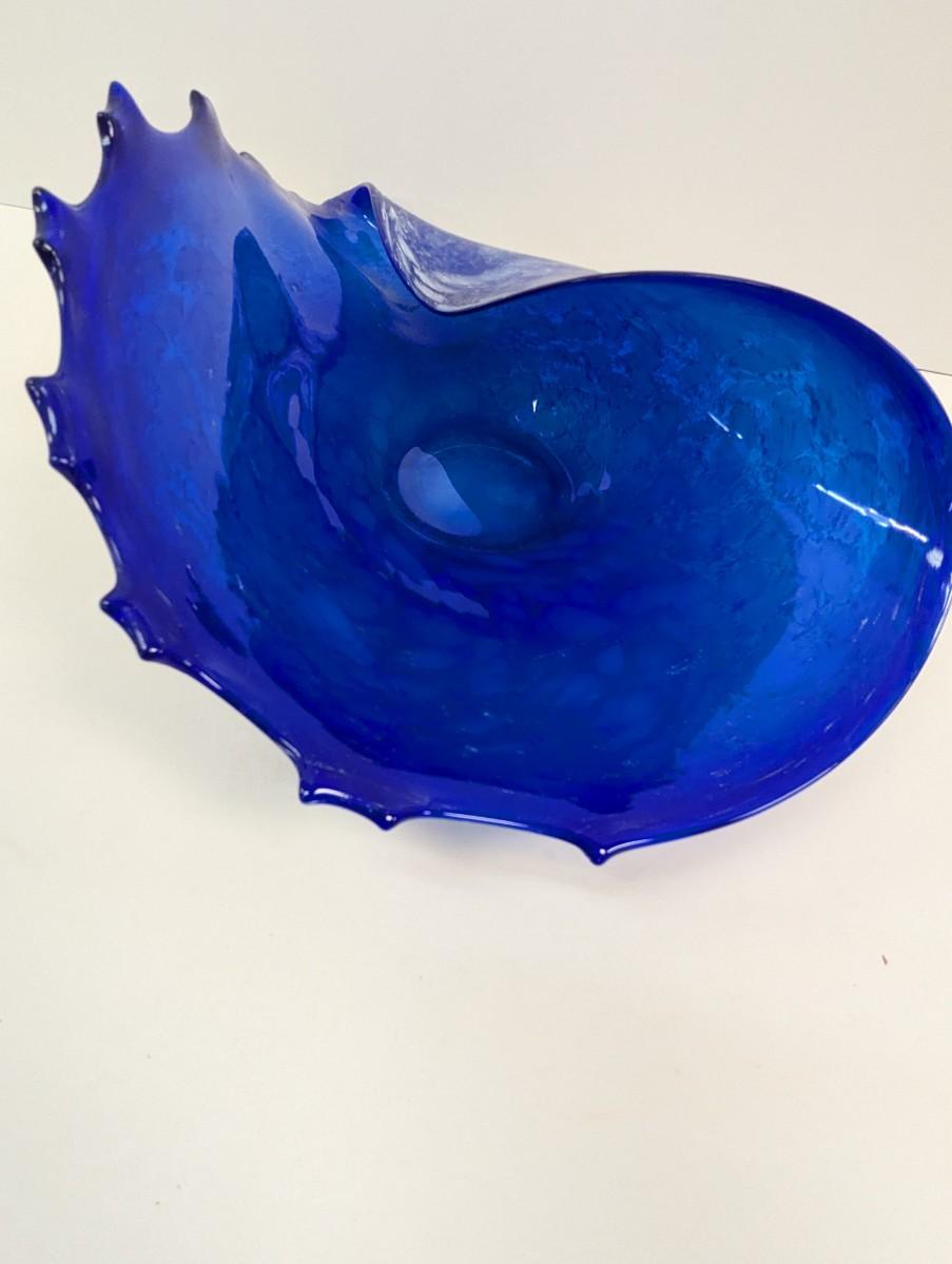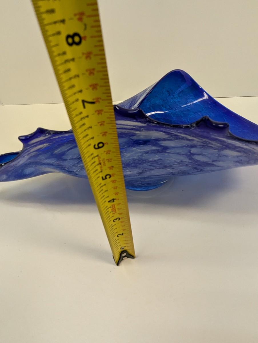 Large Art Glass Blue Ocean Wave Bowl #52