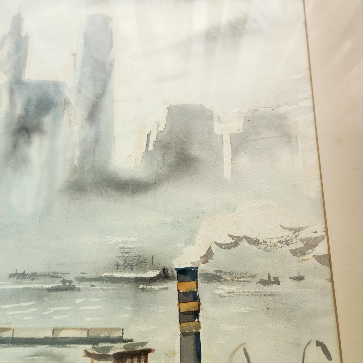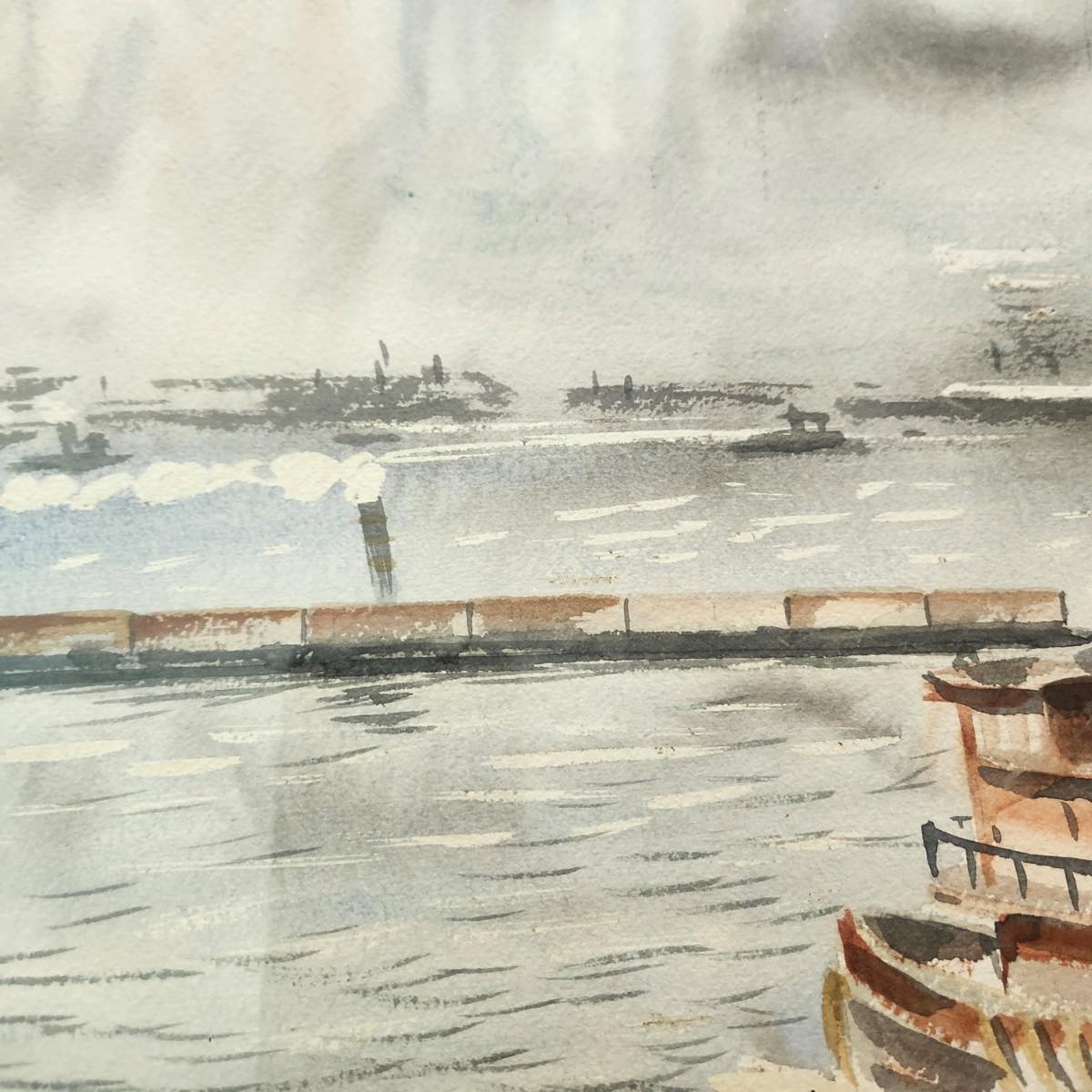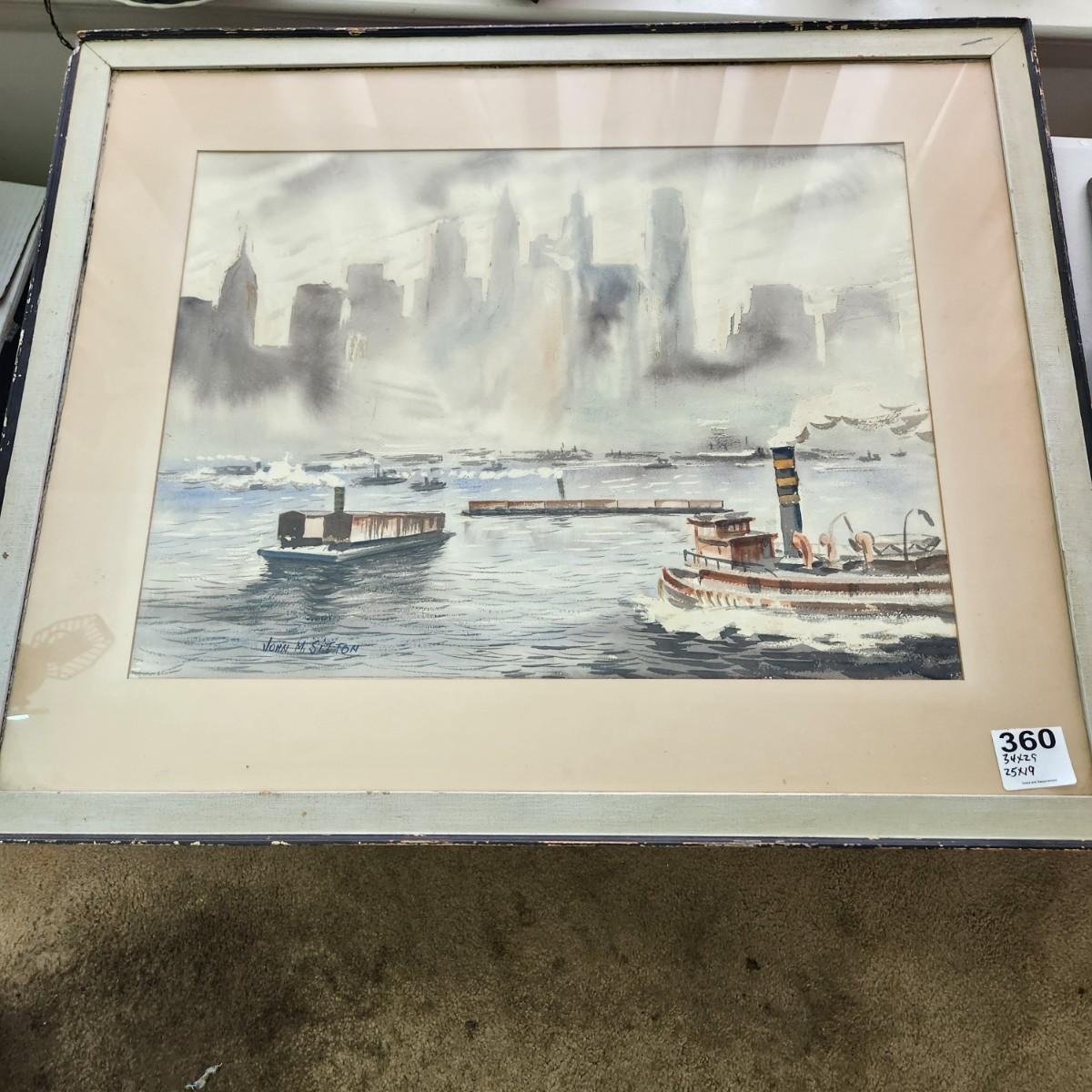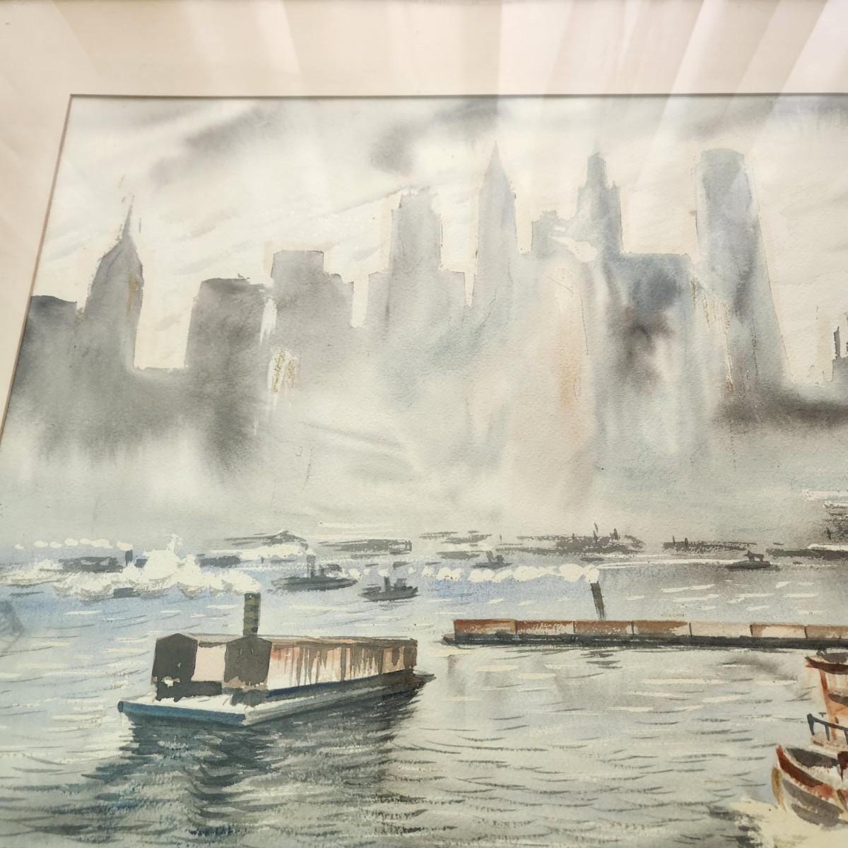 Large Art New York skyline Hudson River Ships Barges John M. Sitton 34x29