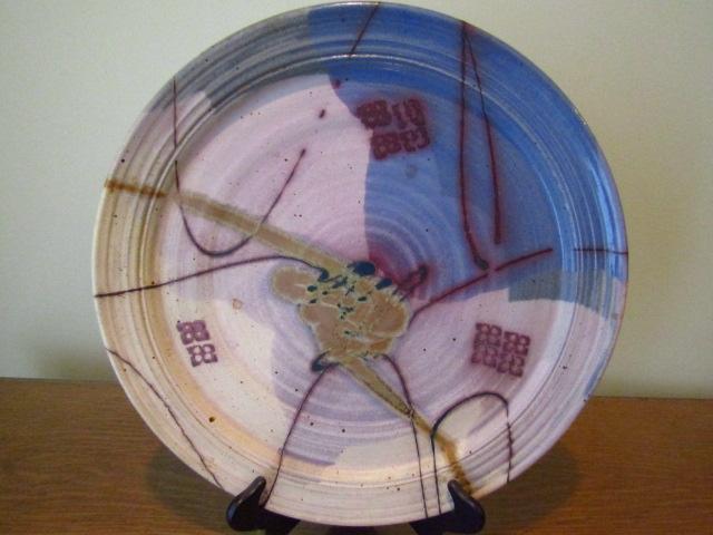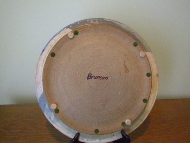 Large Artisan Glaze Pottery Stoneware Charger Signed by Brunson 18" holder not included