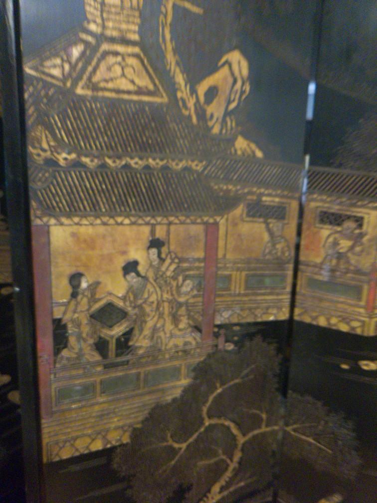 Hand painted and inlaid.