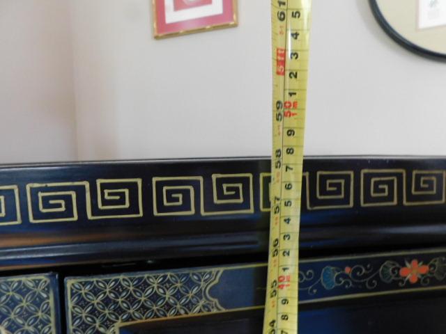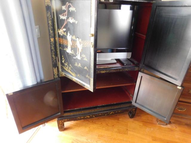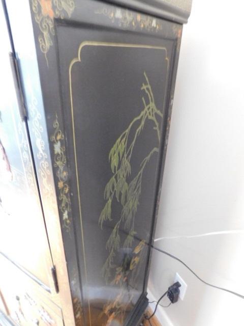 Large Asian Black Laquer with Mother of Pearl Carved Inlay Geisha Scenes Cabinet 39"x18"x58"