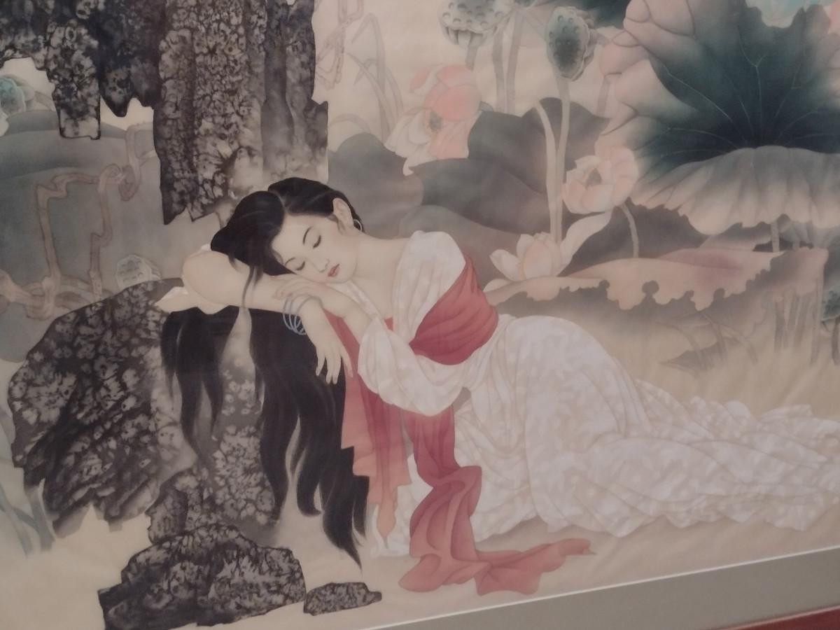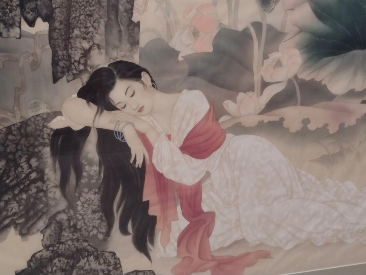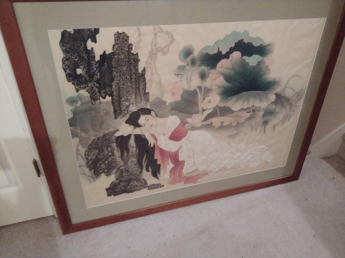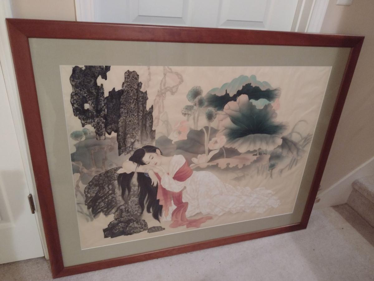 Large, Asian Design Art- Framed Under Glass- Approx 41 1/2" x 52 3/4"