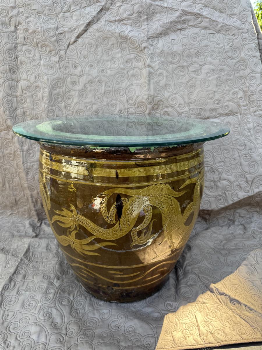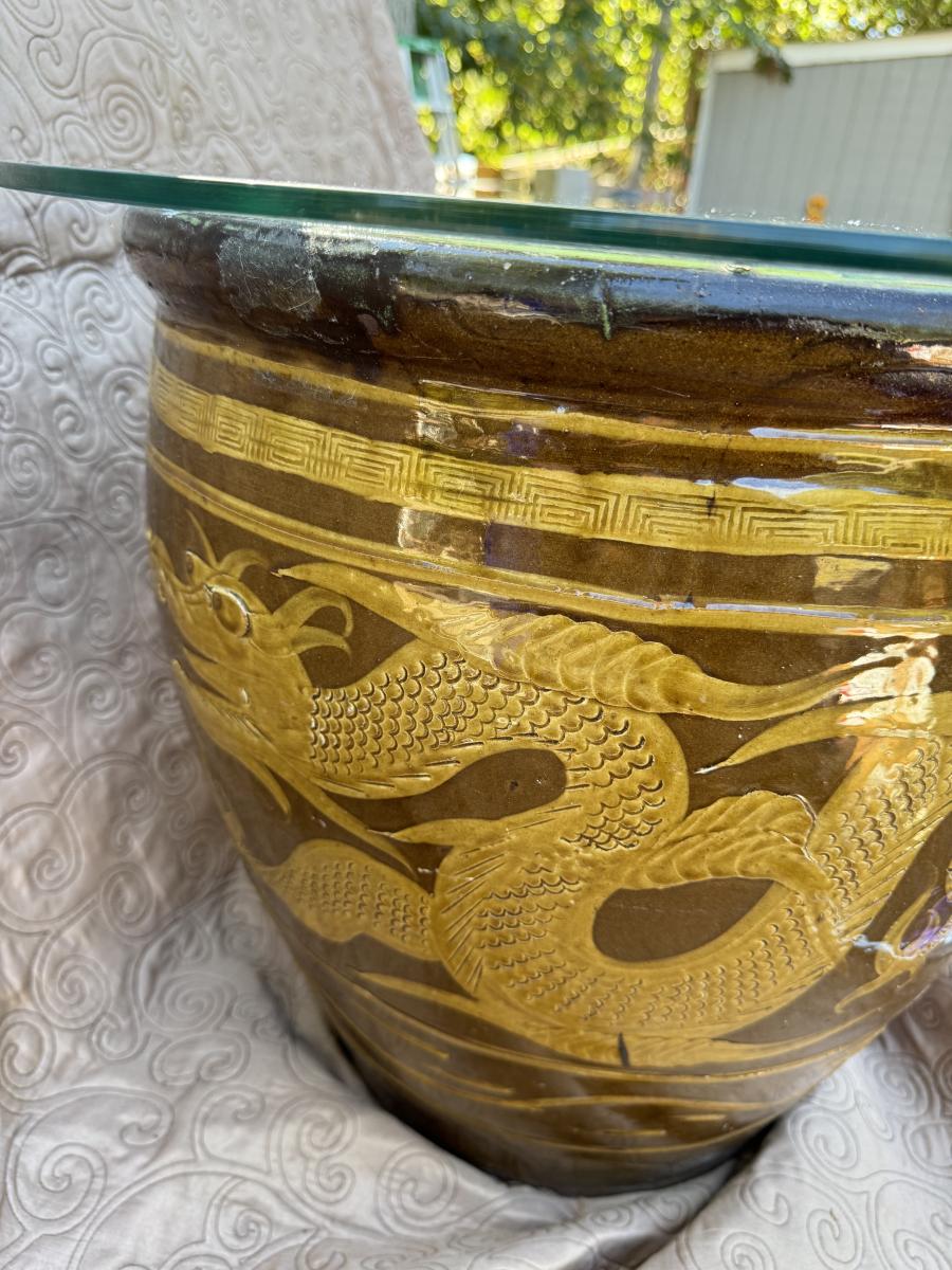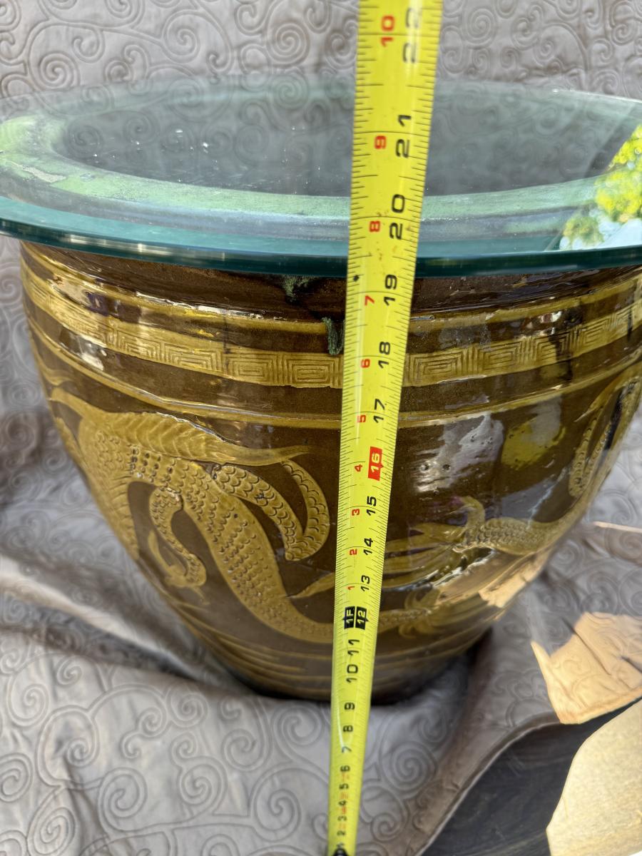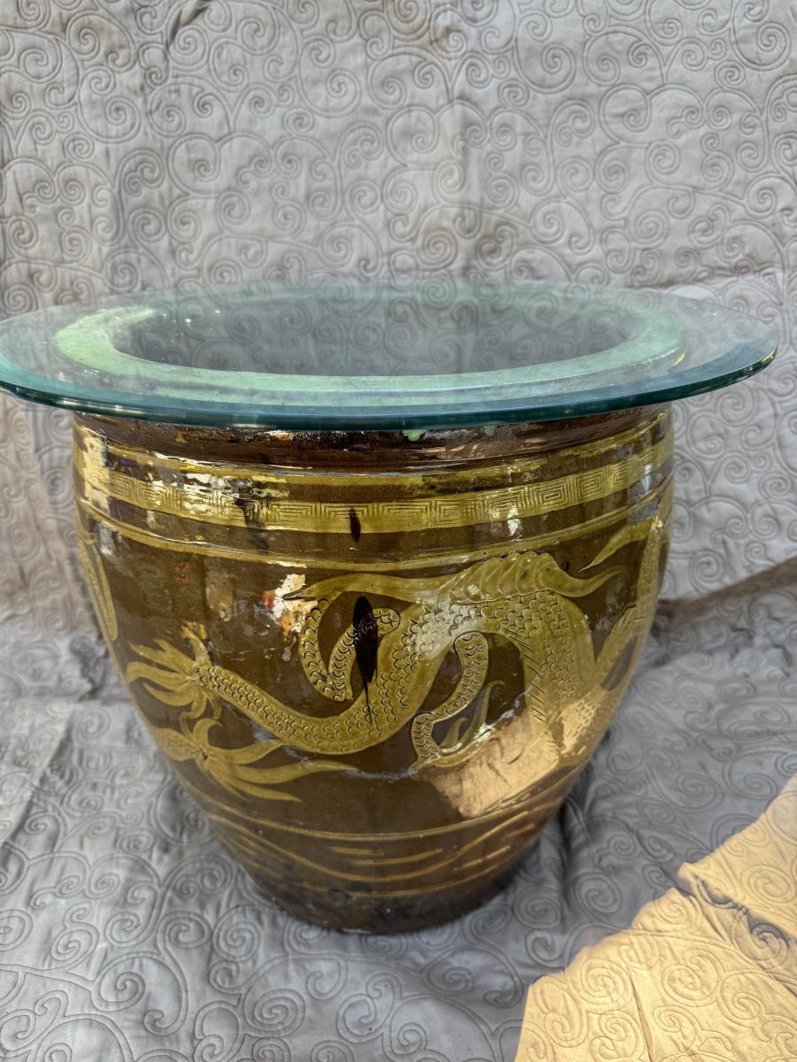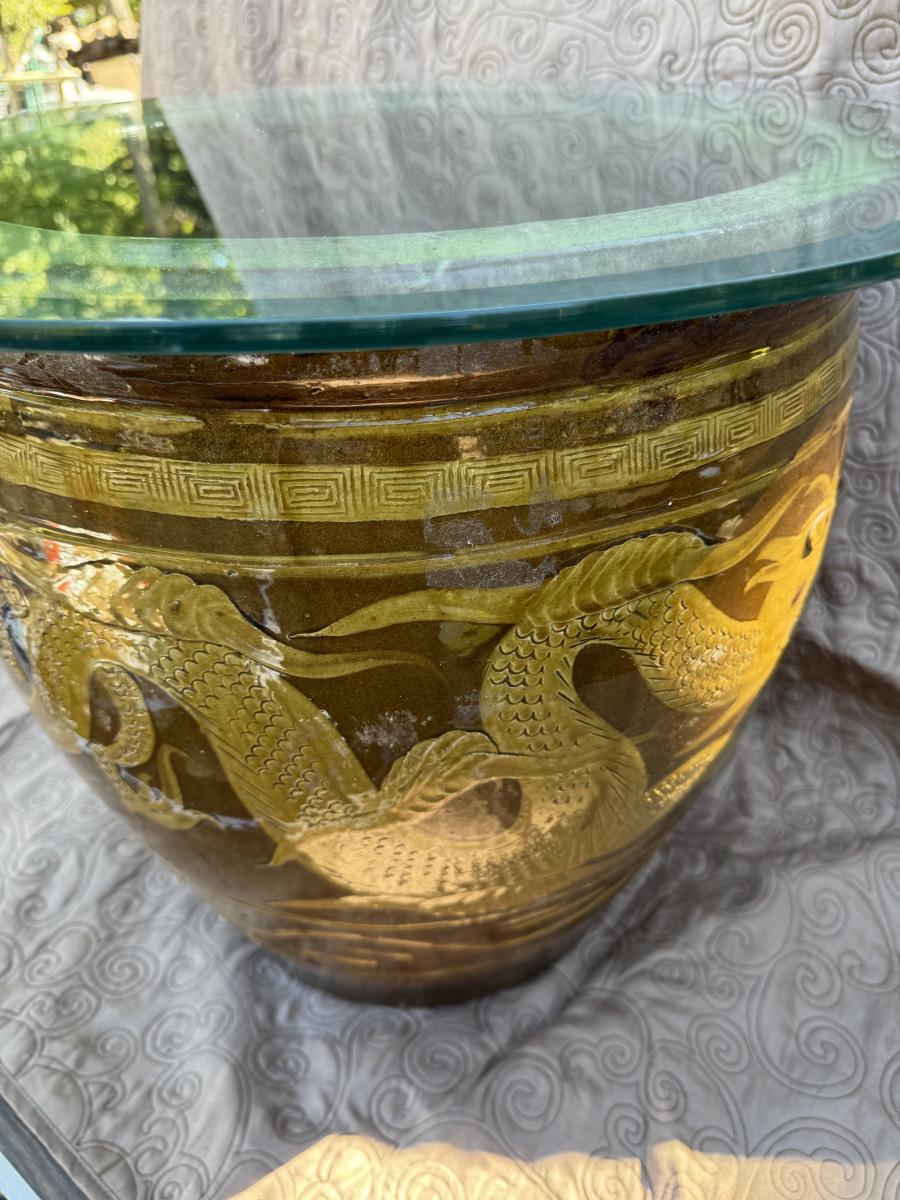 Buying as is, as found in this wonderful estate. See MANY PHOTOS for content, condition and dimensions. Never a Buyers Premiums or Credit Card Fee. All lots start at just $10 and sell with No Reserve to the highest bidder. Glass top 23” diameter.