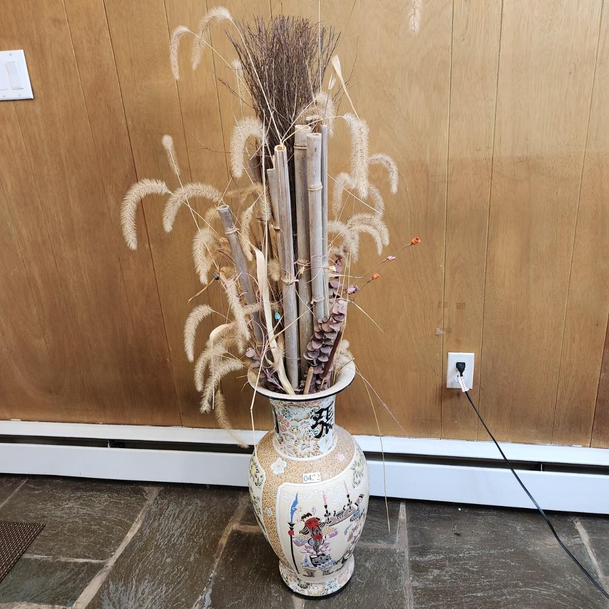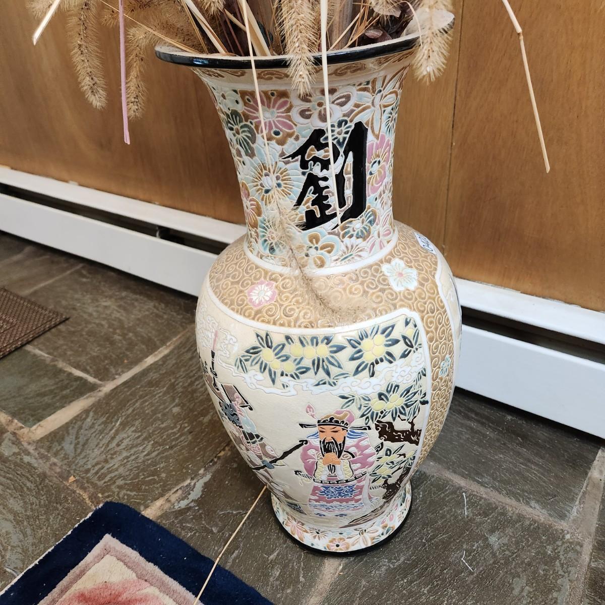 Large Asian Floor Vase Pottery 24" tall includes contents