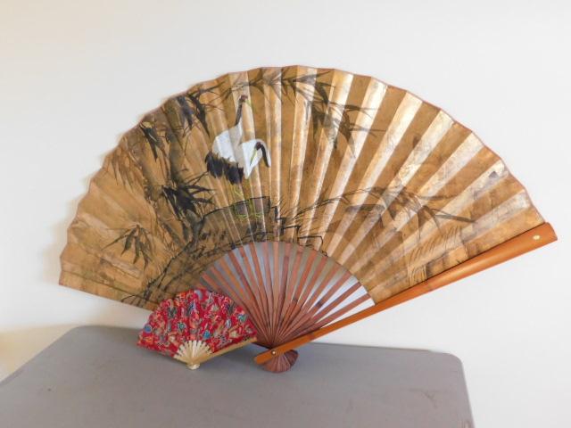Large Asian Folding Wall Fan Includes Small Hand Fan 55"x31"