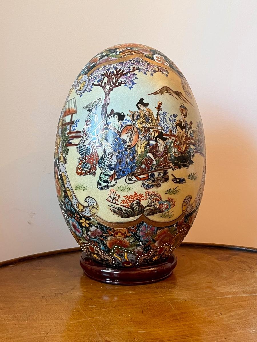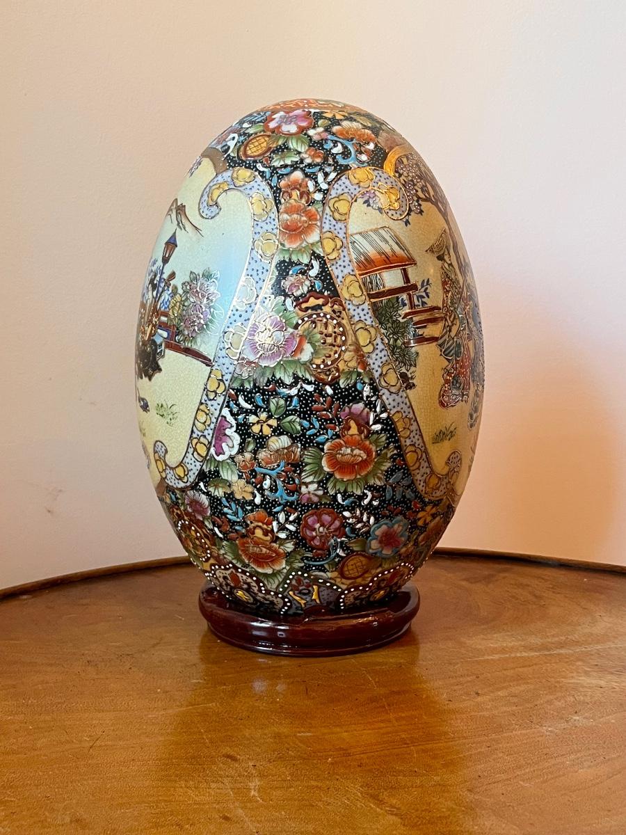 Large Asian Porcelain Egg On Stand ~ 12.5" H