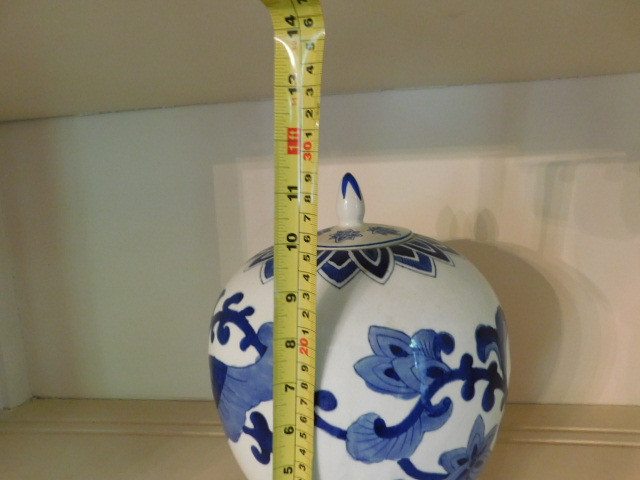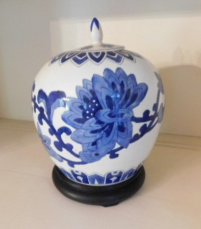 Large Asian Themed Porcelan Ginger Jar sith Stand 12"