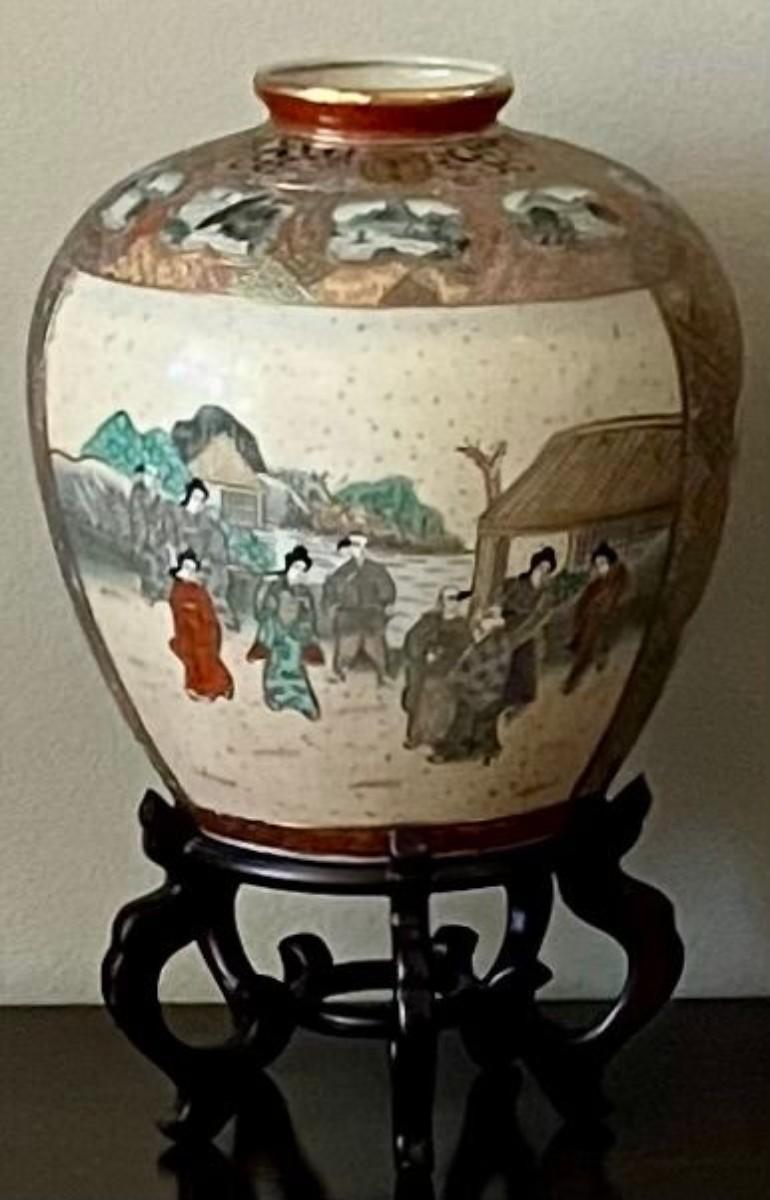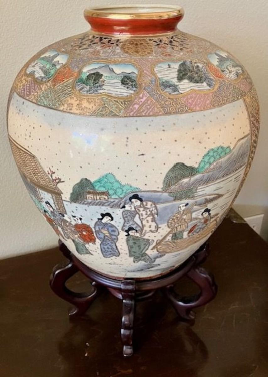 Large Asian Vase With Wooden Stand