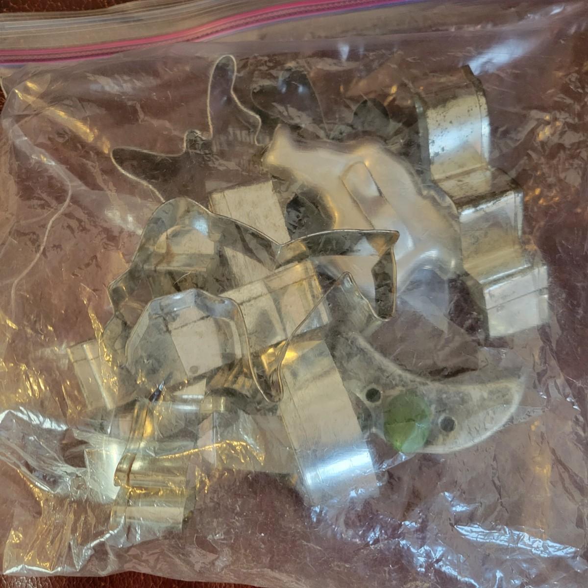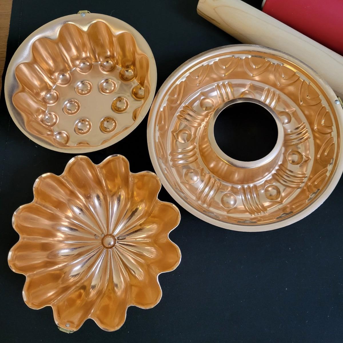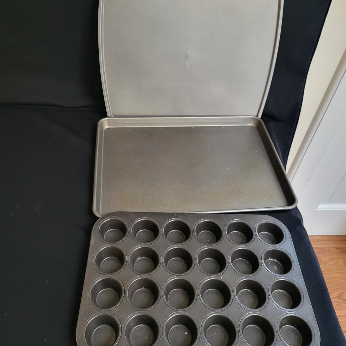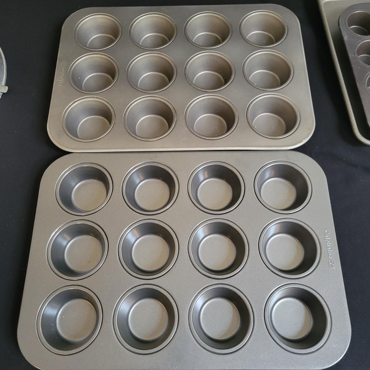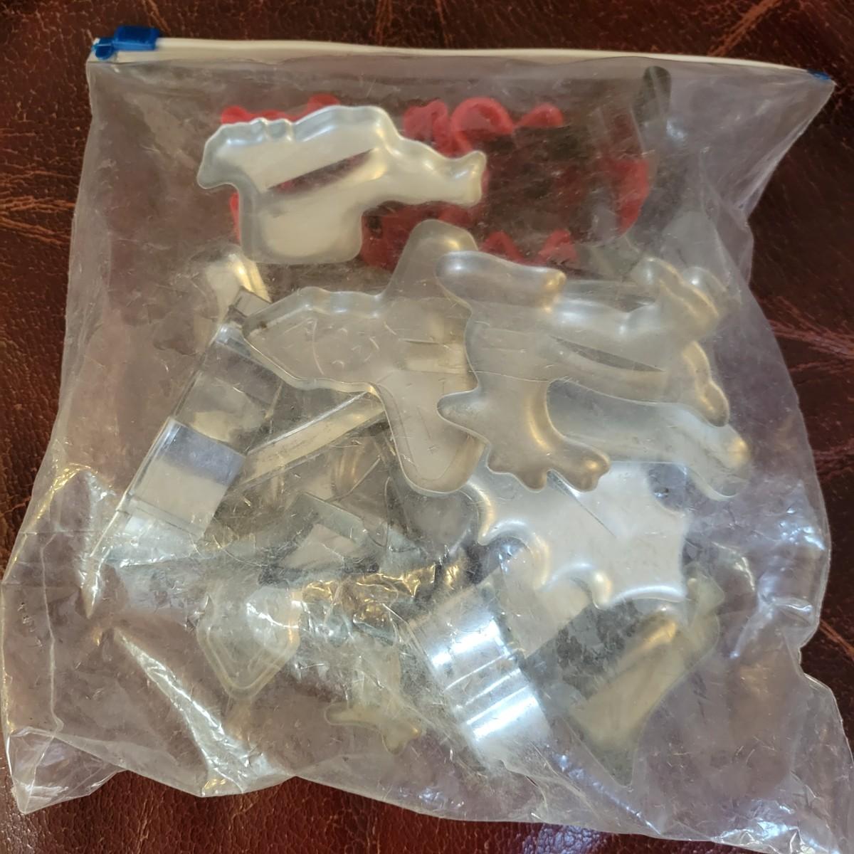 A huge assortment of baking accessories. Included are over 10 bags of cookie cutters that are animal and Christmas themed also include tins of cutters, many of which are vintage. A vintage cake carrier, baking pans, muffin pans, cookie sheets, rolling pins, silicone mats, copper molds and more. See attached pictures for full inventory. The cake carrier measures approximately 11"D x 8.5"H. Local pickup only