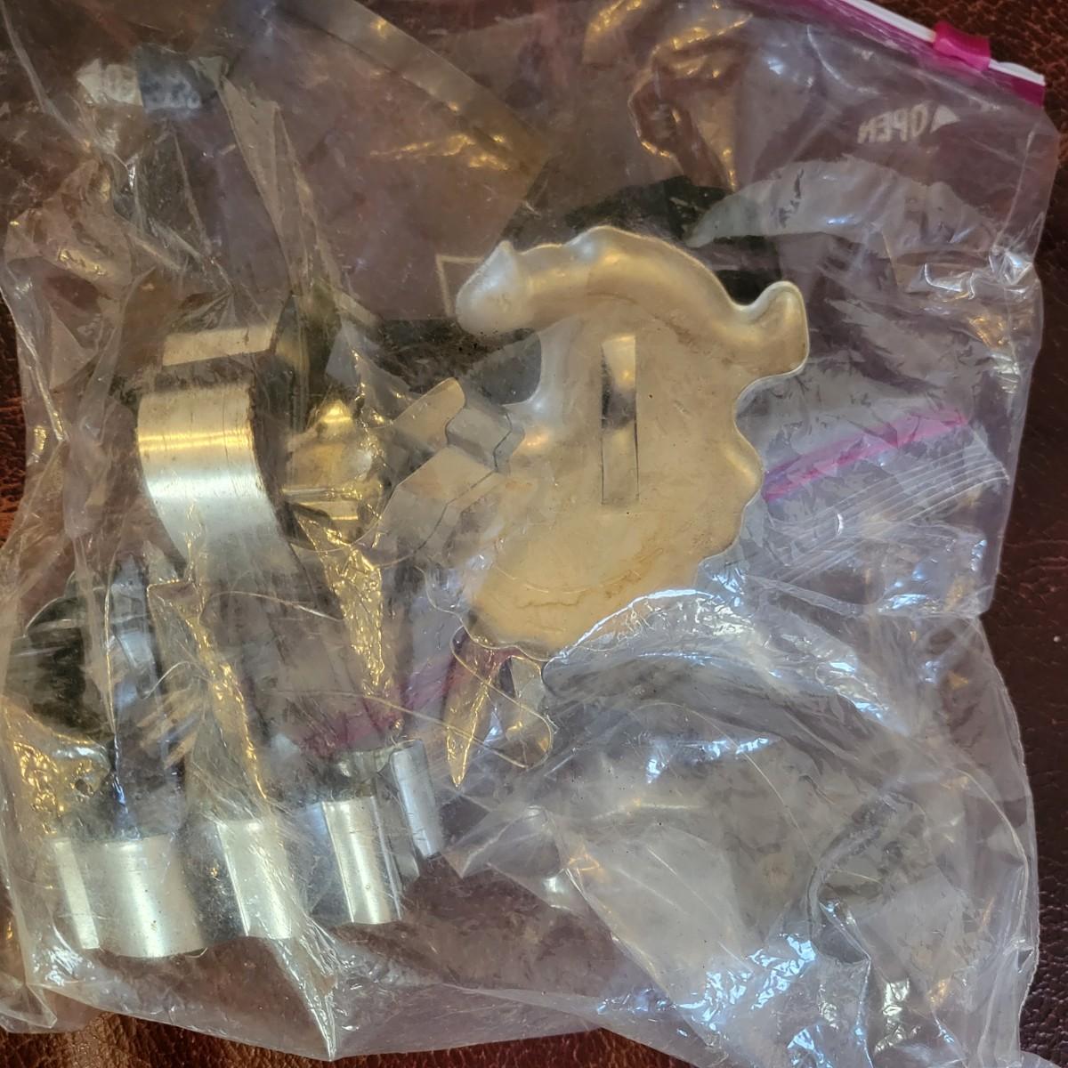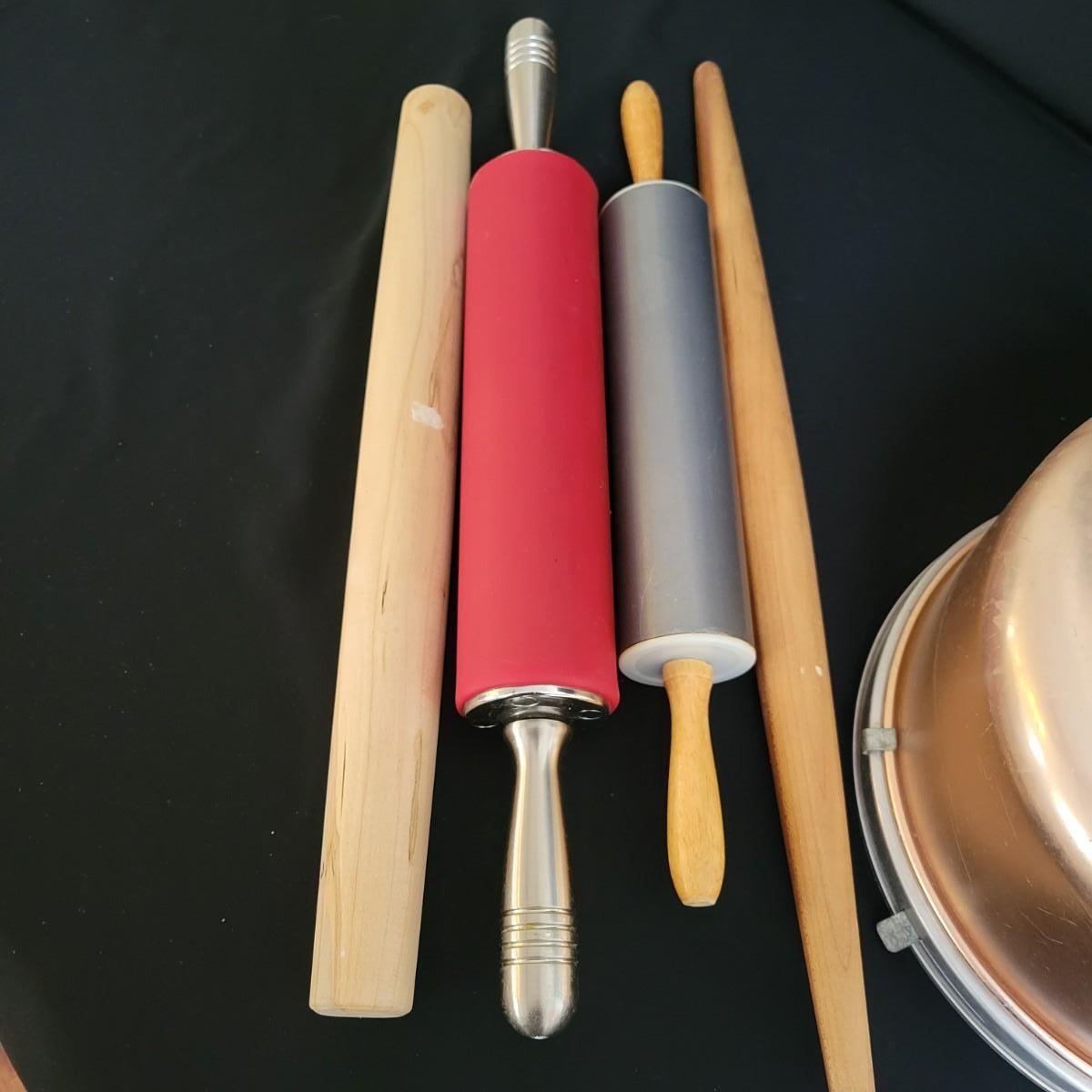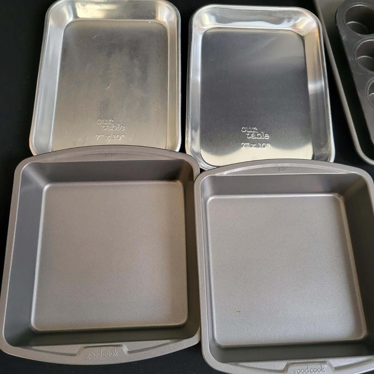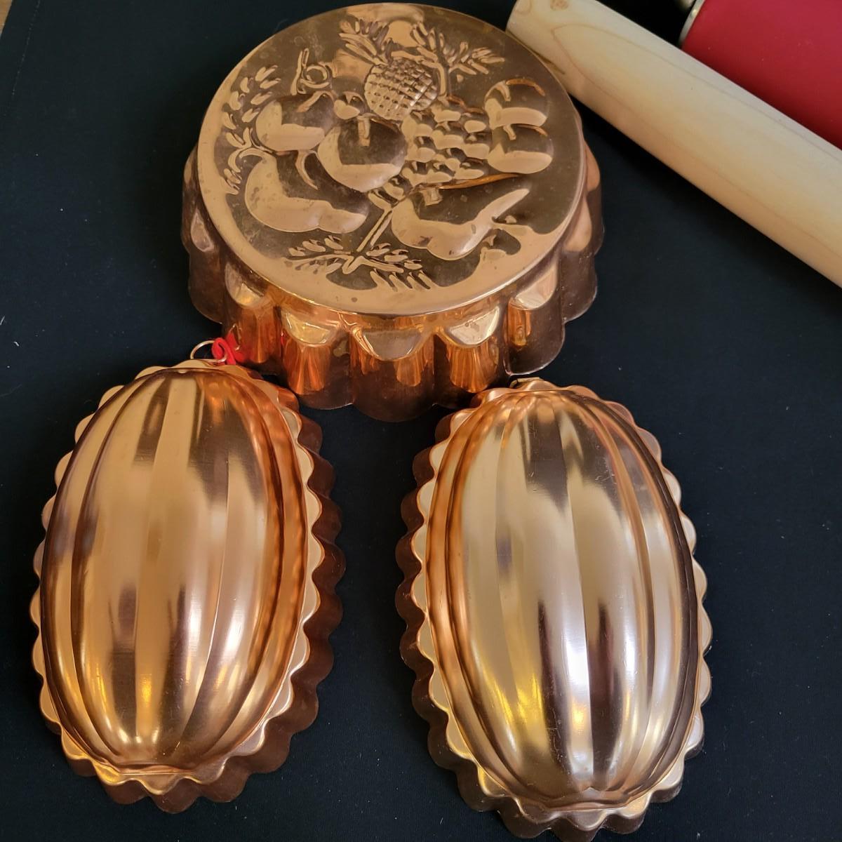 A huge assortment of baking accessories. Included are over 10 bags of cookie cutters that are animal and Christmas themed also include tins of cutters, many of which are vintage. A vintage cake carrier, baking pans, muffin pans, cookie sheets, rolling pins, silicone mats, copper molds and more. See attached pictures for full inventory. The cake carrier measures approximately 11"D x 8.5"H. Local pickup only