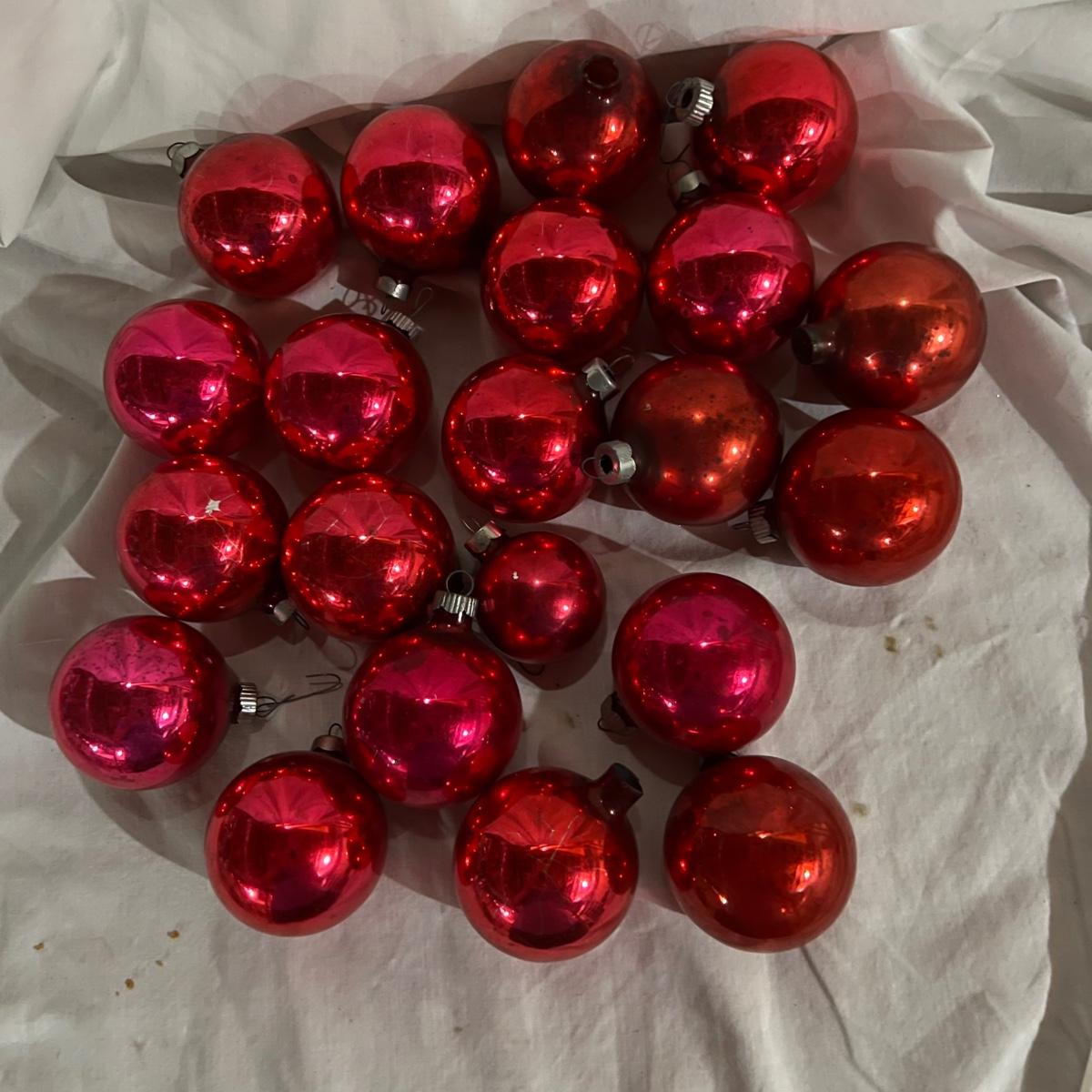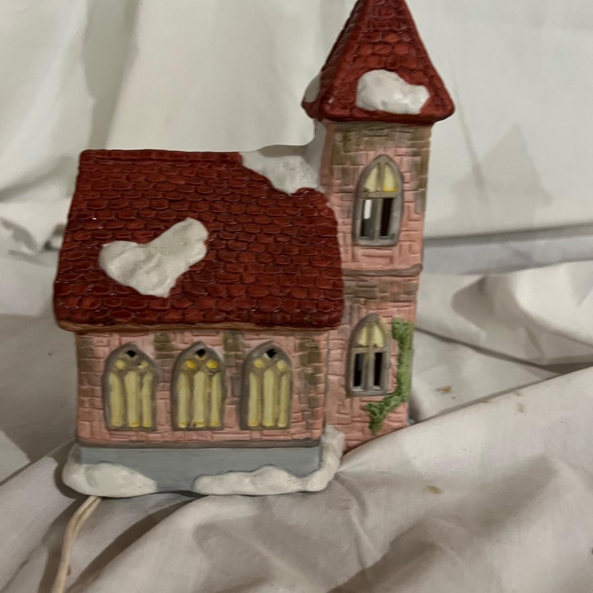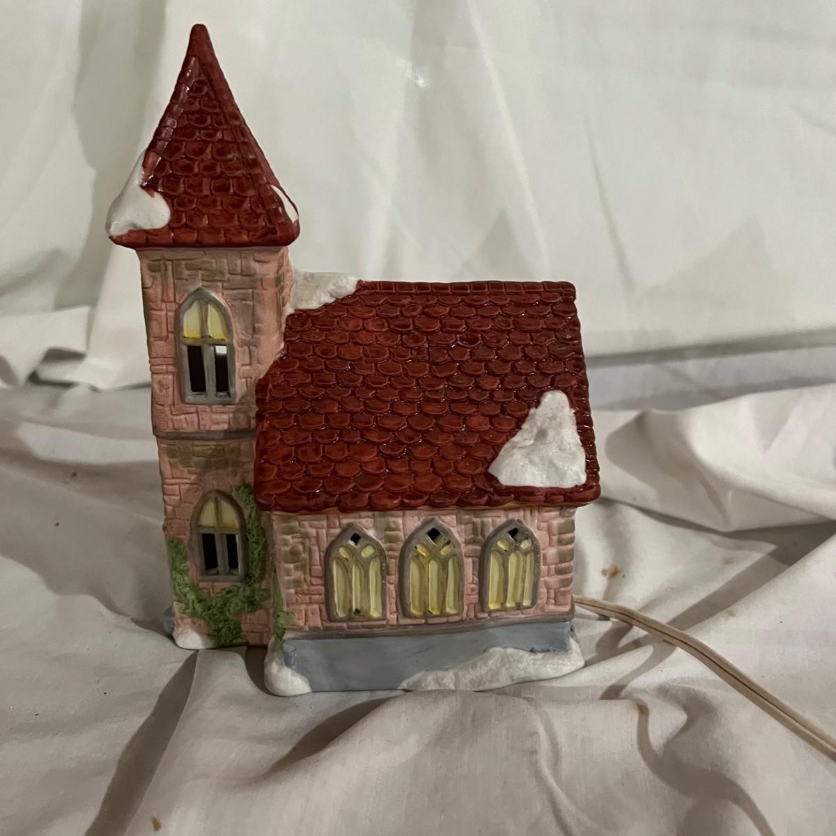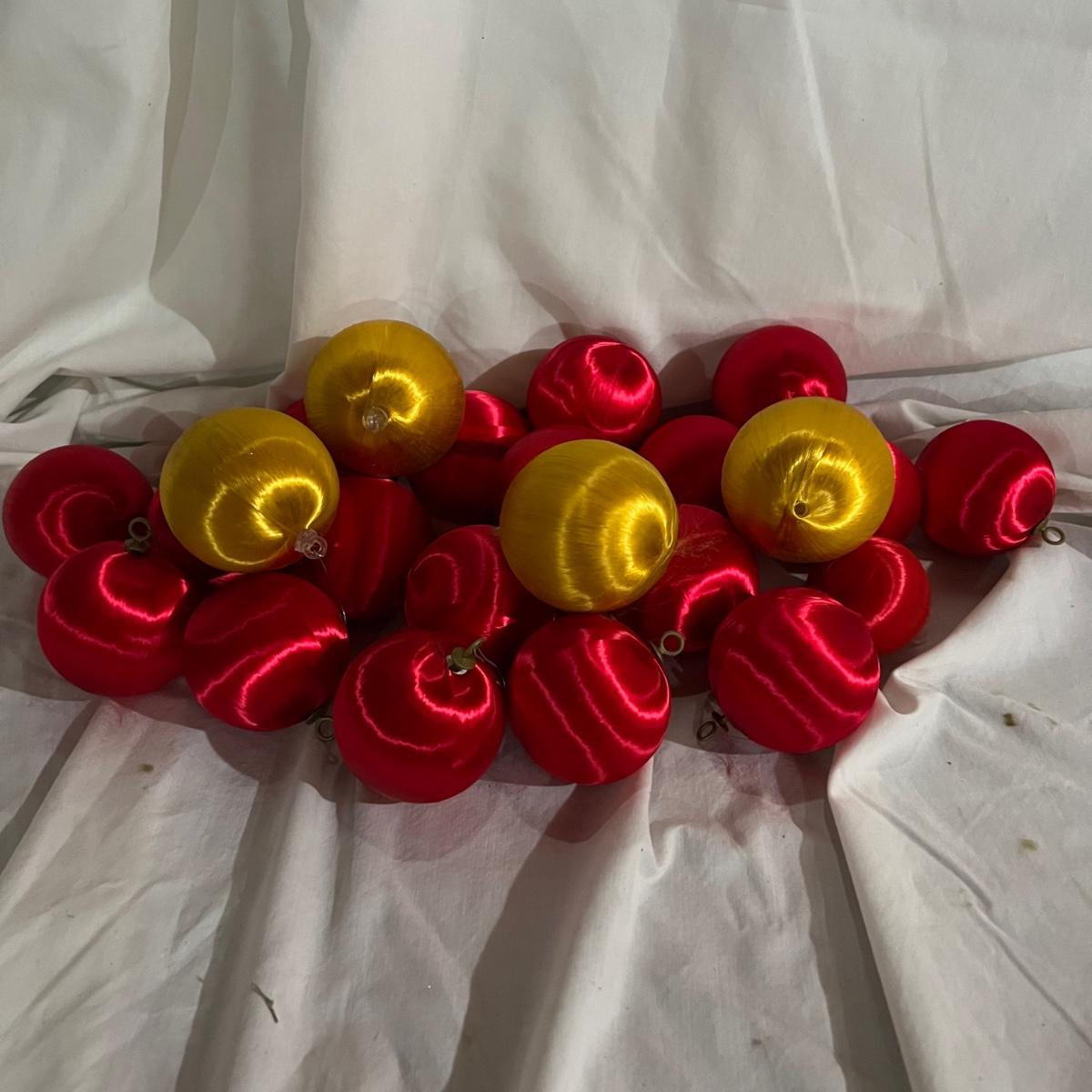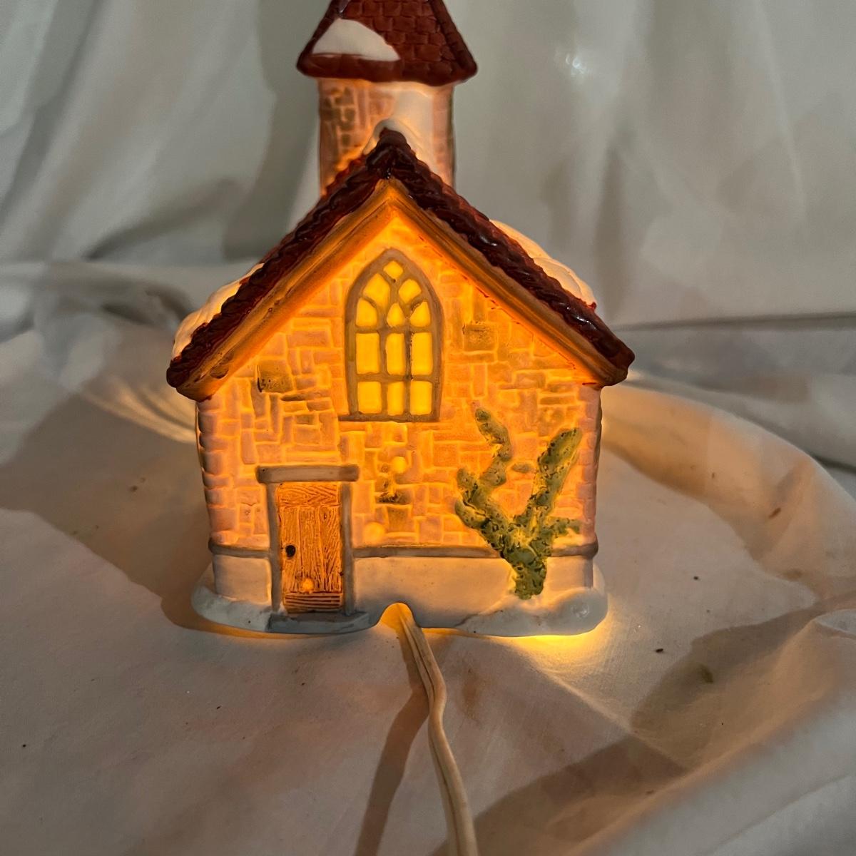 A wide assortment of many Christmas tree essentials and much more. Four Red and gold glass ornaments in original box, 15 gold glass and glitter ornaments, 23 Red and gold satin balls, Nine red glitter balls, five teardrop ornaments in red, 15 miscellaneous 1.5” and 2.5” gold ornaments, 18 6” icicle ornaments, six tasseled ornaments, two glass globes with the names Becky and Bob embossed, angel ornaments, 35 1.5” battery operated tea light-size candles that twinkle. Window lights, Seven 7” brass octagon bases with cords, two 7” round base corded, one 8” corded square base light. Two angel candles, one 5.5” H x 5”D and one 4”H x 3.5”D. A round blue table candle, 7” tall red “candy” candle, three silver flame battery candles with dimmer (appears to have never been used), 16 plastic cold-tone battery/cordless window candles. Lighted porcelain-like church and Christmas tree, four stoneware cat plates, and a beautiful 20 inch star fixture (please see photos for detailed picture of small crack that doesn't affect functionality). And even three large holiday storage bins included to carry away your holiday treasures! These items and more.