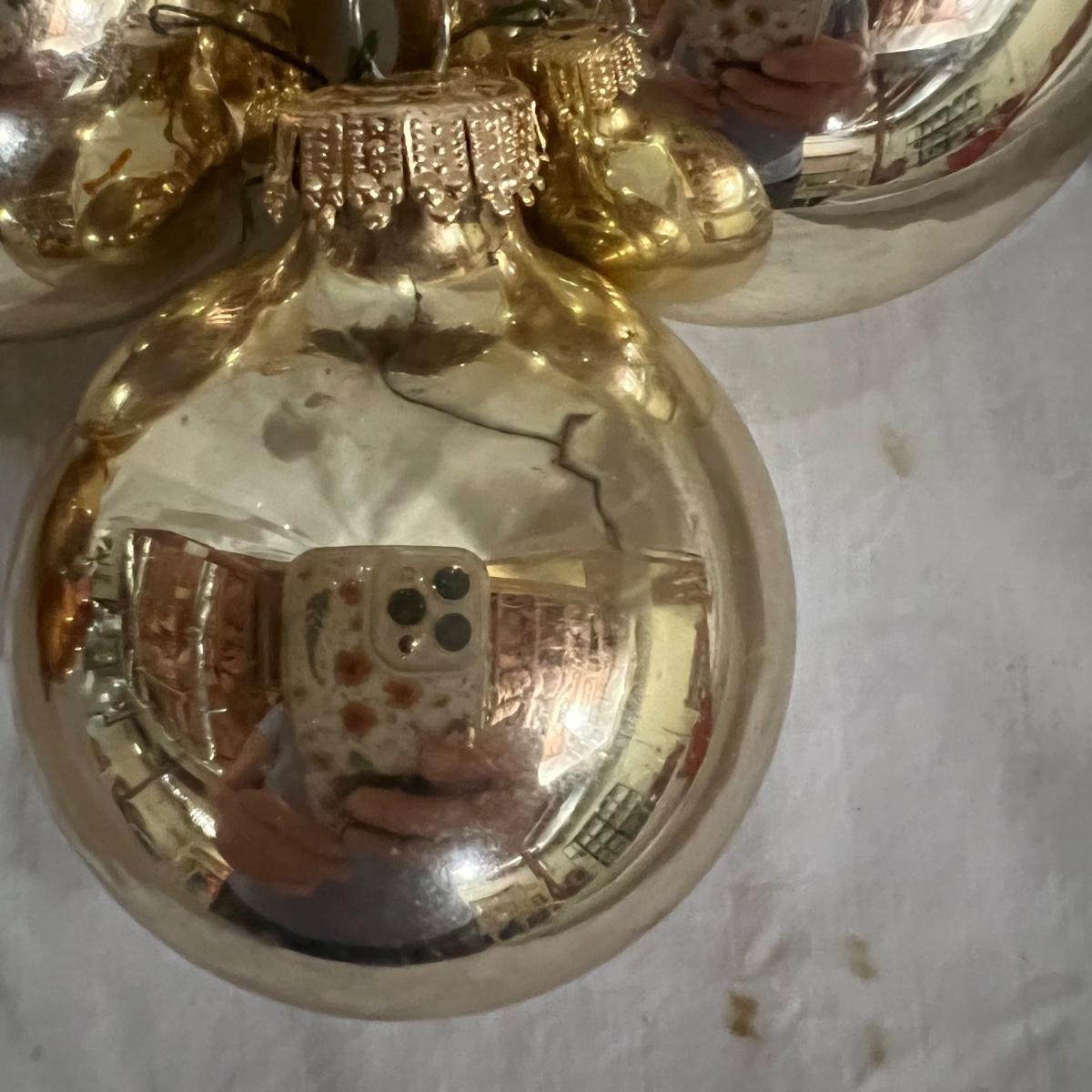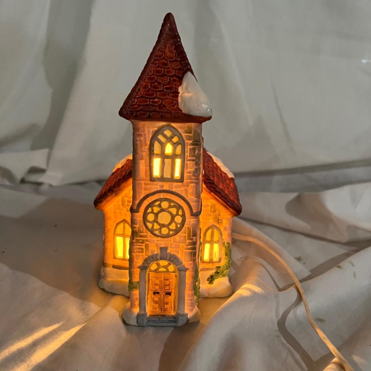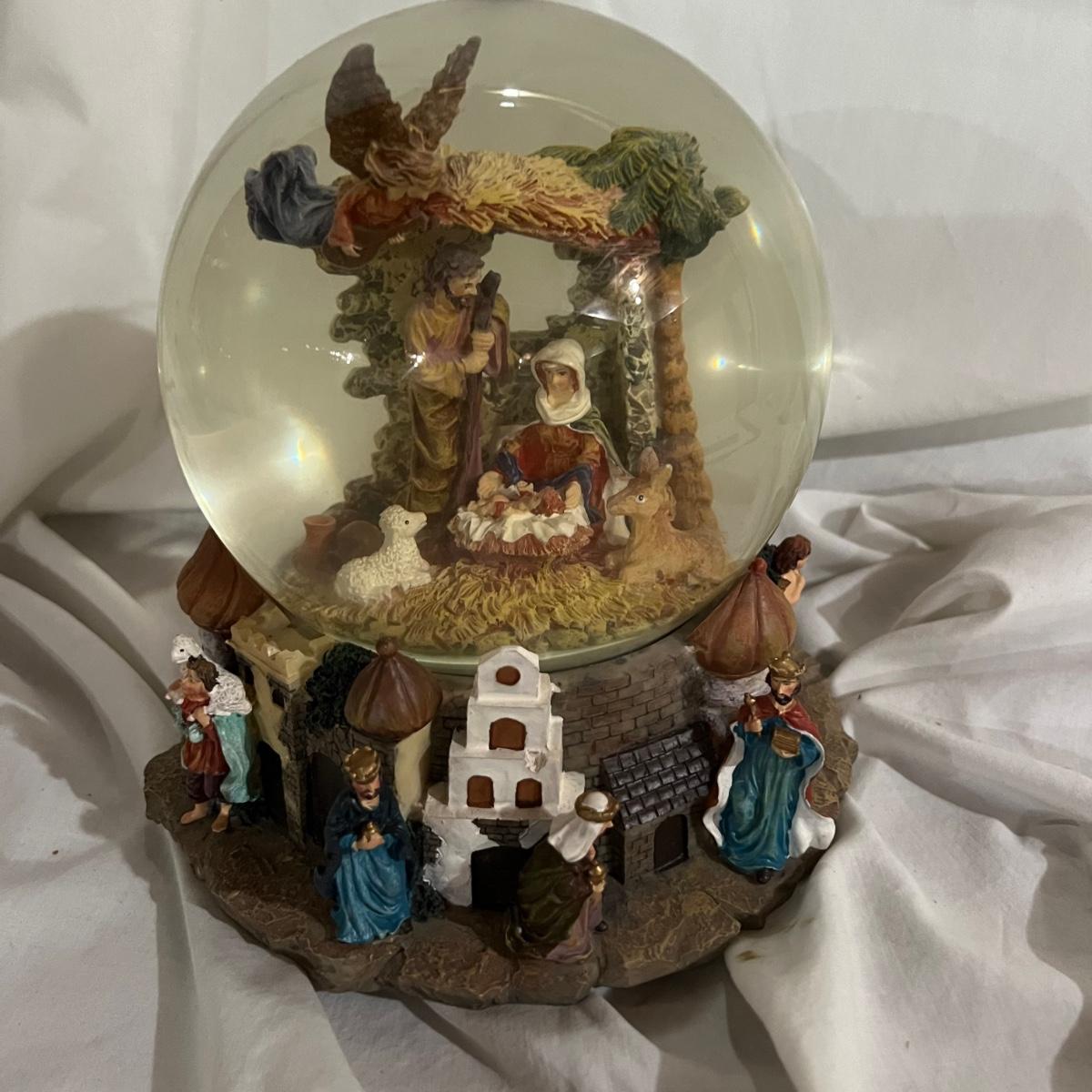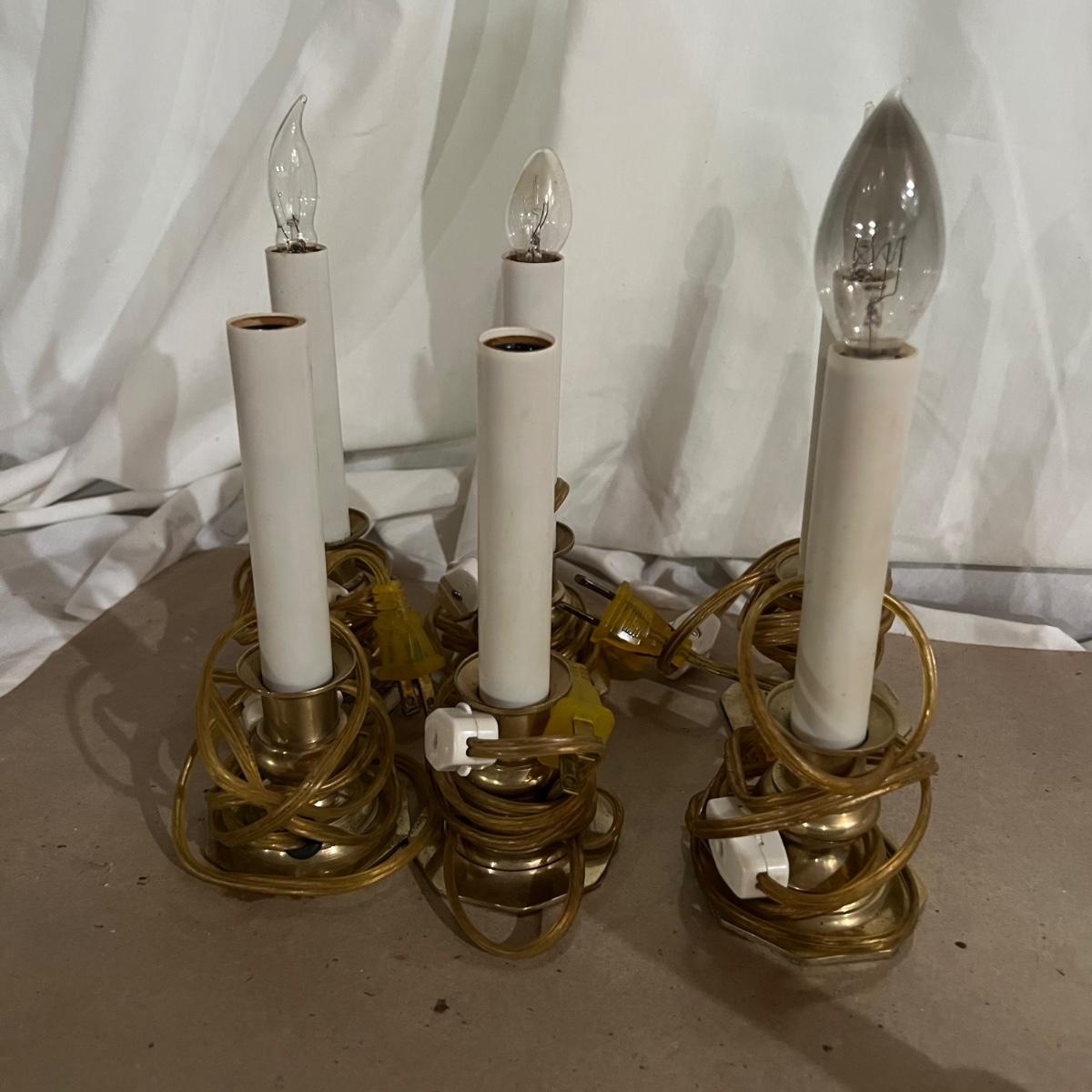 A wide assortment of many Christmas tree essentials and much more. Four Red and gold glass ornaments in original box, 15 gold glass and glitter ornaments, 23 Red and gold satin balls, Nine red glitter balls, five teardrop ornaments in red, 15 miscellaneous 1.5” and 2.5” gold ornaments, 18 6” icicle ornaments, six tasseled ornaments, two glass globes with the names Becky and Bob embossed, angel ornaments, 35 1.5” battery operated tea light-size candles that twinkle. Window lights, Seven 7” brass octagon bases with cords, two 7” round base corded, one 8” corded square base light. Two angel candles, one 5.5” H x 5”D and one 4”H x 3.5”D. A round blue table candle, 7” tall red “candy” candle, three silver flame battery candles with dimmer (appears to have never been used), 16 plastic cold-tone battery/cordless window candles. Lighted porcelain-like church and Christmas tree, four stoneware cat plates, and a beautiful 20 inch star fixture (please see photos for detailed picture of small crack that doesn't affect functionality). And even three large holiday storage bins included to carry away your holiday treasures! These items and more.