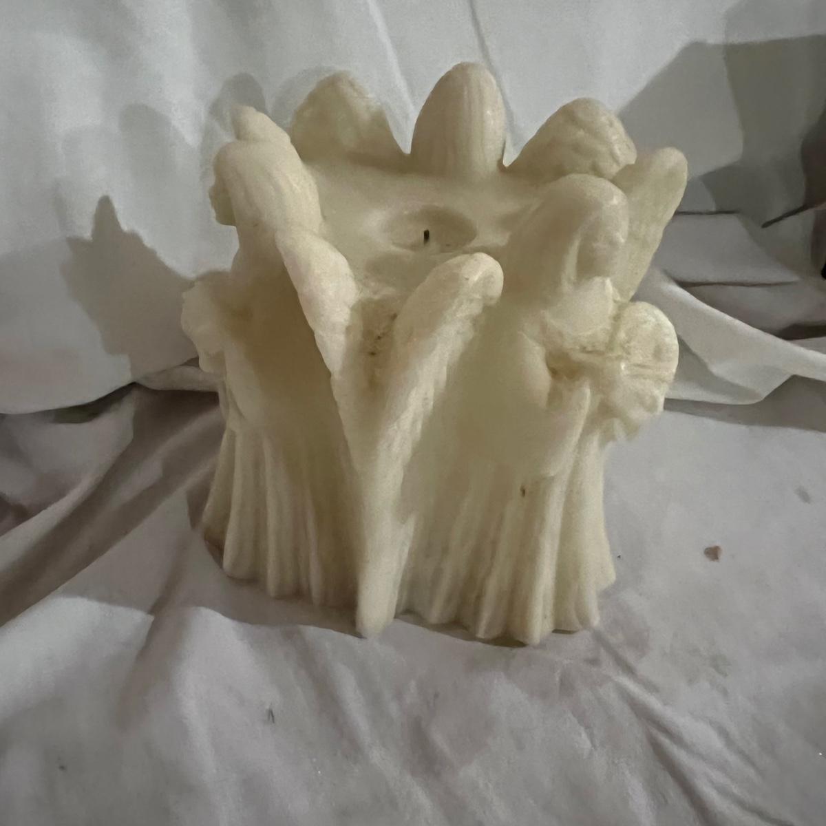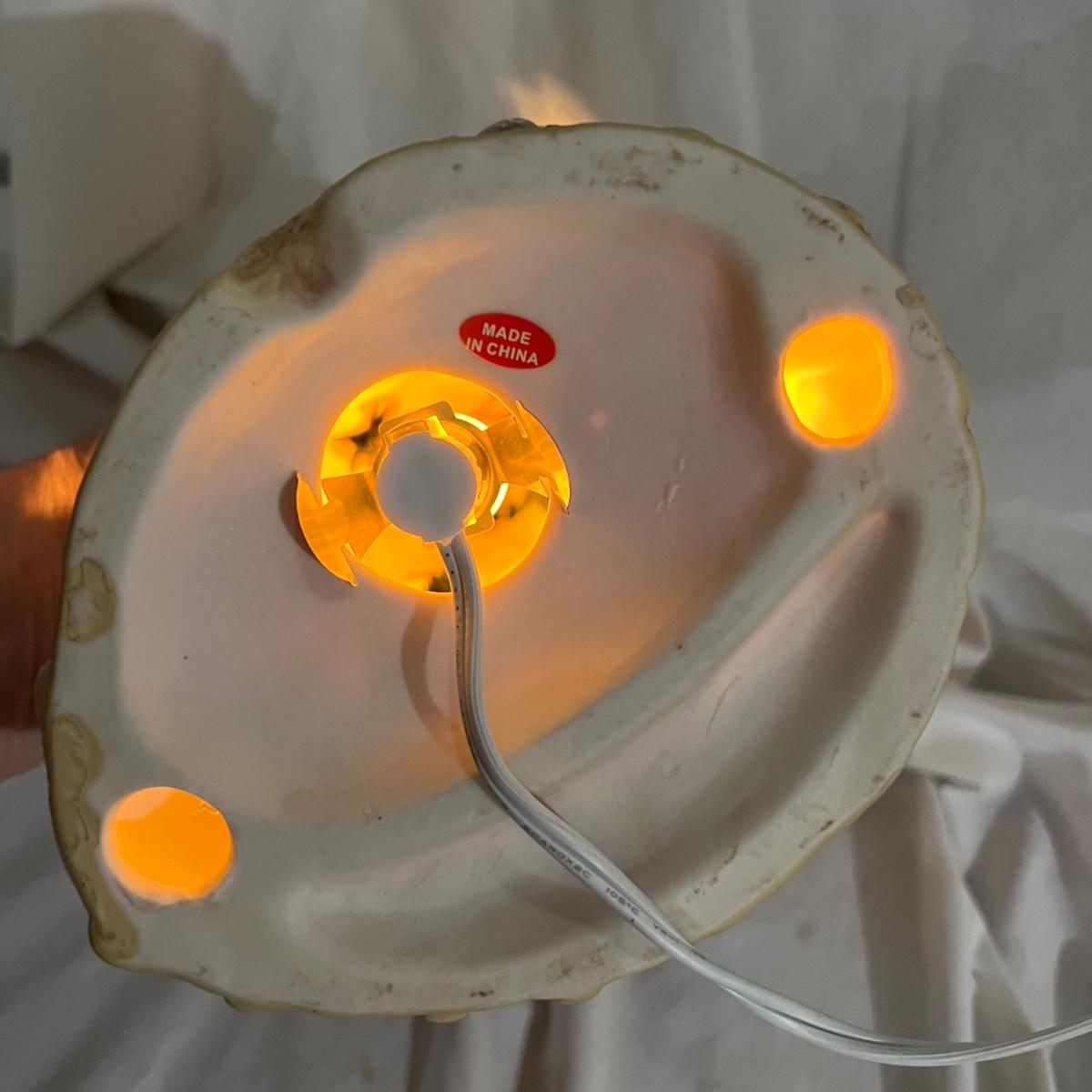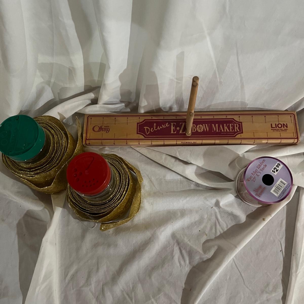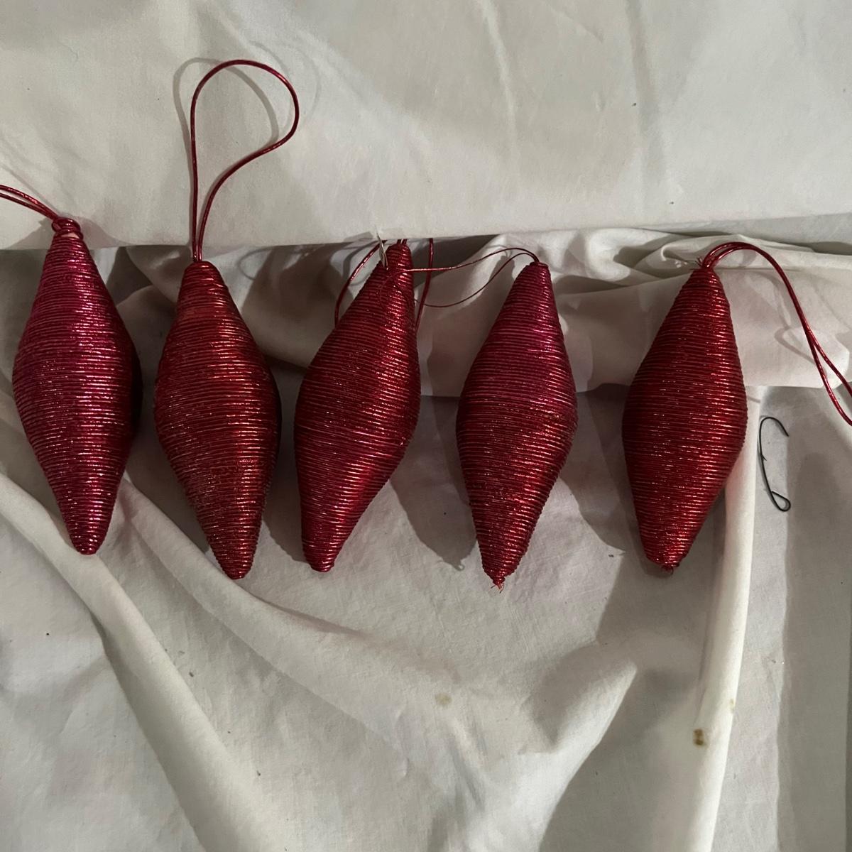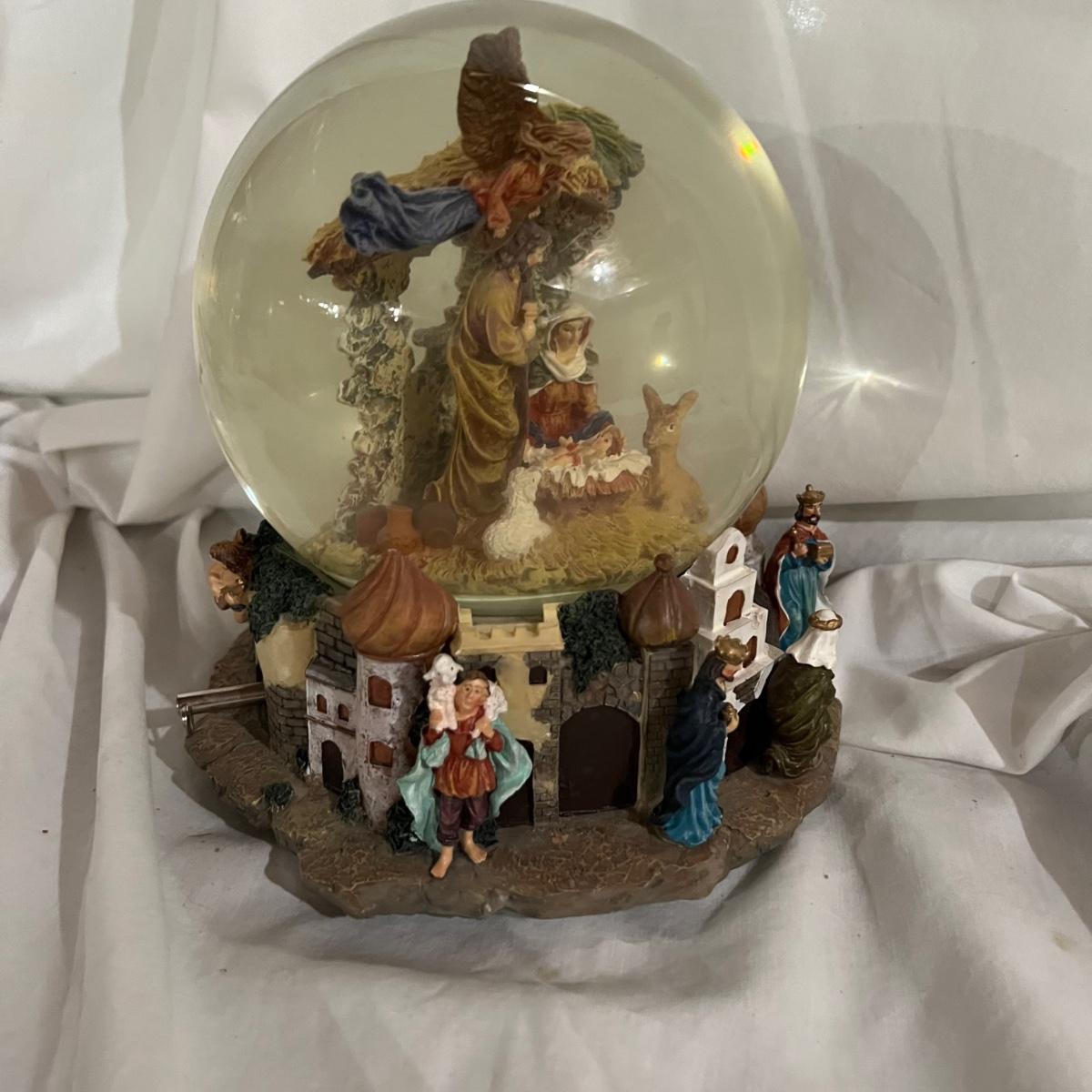 A wide assortment of many Christmas tree essentials and much more. Four Red and gold glass ornaments in original box, 15 gold glass and glitter ornaments, 23 Red and gold satin balls, Nine red glitter balls, five teardrop ornaments in red, 15 miscellaneous 1.5” and 2.5” gold ornaments, 18 6” icicle ornaments, six tasseled ornaments, two glass globes with the names Becky and Bob embossed, angel ornaments, 35 1.5” battery operated tea light-size candles that twinkle. Window lights, Seven 7” brass octagon bases with cords, two 7” round base corded, one 8” corded square base light. Two angel candles, one 5.5” H x 5”D and one 4”H x 3.5”D. A round blue table candle, 7” tall red “candy” candle, three silver flame battery candles with dimmer (appears to have never been used), 16 plastic cold-tone battery/cordless window candles. Lighted porcelain-like church and Christmas tree, four stoneware cat plates, and a beautiful 20 inch star fixture (please see photos for detailed picture of small crack that doesn't affect functionality). And even three large holiday storage bins included to carry away your holiday treasures! These items and more.
