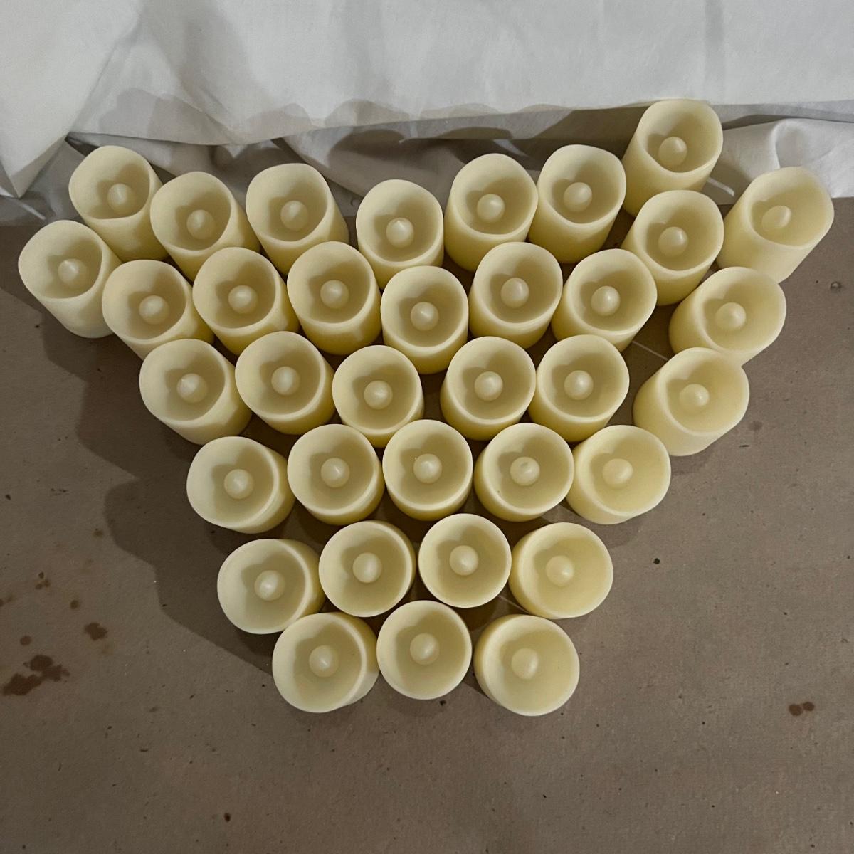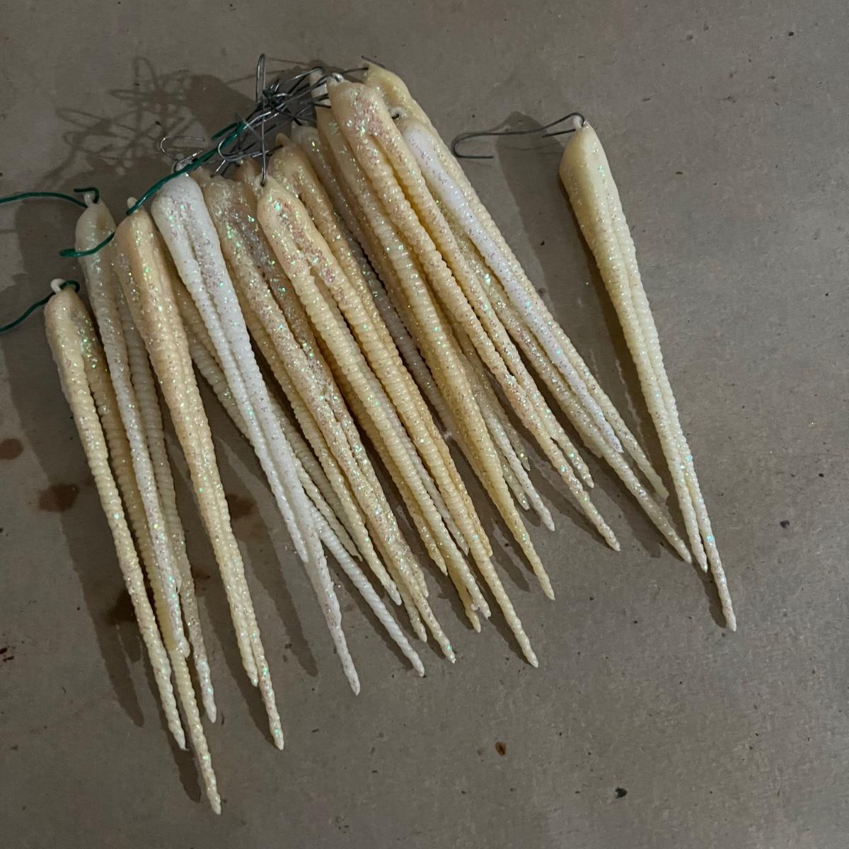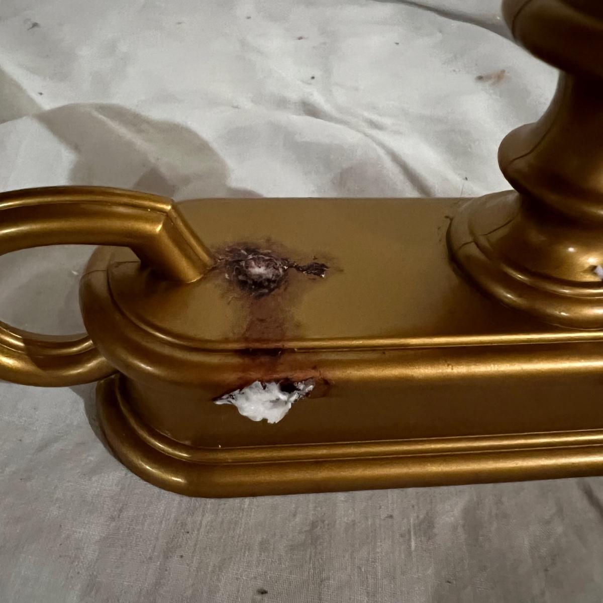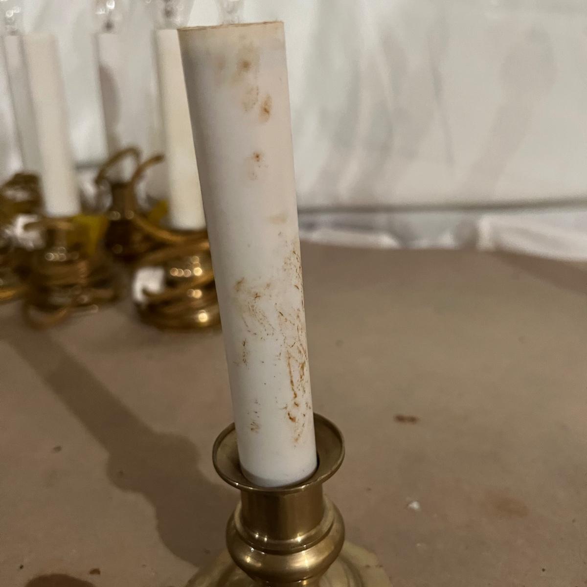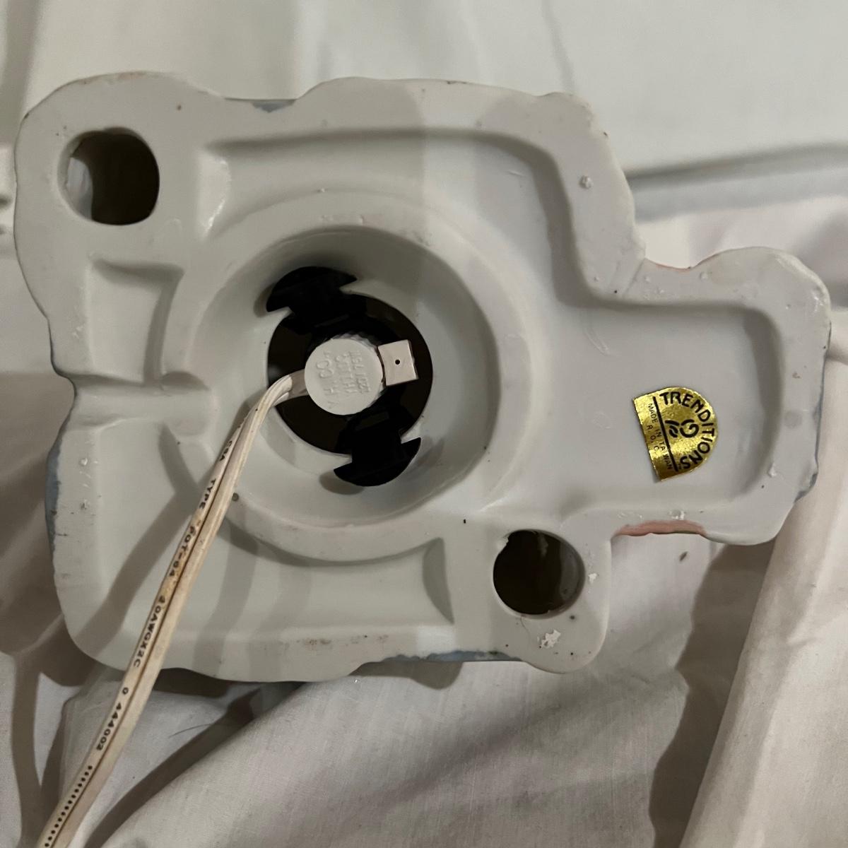 A wide assortment of many Christmas tree essentials and much more. Four Red and gold glass ornaments in original box, 15 gold glass and glitter ornaments, 23 Red and gold satin balls, Nine red glitter balls, five teardrop ornaments in red, 15 miscellaneous 1.5” and 2.5” gold ornaments, 18 6” icicle ornaments, six tasseled ornaments, two glass globes with the names Becky and Bob embossed, angel ornaments, 35 1.5” battery operated tea light-size candles that twinkle. Window lights, Seven 7” brass octagon bases with cords, two 7” round base corded, one 8” corded square base light. Two angel candles, one 5.5” H x 5”D and one 4”H x 3.5”D. A round blue table candle, 7” tall red “candy” candle, three silver flame battery candles with dimmer (appears to have never been used), 16 plastic cold-tone battery/cordless window candles. Lighted porcelain-like church and Christmas tree, four stoneware cat plates, and a beautiful 20 inch star fixture (please see photos for detailed picture of small crack that doesn't affect functionality). And even three large holiday storage bins included to carry away your holiday treasures! These items and more.